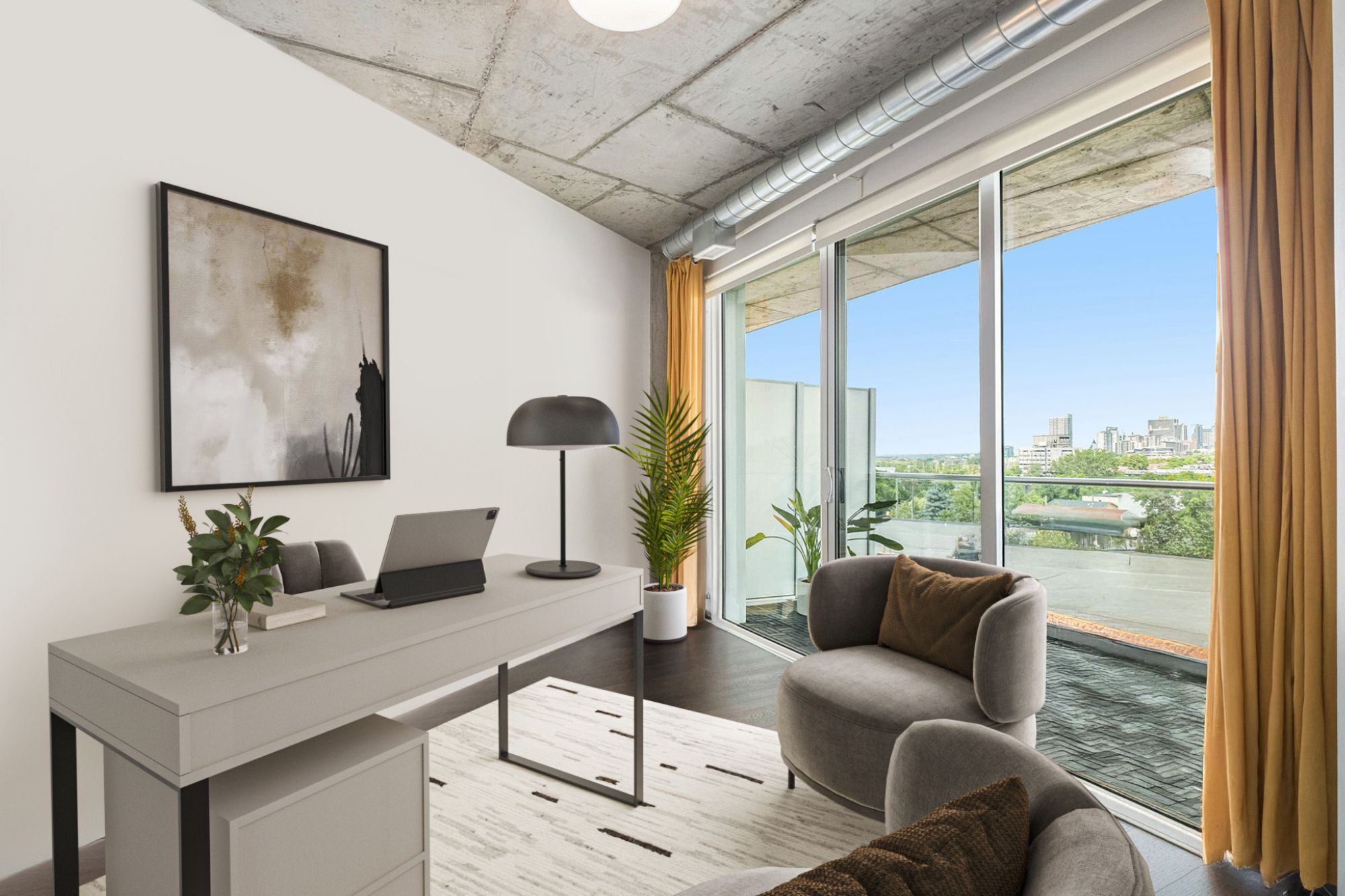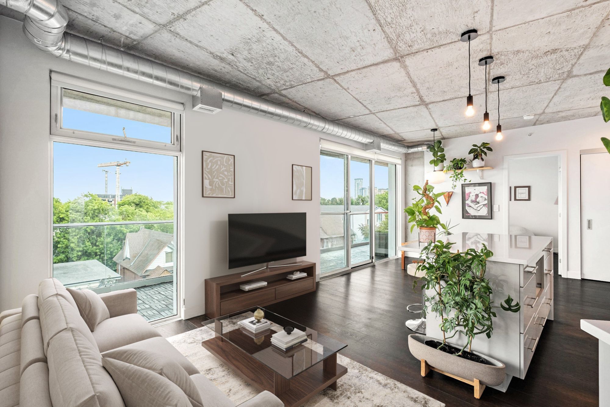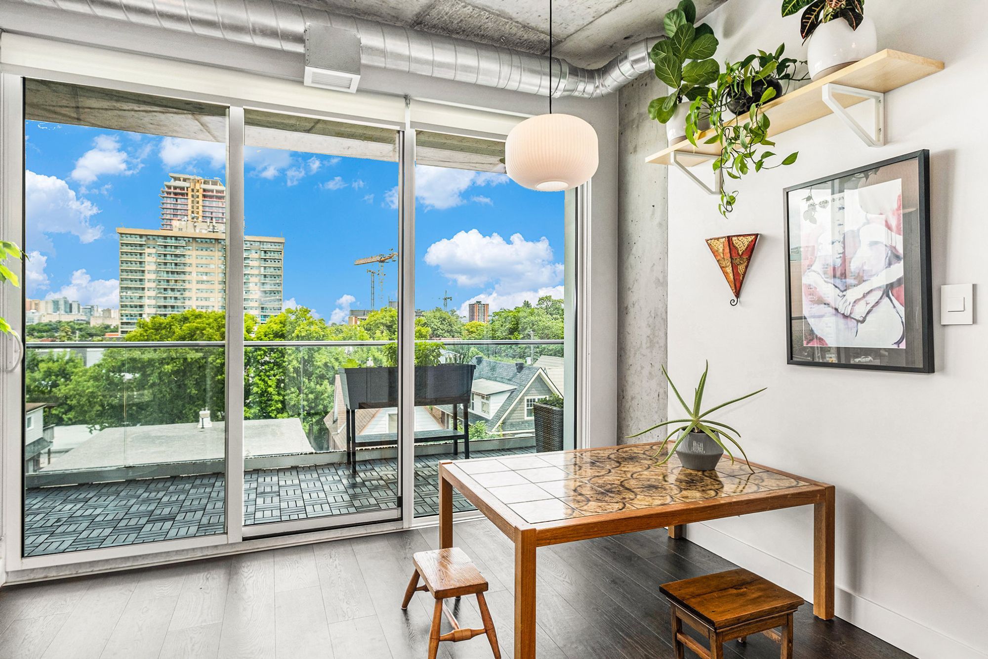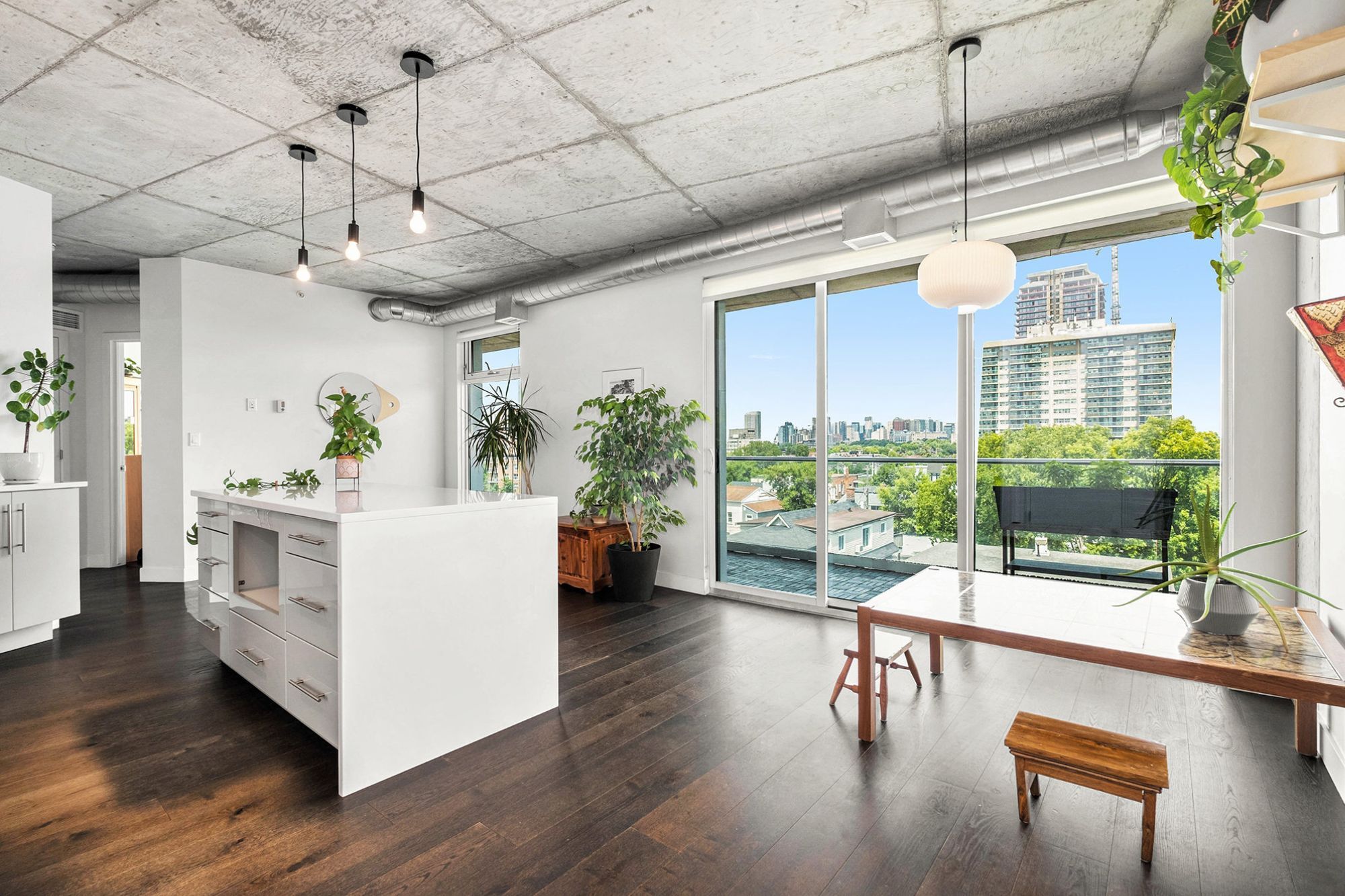 Step into 508-1000 Wellington Street West! An inviting 2-bedroom condo nestled in the heart of Hintonburg. This LEED Platinum-certified building combines sustainable design with a sense of community, all set within one of Ottawas most walkable and exciting neighbourhoods.Inside, you'll love the clean lines and airy layout. Natural light pours in through floor-to-ceiling windows, bouncing off 9-ft exposed concrete ceilings and rich hardwood floors. The open-concept kitchen and living space features quartz counters, sleek European appliances, and a large island perfect for casual meals or entertaining friends. Just off the main living area, sliding doors open onto the true gem of this unit-a rare 325 sq ft east-facing balconya true extension of your living space and the perfect spot for morning yoga, container gardening, or evening cocktails with a view of Parliament Hill and morning sunrises.Both bedrooms are generously sized and come equipped with custom closet organizers, offering flexibility for sleeping, working, or relaxing.Additional features include in-unit laundry, one underground parking spot, and two storage lockers, a rare find in condo living. Life at The Eddy also means access to a rooftop terrace with lounge seating, BBQs, and panoramic views of the Ottawa River and Gatineau Hills.And then there's the neighbourhood. From artisan bakeries like Les Moulins La Fayette just downstairs, to local favourites like Parkdale Market, Suzy Q, The Third, and Art-Is-In Bakery, everything you need is just a short stroll away. With Bayview LRT Station nearby and bike-friendly routes throughout, getting around the city is effortless. This isn't just a condo. Its a lifestyle, bright, modern, connected, and perfectly rooted in the best of Hintonburg living.