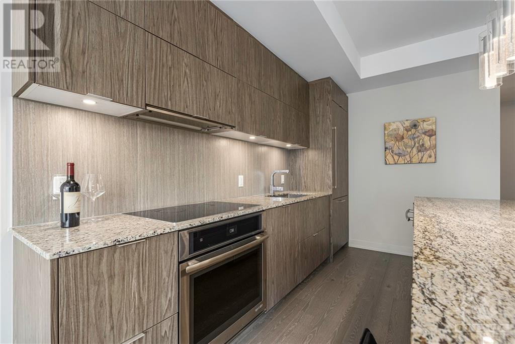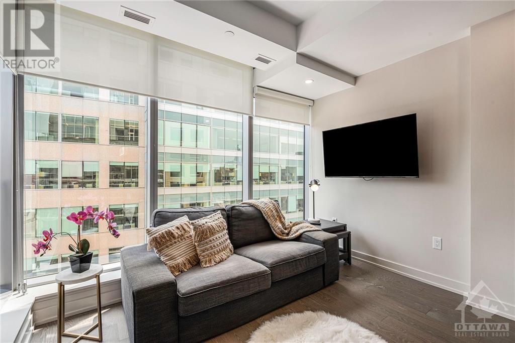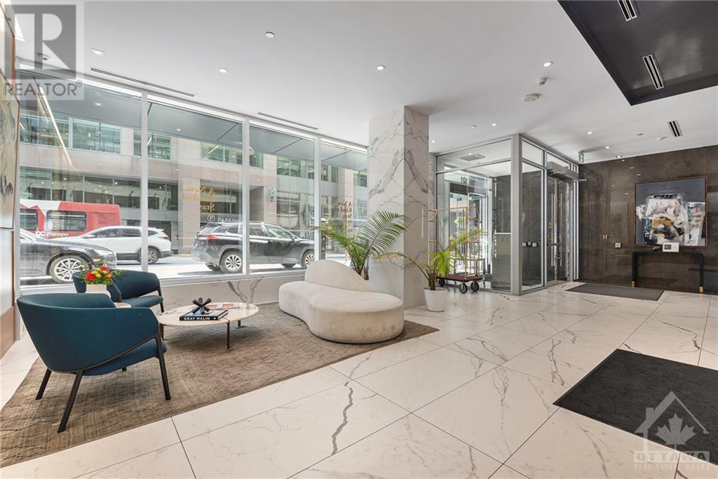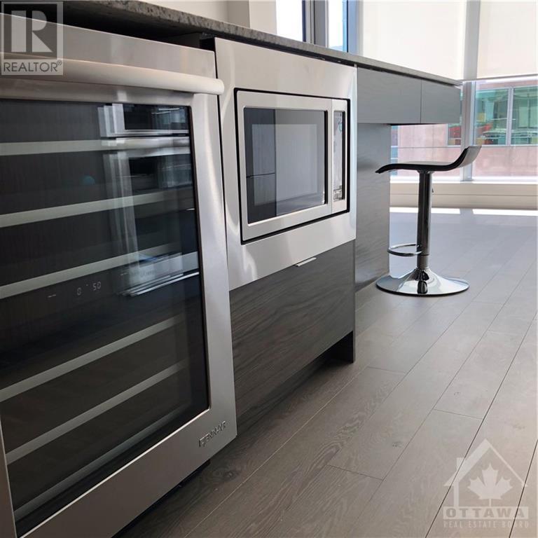 Exquisite 15th floor apart. Incl parking! A Top of The World view is ready for the new owners. Welcome to the reResidences. This prestigious address in the heart of our Capital offers living at its finest. Design, quality and luxury amenities on site. This apt. has 9ft ceilings with ceiling to floor, wall to wall windows. Fitted w high end appliances, quality fixtures and in-unit laundry. The design process has afforded this unit ample storage. Even a home to chill your wine! From access to The Sky lounge with a view of Parliament and The Peace Tower, (July 1 from this space!) to a gym, games room, sauna and so much more. 24 hr Concierge service to arrange add-ons like dry-cleaning, tailoring, valet park.“white-glove service’. LRT is 200 metres. 20 min drive to Gatineau Hills. Live in the heart of downtown and enjoy the walking accessibility to theatre, restaurants, shopping, walk/bike paths, skating the canal etc. Pls note.Unit can be rented semi furnished (no bed) for the same cost. (id:22211)