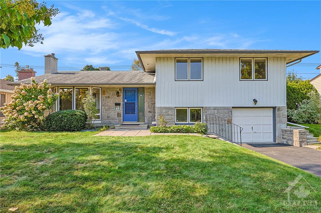This solid Campeau-built split-level offers your family a wonderful opportunity to get into this sought after neighbourhood! Set on a large 60x100 lot and enjoyed by the same family for 55 years, this well laid-out home offers a flexible floor plan. With 3 bedrooms on the upper level & 2 additional rooms on the lower levels, your family living & home office areas can be made separate, making everyday living a breeze. The lower level could also offer space for a teenager, nanny, or in-law suite. With "forever" home potential, the time you invest in personalizing this spacious home will be well spent. Hardwood floors throughout, protected by carpets for many years. Large eat-in kitchen and a stone fireplace in the living room. An attached garage with inside entry means no scraping of the windshield in the winter season. Across from Pushman Park, a city-run park offering a wading pool, play structures. South Keys shops & services are nearby. 48-hr irrev. on offers. Virtually staged.