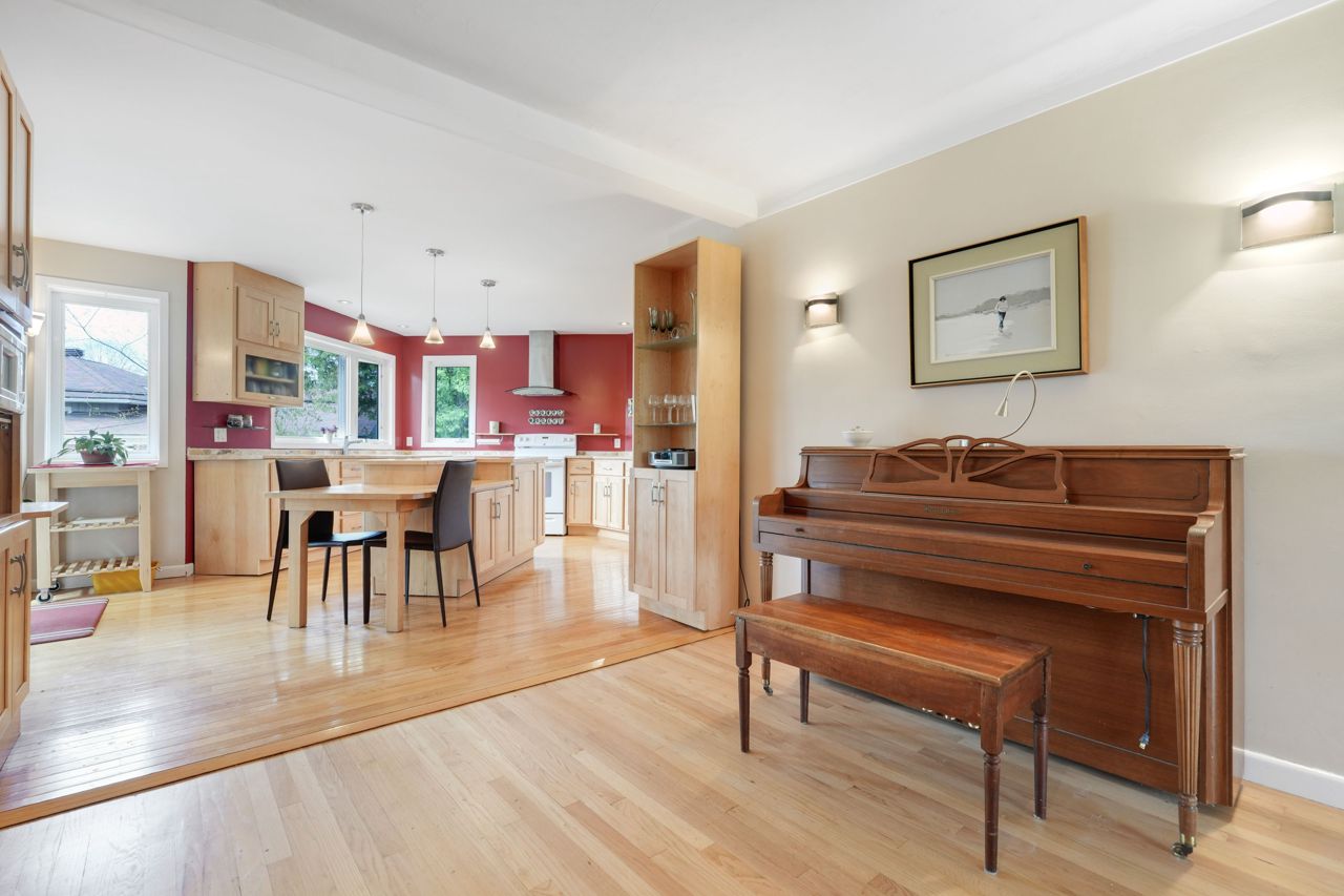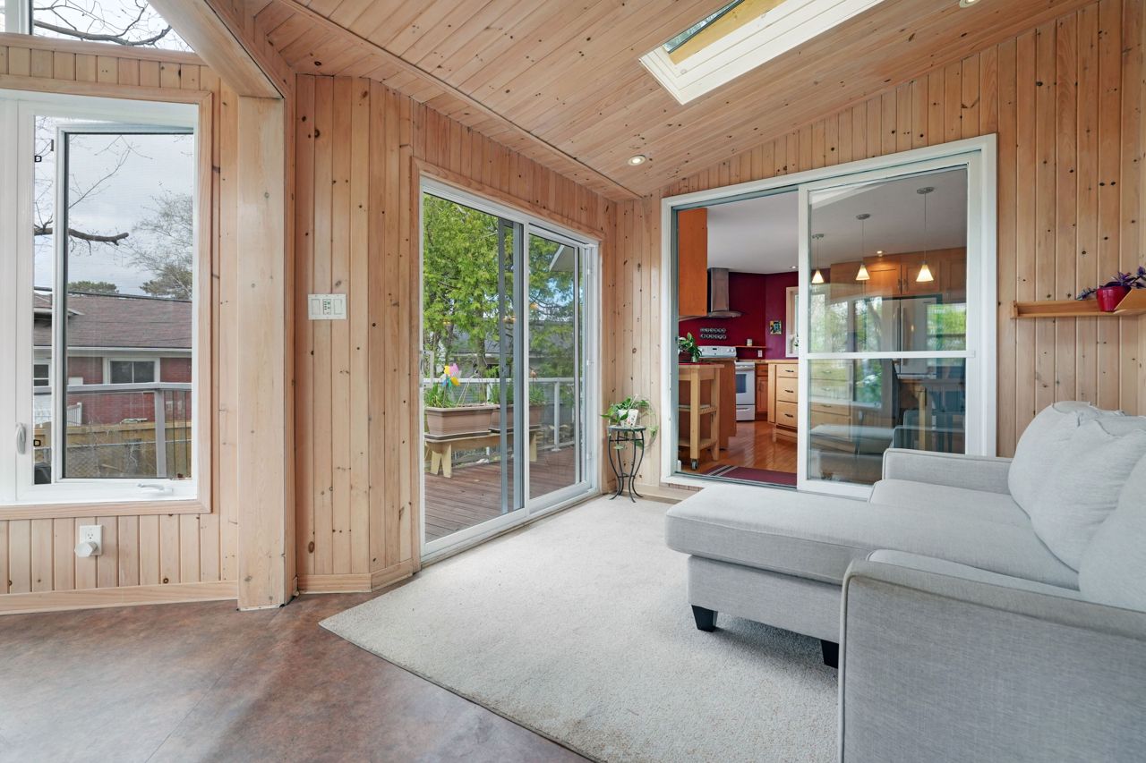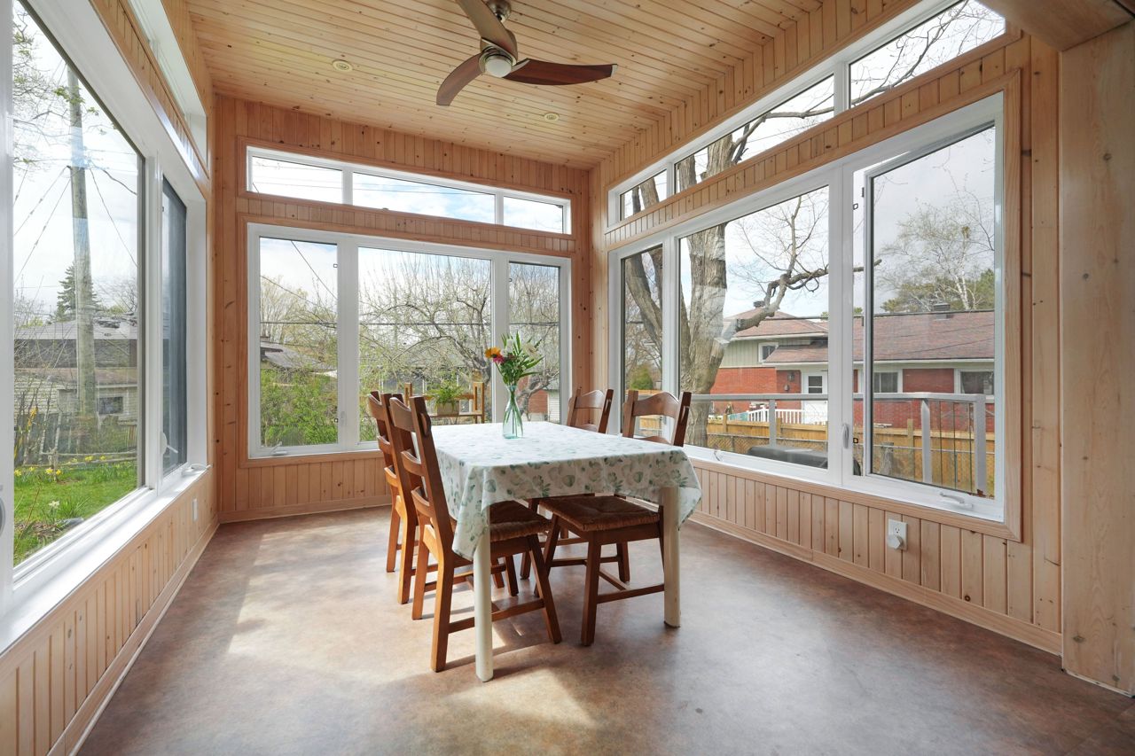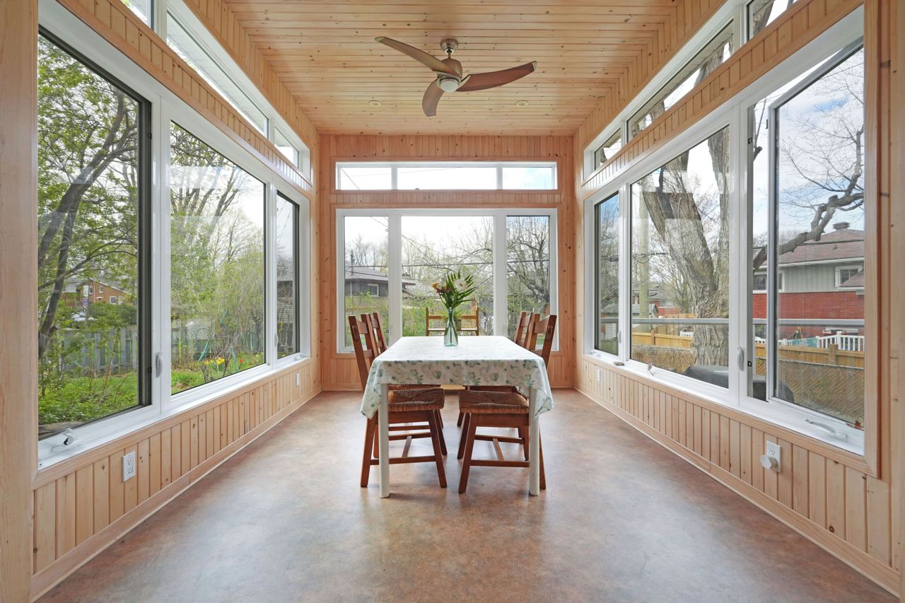 主楼层设有明亮开阔的厨房,配备中央岛台、步入式食品储藏室和充足的自然光线,是烹饪、聚会和日常生活的理想场所。与厨房相邻的是宽敞的客厅和餐厅区域,流畅的布局非常适合招待宾客。三间卧室和一间全套卫浴完善了主层配置。最引人注目的是2010年重大翻修时增建的大型阳光房(投资超9万加元,持有渥太华市完整许可),这个出色的三季空间既可作为阳光充沛的多功能休闲区,也可通过辅助供暖实现全年舒适使用,为房屋显著增加了使用面积和价值。
