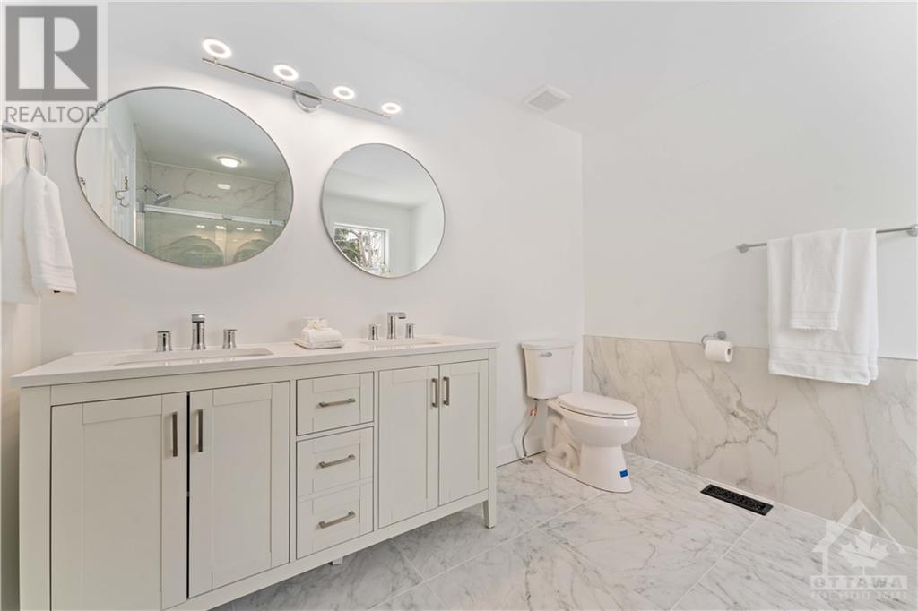 Nestled in the picturesque Kanata Lakes, this executive single-family home is perfect for a growing family. The property boasts a beautiful wooded area, offering nature views from the back of the home. Recently renovated, the main level of the home boasts hardwood flooring throughout, formal living & dining rooms, & a family room with gas fireplace. The bright chef's kitchen comes with stainless steel appliances & a breakfast nook. The upper level offers a principle suite with a walk-in closet, 4pc ensuite with a soaker tub, & separate shower. There are three above-average bedrooms and a full bath on this level. The fully finished basement provides a rec room and storage. Other features include: a powder room, a large foyer, a laundry room, and inside access to the 2-car garage. Located close to everyday conveniences. This home provides the perfect combination of modern luxury and natural serenity. 24 hr irr on offers. (id:22211)