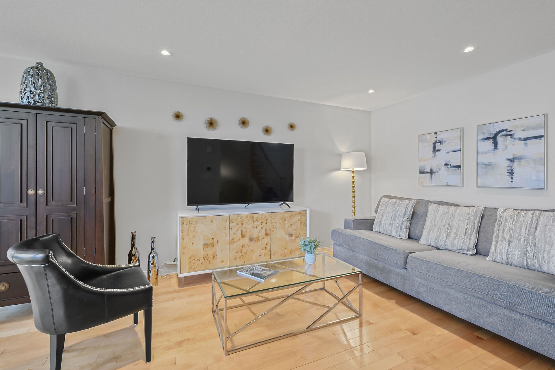 位于 Morgans Grant,这座可爱的 3 卧室、3 浴室的联排别墅,拥有装修好的地下室,装饰精致。开放式起居空间,从装饰到电器、暖炉等均经过多次翻新。即可入住,享受主层整个区域的桦木硬木和瓷砖地板,以及柔和的灰色调。此房产的地理位置十分理想,位于一条安静的街道上,靠近 Dunollie Park 和 J. Donahue Public School。短距离步行可达高科技区域、众多公园、商店、娱乐中心和公交服务。漂亮的前廊配有新前门,带有嵌入式窗户和黑色把手。瓷砖门厅拥有更新的水晶吊灯,并通往带更新镜子和灯具的 2 件套化妆间。宽敞的起居和餐厅拥有嵌入式照明和一个高大的三层窗户,为房间带来自然光线。厨房有一个加长的岛台,非常适合娱乐、备餐和储物。特色包括升级的浅色橱柜、地铁瓷砖后挡板、锅抽屉、瓷砖地板和更新的高品质不锈钢电器。还有一个带拱形天花板的宽敞用餐区,以及通往露台和围栏后院(无通行权)的推拉门。目前用作家庭办公室。带装饰壁龛和吊灯的弧形楼梯通往二楼。主卧室拥有升级的桦木硬木地板,延伸至步入式衣橱,浅色中性装饰,大窗户可俯瞰后院,并设有 4 件套套间。带抽屉的白色梳妆台配有时尚的镜子、更新的灯具、瓷砖地板、带瓷砖环绕的罗马浴缸和独立淋浴间。另外两个宽敞的卧室,每间都配有带百叶窗的双窗户和双衣柜。主浴室近在咫尺,配有带瓷砖环绕和地板的浴缸/淋浴组合。装修好的地下室是电影之夜、玩耍和办公的绝佳空间。可爱的围栏后院有充足的空间用于园艺、玩耍以及与家人朋友共度时光。后院无通行权。暖炉 2025 年,空调 2019 年。所有报价均需 24 小时不可撤销。