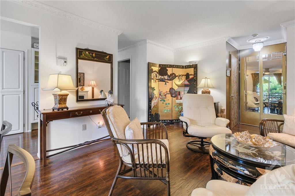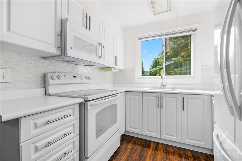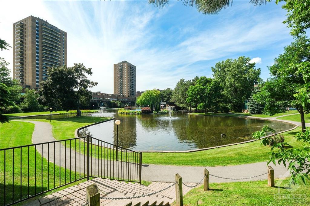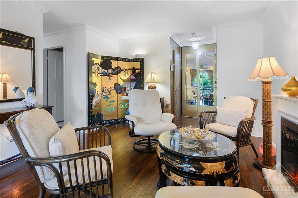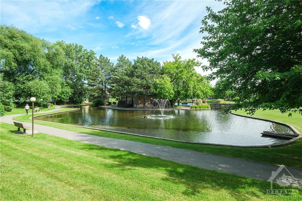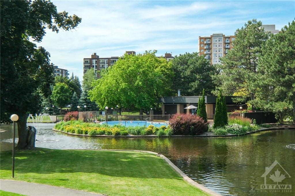 Meticulously maintained and improved this rare 2 bedroom plus den end unit is move in ready. Feats incl: living/dining area with fireplace and crown moldings, updated appliances in the gourmet eat-in kitchen, COMPLETELY renovated bath with glass shower doors and plenty of counter space. There is even convenient in unit laundry! The West facing patio surrounded by beautiful gardens offers amazing views of the parkland oasis, pond, fountains and walking paths. You won't find this everywhere! Other amenities include: tennis/pickle ball courts, indoor salt water pool, outdoor pool, rec center with racket courts, sauna, gym, and party room. Amazing location walking distance to Montfort hospital, C.M.H.C., La Cite Collegial and everything you need. You are also only minutes to the heart of the nation’s capital by car, transit or bike AND close to all the quaint amenities of "Beechwood Village" with shops, select restaurants and other great amenities. One prime parking space also included.