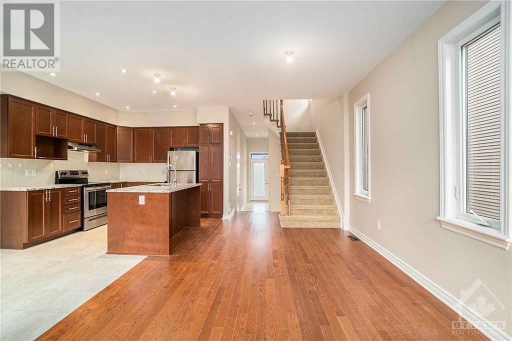 Stunning 3-bedroom end unit townhome built by Richcraft, in desirable family-friendly neighbourhood of Riverside South. No front neighbours and walking distance to schools, parks, shopping and future LRT station. Spacious open concept main floor w/ hardwood throughout & lots of natural lighting. Modern kitchen w/ granite counters & SS appliances. Separate eating area w/ access to the backyard. Living rm has vaulted ceiling & gas fireplace - perfect for cozy winter nights. Second level features primary bedroom retreat complete w/ walk-in closet & 4pc ensuite. Two additional bedrooms and full bath on this level are perfect for children, guests, or a home office. Fully finished basement boasts a large egress window, filling the space with natural light and creating a versatile area for a playroom, home gym, or additional living space. The possibilities are endless, allowing you to customize the space to fit your lifestyle. (id:22211)