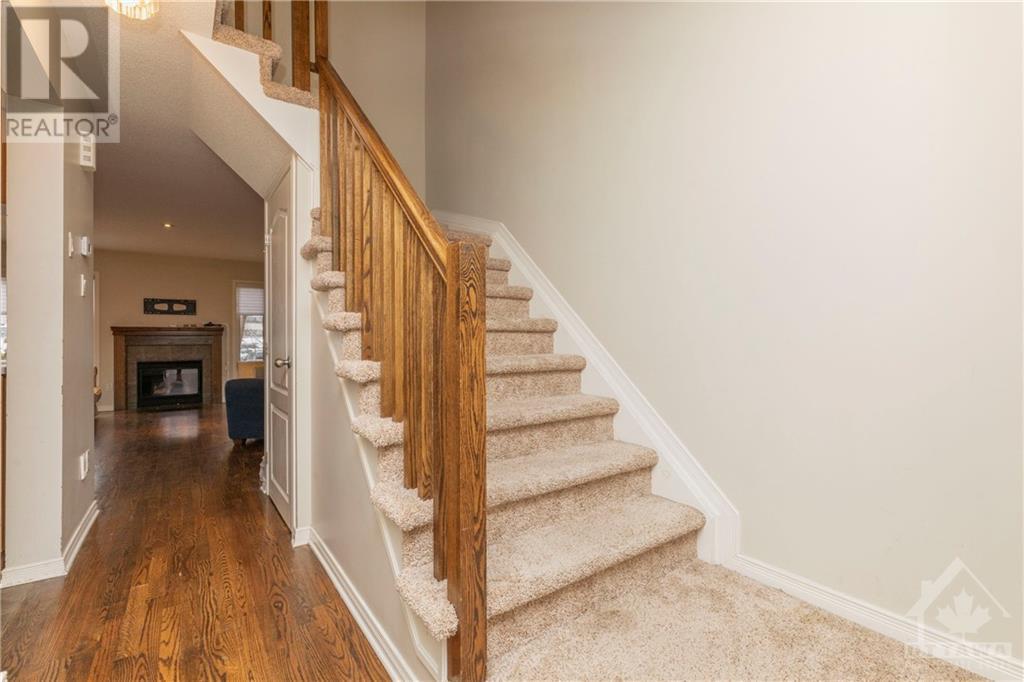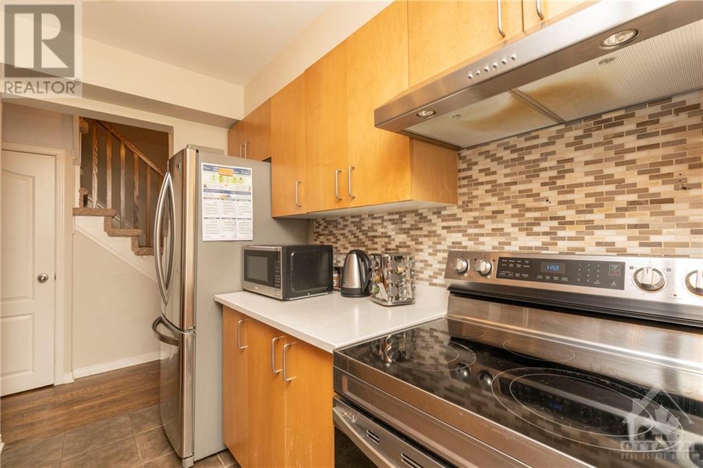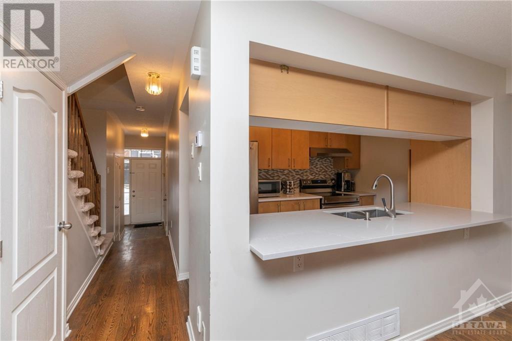 All brick 2-storey townhome close walking distance to General Hospital, CHEO, Canadian Dental Assoc. & major transit hub. Minutes to downtown and Trainyards Shopping. Enter the spacious foyer, past a conveniently located powder room, & into a bright open-concept living/dining room with a gas fireplace and a peek-a-boo window to the kitchen. The kitchen provides plenty of cabinets and counter space with stainless steel appliances. The upper level offers a very unique primary bedroom with 9' ceilings, a walk-in closet, and a 4pc ensuite with a soaker tub and separate shower. 2 additional bedrooms and a full bath complete this level. The finished basement has a rec room, 3pc bathroom, laundry, and storage. Fully fenced yard with patio. No rear neighbours. Association fee: snow removal, grass cutting in common areas, and road maintenance. (id:22211)