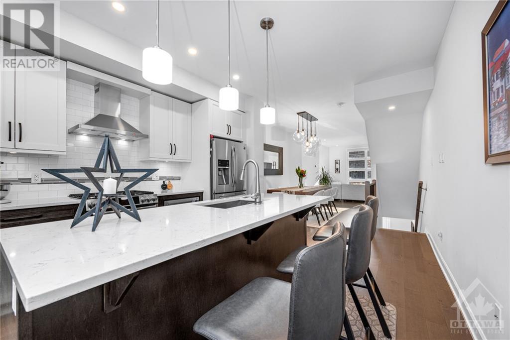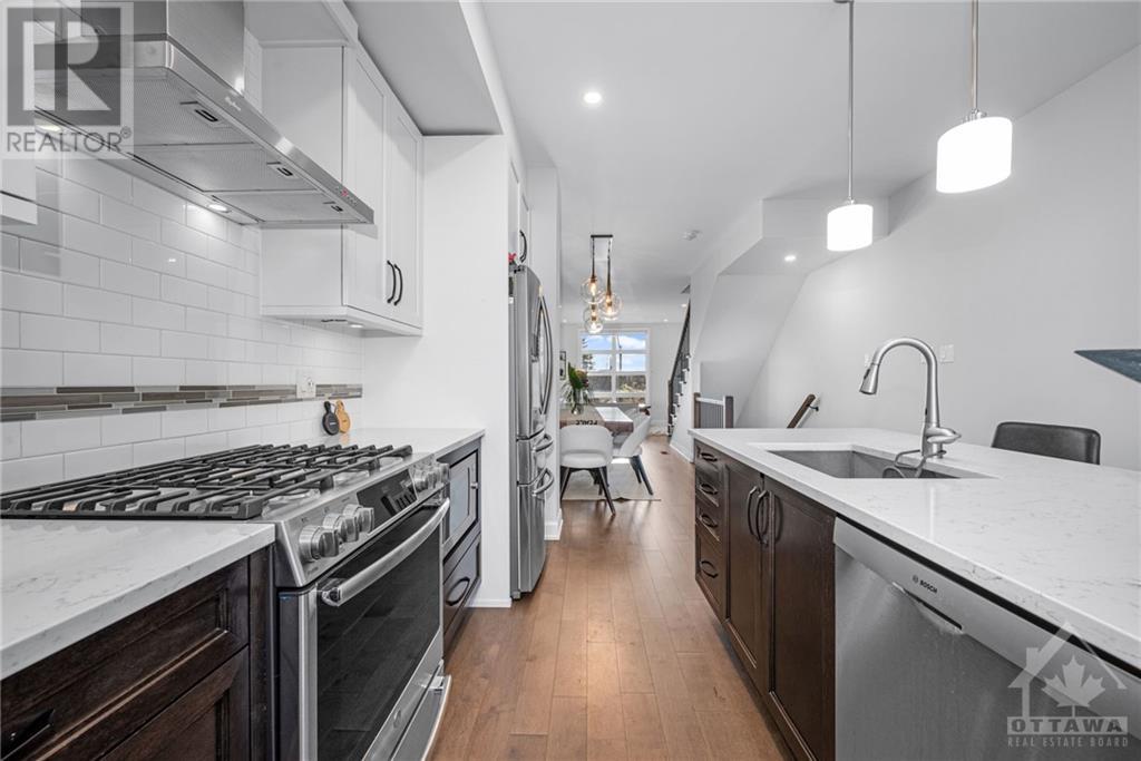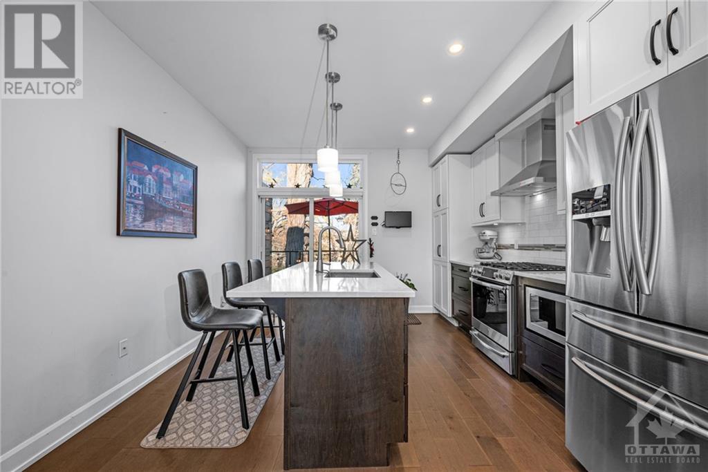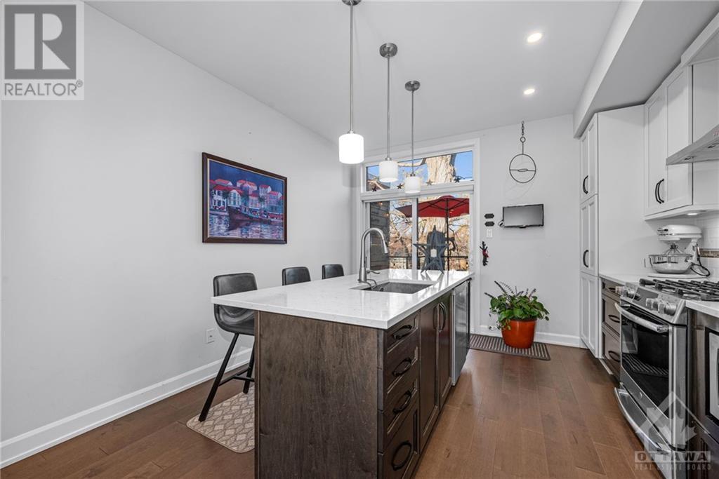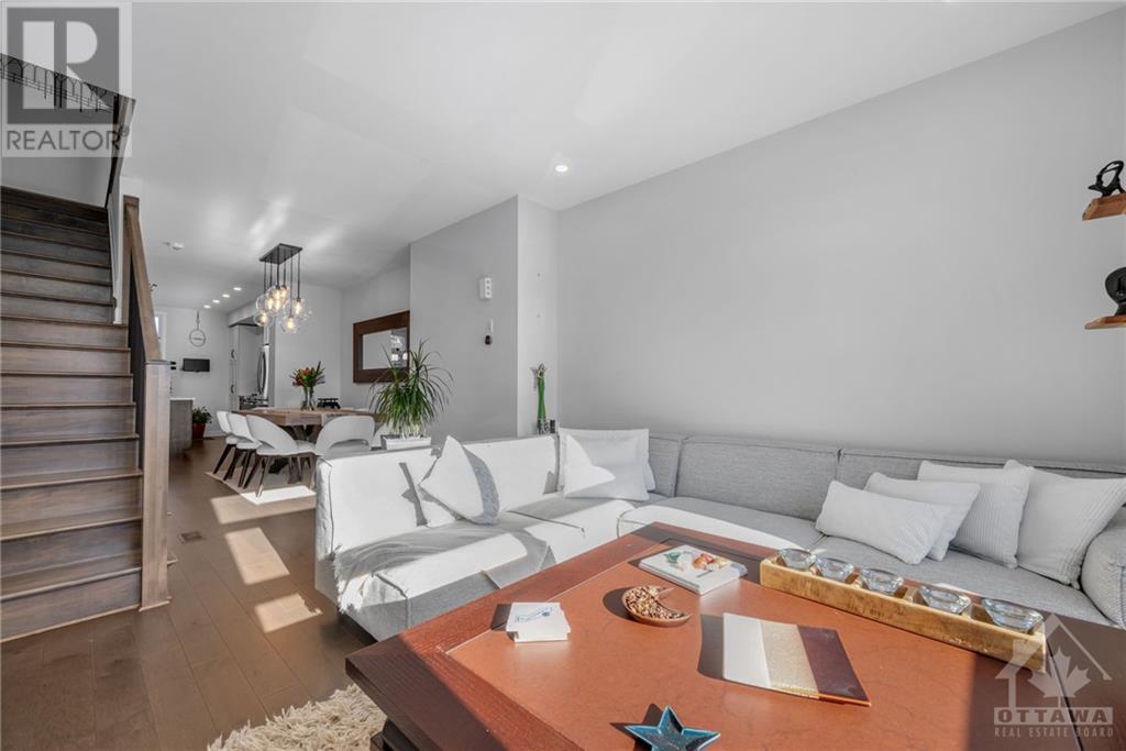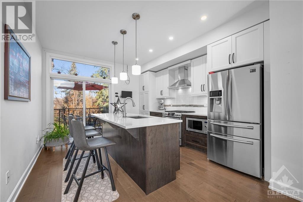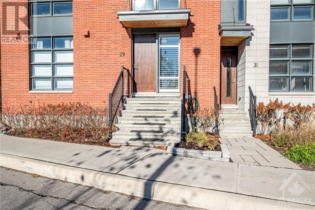 Welcome to 29 Des Oblats Ave, this modern, executive townhome is located in the trendsetting Greystone Village in old Ottawa East. The open concept floorplan includes 2 bedrms + 2.5 baths. The five star kitchen is open to the living/dining spaces & includes top-of-the-line kitchen appliances, stone countertops & ample storage space. Large windows flood the space with natural light. A balcony provides the perfect spot for a morning coffee or end of the day beverage. 2 well-appointed bedrms, an ensuite & main bath & laundry are found on the top level. The main level opens to a media rm that can double as a home office. Hardwd throughout, custom blinds & Lutron smart bridge app controls the custom lighting in this home. Best of all it is steps away from the picturesque Rideau River, the Rideau Canal & Lansdowne. Come live in a vibrant community with easy commuting and access to river, parks, schools, shopping, and trails for outdoor enjoyment. This home is a true gem. (id:22211)