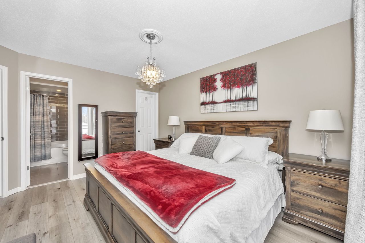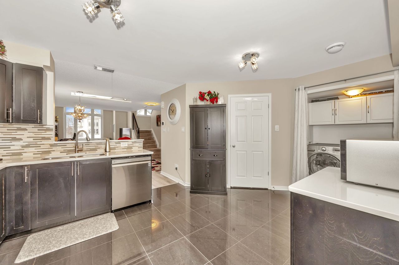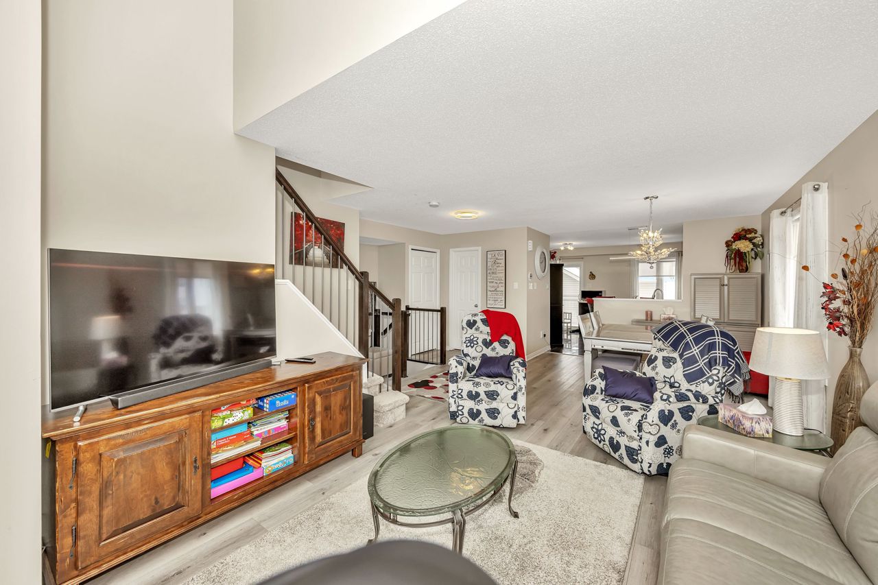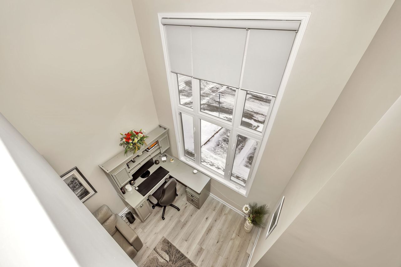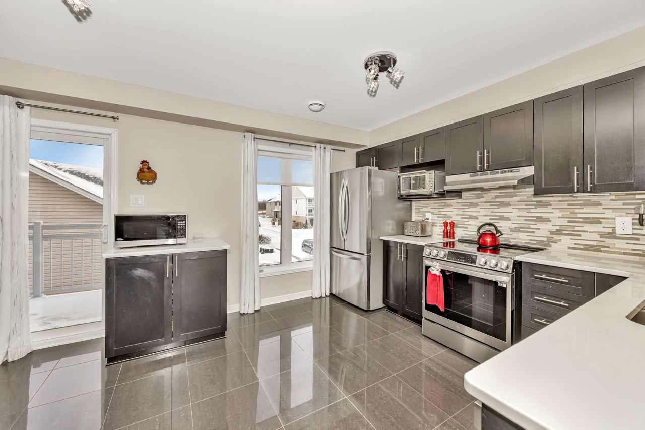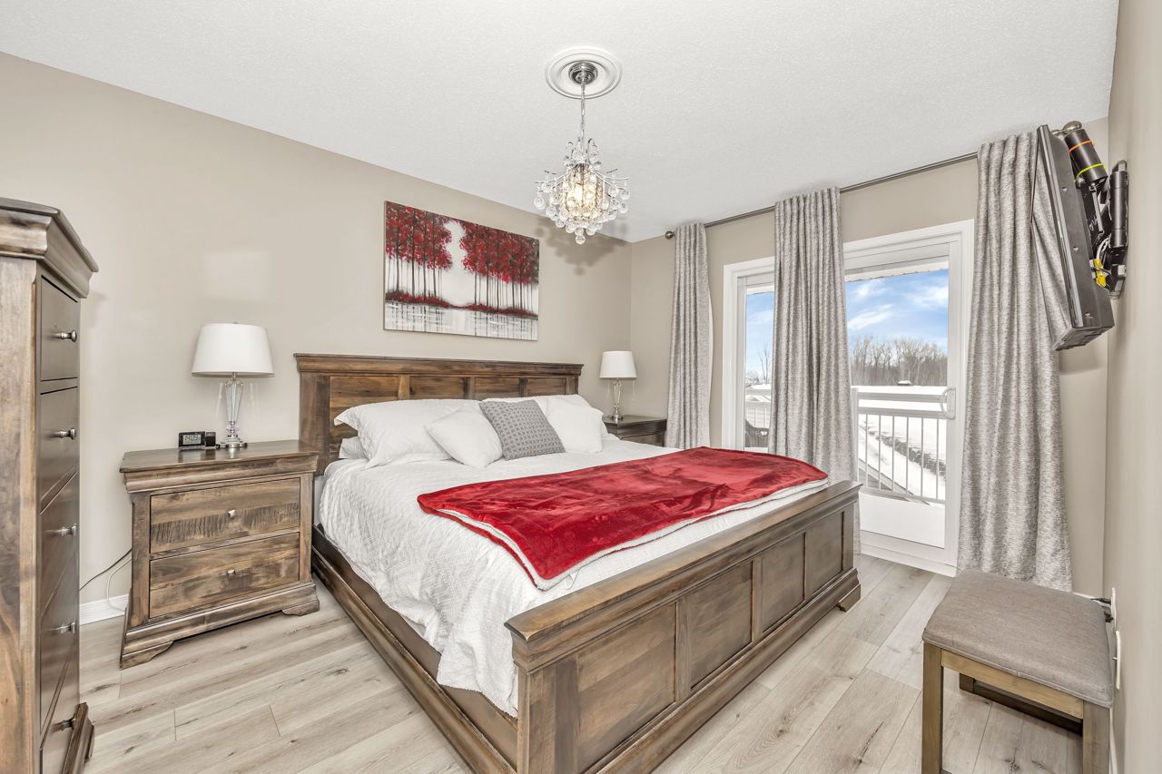 Exquisite upper-level corner end unit with loft, in prestigious Chapel Hill South Community! Quiet section of the development. 25K of upgrades in 2022 including flooring, custom blinds, fixtures and dimmers & painted throughout. This rarely available 2-bedroom, 2-bathroom gem offers over 1,500 square feet of thoughtfully designed living space, bathed in natural light from an abundance of windows. The soaring vaulted ceilings create an airy and open atmosphere, making this home feel even more expansive. Luxury vinyl flooring throughout main living area and bedrooms. Elegant upgraded light fixtures throughout. The main floor features a spacious, open-concept layout perfect for entertaining family and friends. The gourmet kitchen with ample cabinet and counter space boasts sleek quartz countertops, stainless steel appliances (on site appliances will be replaced by new appliances on closing), and sleek ceramic tile flooring. A good sized breakfast nook area leads to a sun-filled private balcony. The main level also includes a powder room, a laundry area & mechanical/storage area for added convenience. Upstairs, the primary suite offers a walk-in closet, a private balcony & cheater-door to the main bathroom. A second well-sized bedroom and a versatile loft space add flexibility to the home, making it ideal for a TV room or home office. Enjoy the best of both worlds with easy access to public transit, walking trails, and nearby parks. **EXTRAS** Condo fees include: Snow removal, lawn care, building insurance, maintenance, water, reserve fund