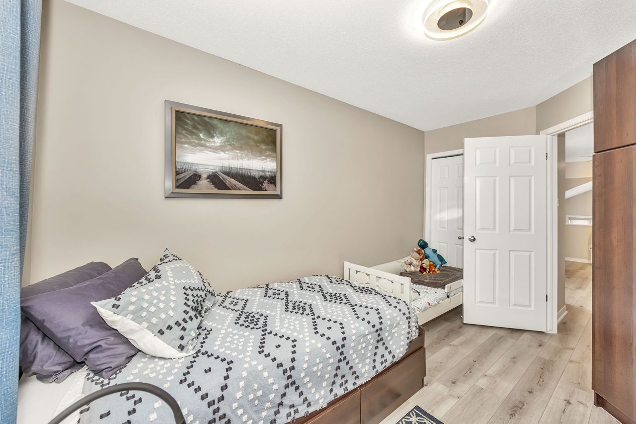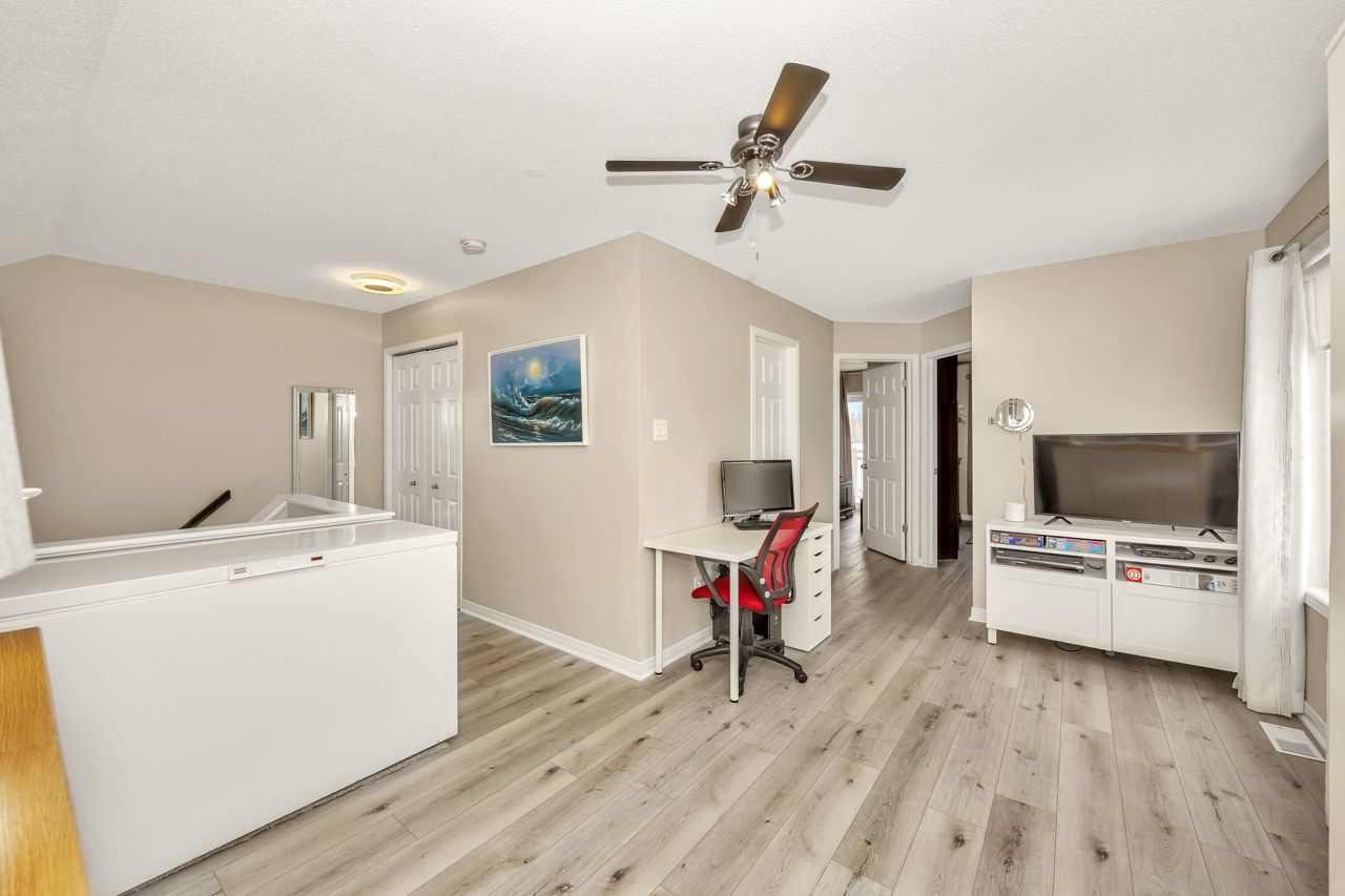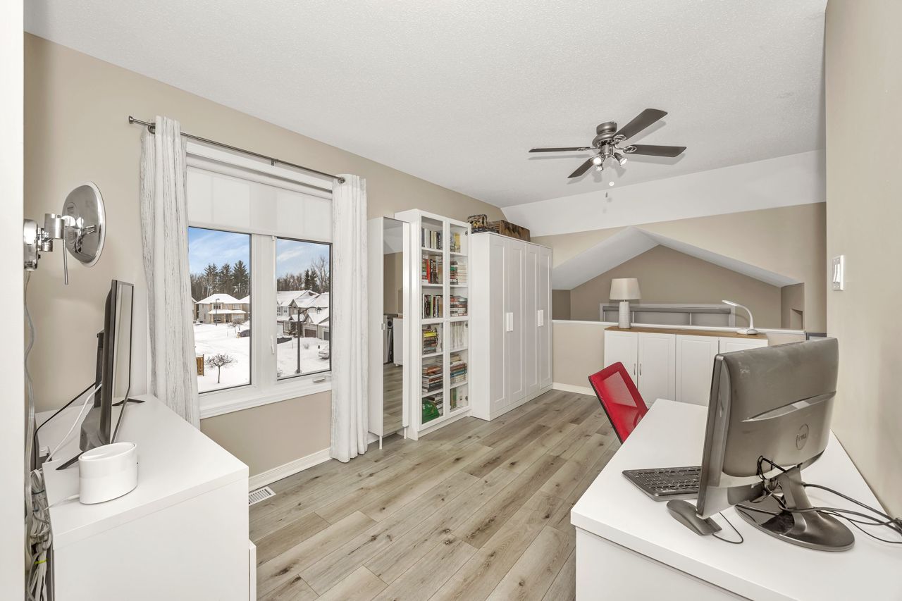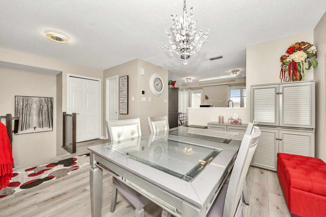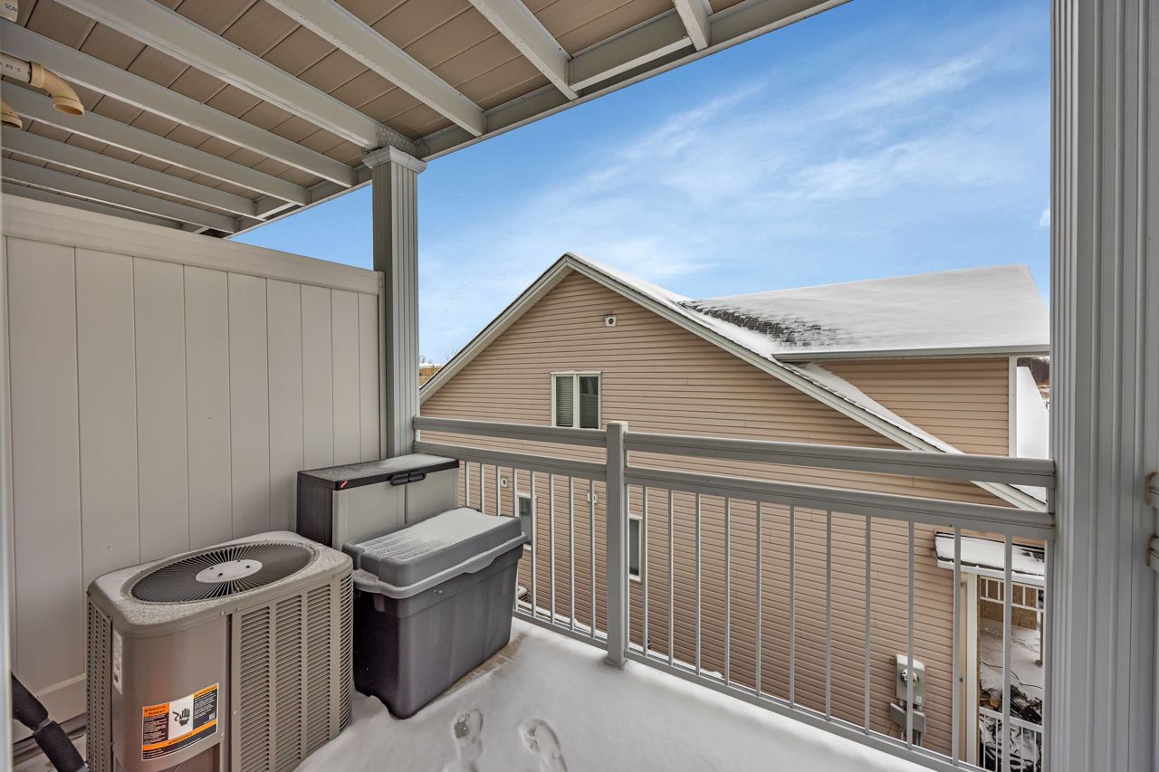 Exquisite upper-level corner end unit with loft, in prestigious Chapel Hill South Community! Quiet section of the development. 25K of upgrades in 2022 including flooring, custom blinds, fixtures and dimmers & painted throughout. This rarely available 2-bedroom, 2-bathroom gem offers over 1,500 square feet of thoughtfully designed living space, bathed in natural light from an abundance of windows. The soaring vaulted ceilings create an airy and open atmosphere, making this home feel even more expansive. Luxury vinyl flooring throughout main living area and bedrooms. Elegant upgraded light fixtures throughout. The main floor features a spacious, open-concept layout perfect for entertaining family and friends. The gourmet kitchen with ample cabinet and counter space boasts sleek quartz countertops, stainless steel appliances (on site appliances will be replaced by new appliances on closing), and sleek ceramic tile flooring. A good sized breakfast nook area leads to a sun-filled private balcony. The main level also includes a powder room, a laundry area & mechanical/storage area for added convenience. Upstairs, the primary suite offers a walk-in closet, a private balcony & cheater-door to the main bathroom. A second well-sized bedroom and a versatile loft space add flexibility to the home, making it ideal for a TV room or home office. Enjoy the best of both worlds with easy access to public transit, walking trails, and nearby parks. **EXTRAS** Condo fees include: Snow removal, lawn care, building insurance, maintenance, water, reserve fund
