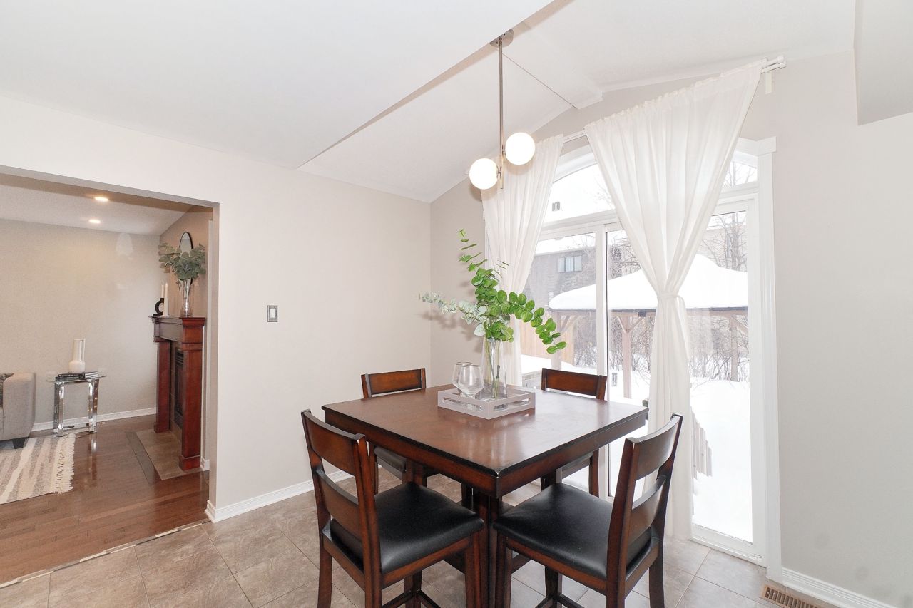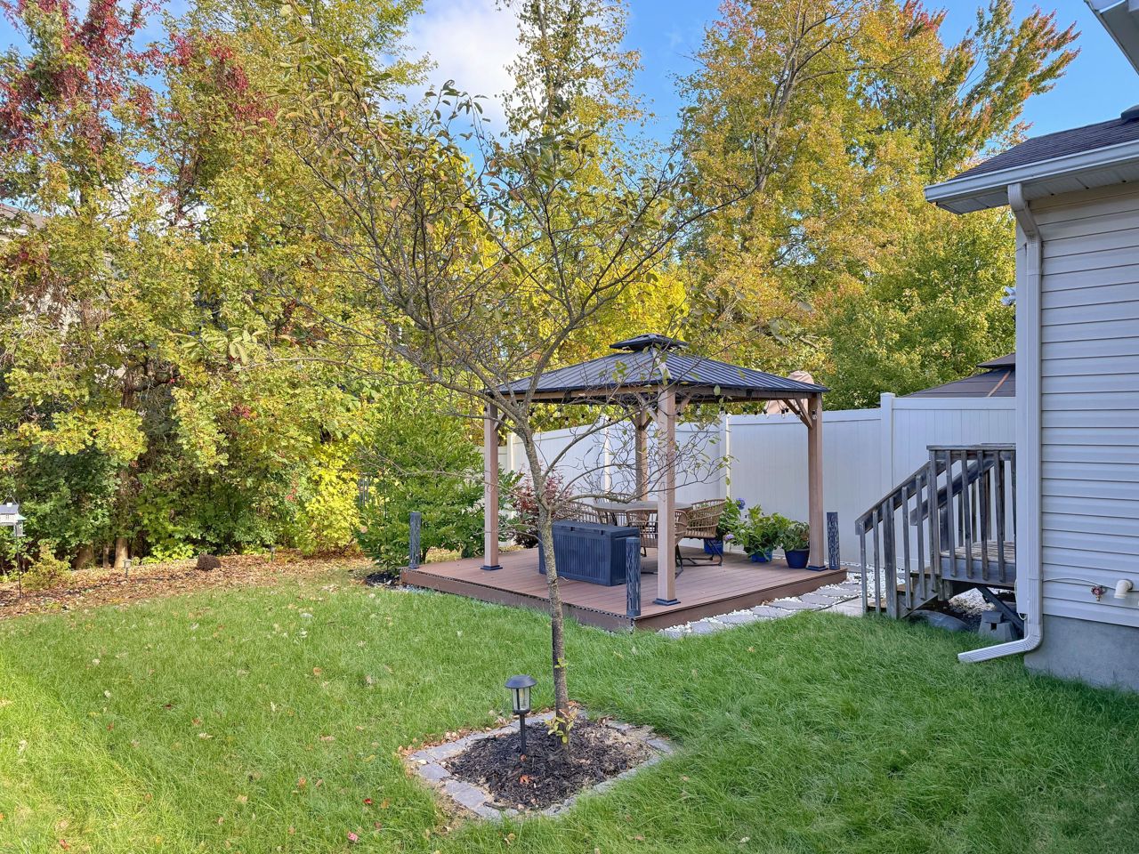 Stunning SEMI-DETACHED Home by Quality Builder Holitzner, Nestled in the heart of the highly sought-after KANATA NORTH - Morgans Grant community, this beautifully maintained home sits on an EXTRA-DEEP LOT, surrounded by MATURE TREES for ULTIMATE PRIVACY. With approximately 2,400 sq. ft. of living space, this rare gem offers 4 Bedrooms, 3 Bathrooms, and a FULL FINISHED BASEMENT. Main Level Designed for BOTH Elegance and Functionality, features maple hardwood flooring, new light fixtures, and pot lights throughout. The inviting foyer leads to a versatile 9 ft living room/office space at the front of the home. A formal dining room centrally located, perfect for hosting gatherings of any size. The sunlit, open-concept family room boasts wall of large windows, and a cozy gas fireplace. Chefs dream kitchen, complete with granite countertops, a large island, rich millwork, ample counter space, and stainless-steel appliances. The bright breakfast area overlooks the private backyard. The upper level is flooded with natural light and offers 4 spacious bedrooms, 2 full baths, and a convenient laundry room. The primary retreat features a large walk-in closet, spa-like ensuite with a Roman soaker tub, and a separate shower. The finished basement provides additional living space and includes a rough-in for a future bathroom. Outdoor Oasis: Step into a private backyard retreat, featuring a newly installed WI-FI ready Sprinkler System, a large deck with gazebo, and mature trees, perfect for outdoor enjoyment. Top-ranked schools: Within the boundaries of All Saints H.S. and West Carleton S.S. Prime Location: Walking distance to South March P.S., LCBO, Sobeys, restaurants, nature trails, and a hockey rink. 6 min to Kanata High Tech Park. 9 min to HWY 417. 10 min to Kanata Centrum & Costco. 13 min to DND Headquarters. Well-maintained and move-in ready! Flexible closing available.