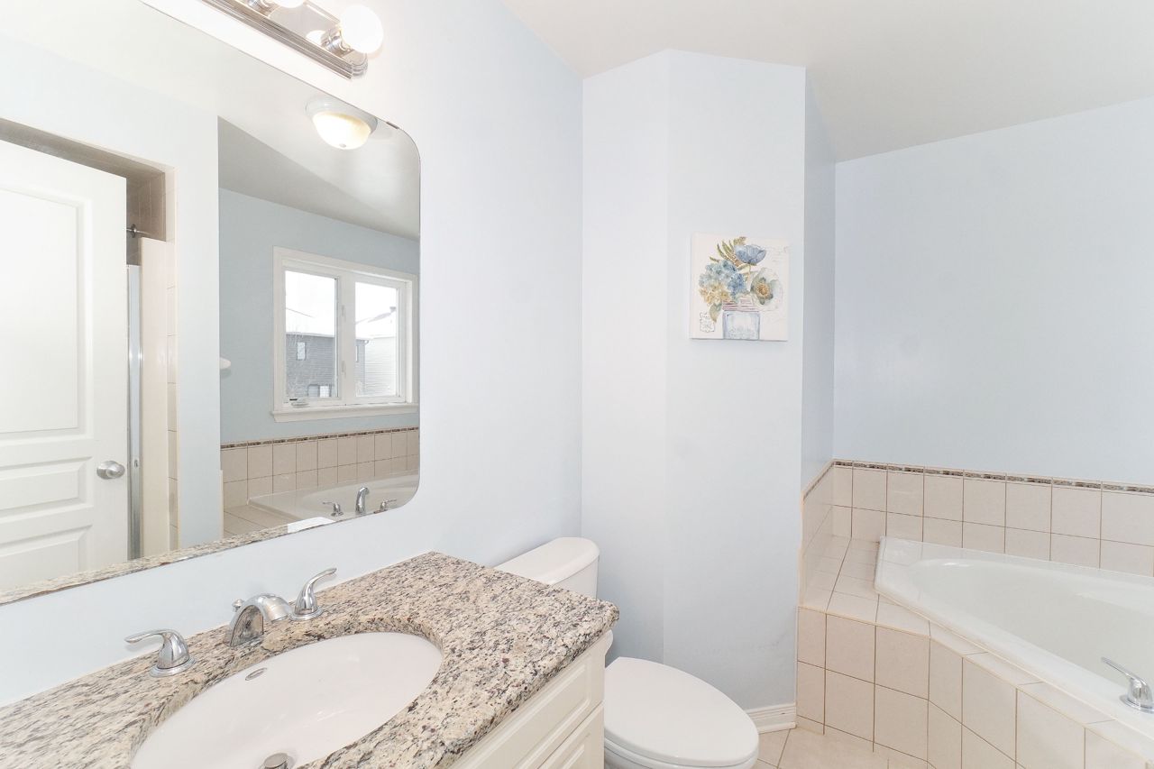 上层阳光充足,拥有4间宽敞的卧室、2间浴室和一个便利的洗衣房。主卧套房设有一个大型步入式衣橱、水疗式套间,内有罗马式浸泡浴缸和独立淋浴间。装修完毕的地下室提供额外的居住空间,并预留了未来浴室的管道接口。