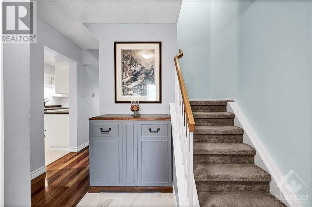 This is what everyone loves about the Katimavik location, an amazing court location hidden behind greenery, just seconds away from Nature, highly rated Schools, Public transitways, Bike Paths, major shopping, and so much more!! This impeccable townhouse was completely renovated 5 years ago - with its current owner adding new hardwood and a modern basement over the last few years - not too mention a completely renovated Kitchen and bathroom. Everyone loves the large rooms, huge Kitchen, and oversized Bedrooms - that make it comfortable for years to come!! This home features Central Air, gas heat, and the warmth of a wood burning fireplace. Not too mention it comes with parking for two, and backs onto a beautiful greenspace, and features a holistic and maintenance free lifestyle right in the heart of Kanatas most desirable neighbourhoods...Open House Sunday 2-4:30 (id:22211)