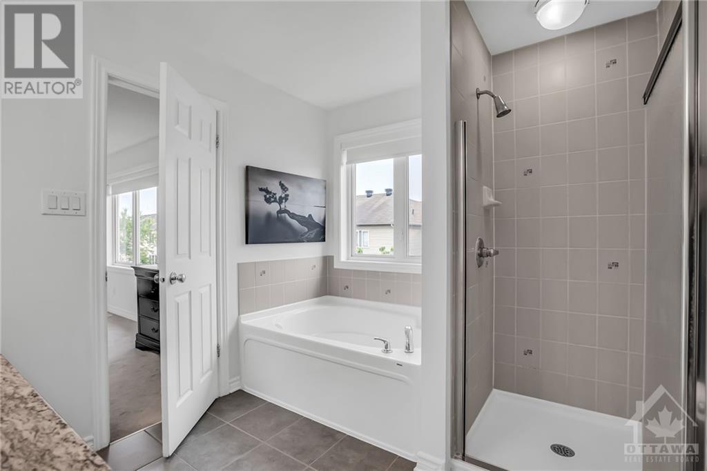 Meticulously maintained Minto home in sought-after Chapman Mills area, featuring in-law suite with completely separate entrance perfect for multi-generational living! 4 bedrooms upstairs & a further 2 in the lower-level suite. Spacious living room is great for family gatherings or to relax by the gas fireplace. Kitchen is equipped w/ stainless steel appliances, ample storage cabinetry, & beautiful stone counters. Upstairs, primary bedroom offers a generous closet plus private ensuite bathroom. Three more inviting bedrooms & another full bathroom Downstairs, there’s a full in-law suite! Complete w/ a kitchen area, two further bedrooms, & full bathroom. The backyard is the perfect place for summer barbecues or to kick the ball. Enjoy the patio area, lots of grass, & a storage shed for all your gardening tools. A short walk away from all your daily shopping, conveniences, schools, parks, public transit, & more in family-friendly Barrhaven. (id:22211)