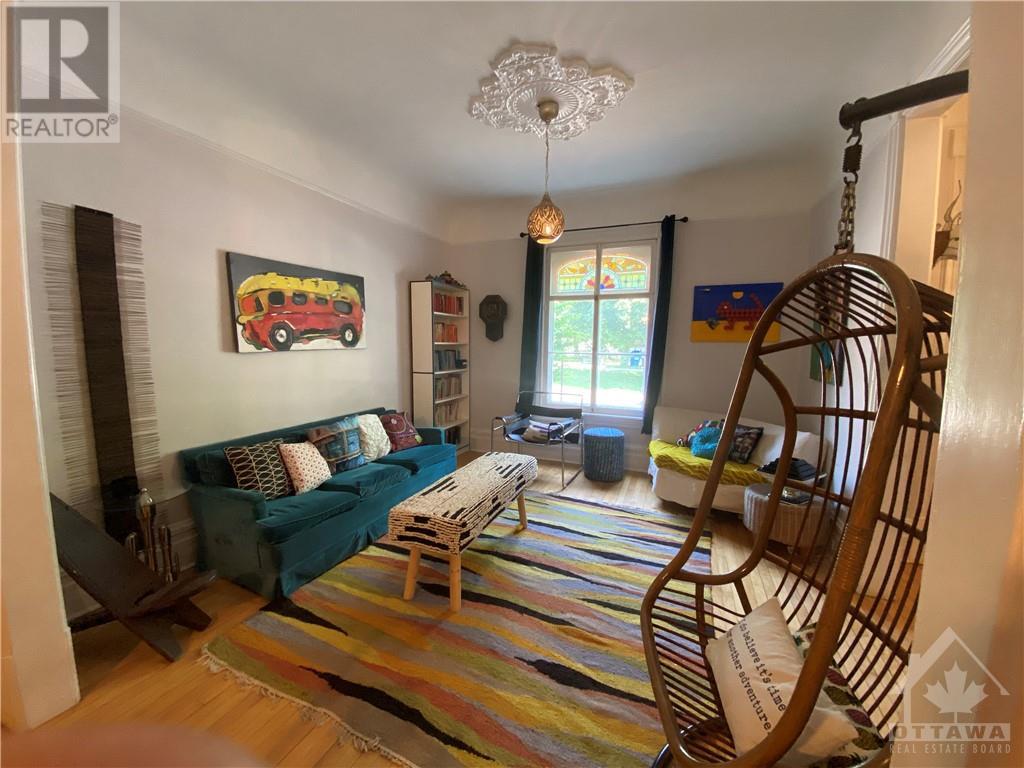 Classic style rowhome overlooking Dundonald Park. Very spacious and filled with natural light this beautiful home is situated in Centretown, minutes to shopping, restaurants, public transportation and all downtown Ottawa has to offer. 19th-century character with the high baseboards, stained glass, doors and ceiling medallions. Main level offers a large living and dining room, a kitchen open to the family room, a powder room and access to the side/back door where you can park one car. Second level has a large primary bedroom with a door to a private balcony. 2 other bedrooms and a full bathroom. The unfinished basement is nice and dry for storage. Private roof top patio through the 3rd bedroom to enjoy the summer time. No smoking, no pets. Rental application, credit check and employment letter with all offers. Available for 2 or 3 years lease. Minimum 12 months. (id:22211)
