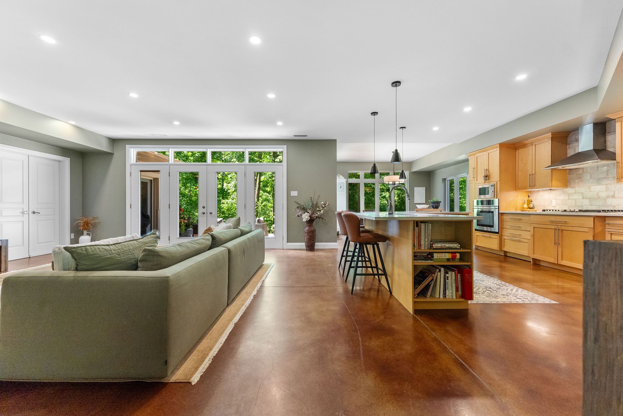 Welcome to 5759 Queenscourt Crescent, nestled in the coveted Rideau Forest of Manotick. This 2006- built Prairie- Style home offers over 4600 sq ft of space and includes 5 bedrooms, 4 bathrooms and a 3 car attached garage on a 4.4-acre lot, providing privacy and tranquility. Enter a warm, welcoming ambiance in a thoughtfully designed and timeless space. The energy-efficient ICF construction and heated polished concrete floors ensure comfort. The large open concept kitchen hosts custom cabinetry, an oversized island and quartz countertops. Next to the greatroom sits a convenient in-law suite, offering both independence and closeness. Expansive windows flood every room with natural light and offer views of the lush surroundings. On the 2nd floor, you'll discover an expansive primary bedroom with sitting area, natural gas fire place, ensuite bath and a large walk-in closet. A 4th bathroom, another bedroom, and large office complete the second floor.