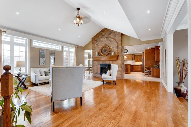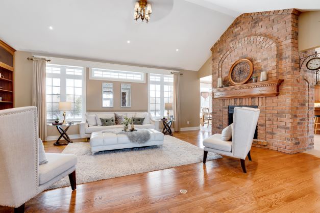Vaulted Ceiling Brick Fireplace