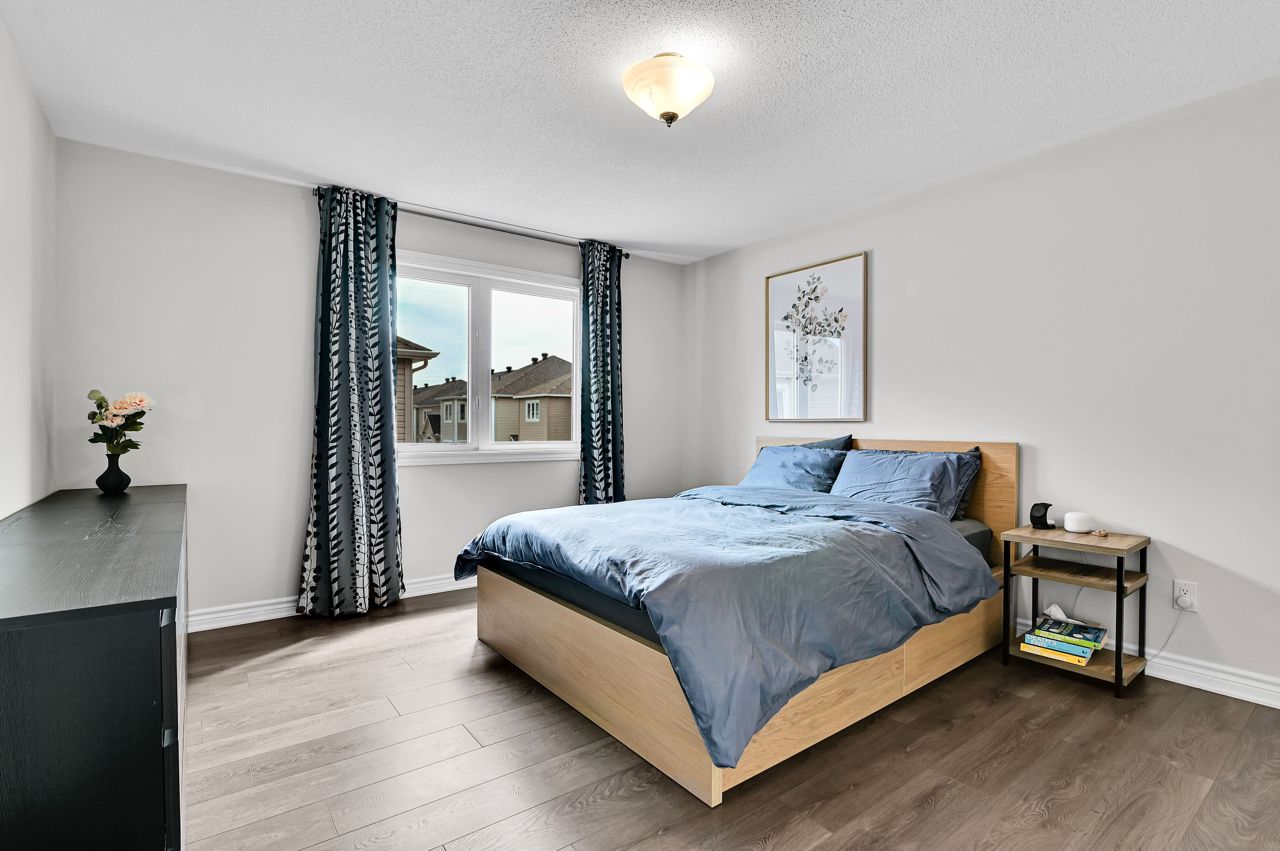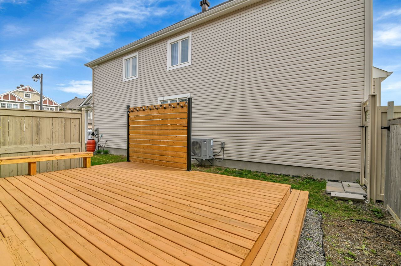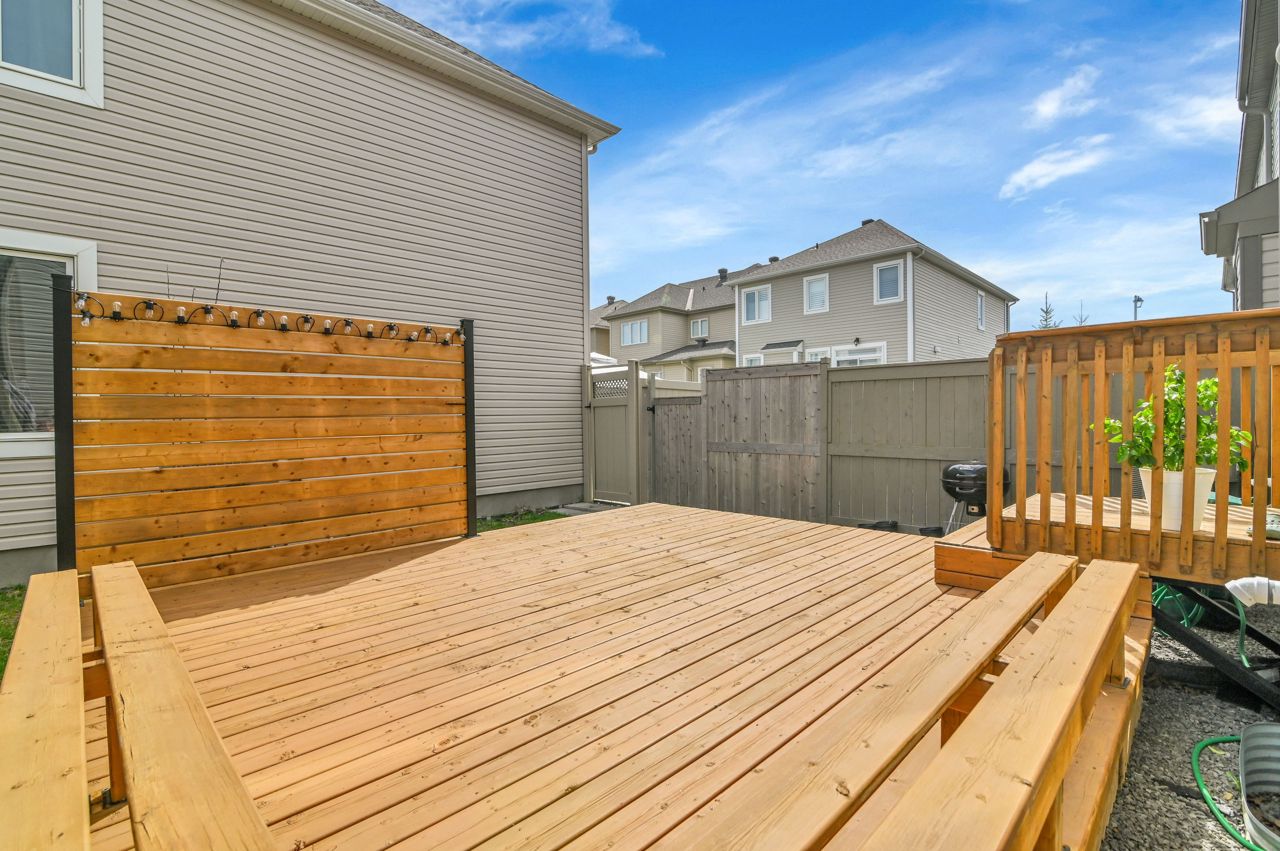Welcome to this stunning 3-bedroom, 2.5-bathroom home located in the family-friendly community of Half Moon Bay in Barrhaven. This well-maintained property offers fantastic curb appeal, a functional layout, and an unbeatable location close to top-rated schools, parks, and everyday amenities. The main floor impresses with a bright and spacious layout featuring a powder room, a welcoming dining area, and a generous living room perfect for entertaining. The open-concept kitchen boasts granite countertops, an upgraded raised breakfast bar, and undermount sinks. Patio doors lead to a private deck added in 2021 along with a side fence and gate creating the perfect space for outdoor dining and relaxation. A new privacy fence was also installed in 2024 for added seclusion. Upstairs, the primary bedroom features a walk-in closet and a private ensuite complete with a sleek and upgraded glass-enclosed shower. Two additional well-sized bedrooms and a full bathroom complete the upper level. Beautiful laminate flooring extends throughout the home excluding the stairs, complemented by upgraded mirrors and interior doors. The unfinished basement offers a blank canvas for future customization (with bathroom rough-in already in place), whether you're planning a rec room, home gym, or extra storage. Additional upgrades include a repaved driveway. With a single garage and space for two additional vehicles in the driveway, this home offers parking for three. Pride of ownership is evident throughout. This home truly shows beautifully and is move-in ready! Don't forget to check out the 3D TOUR and FLOOR PLAN. Book your showing today, you won't be disappointed!