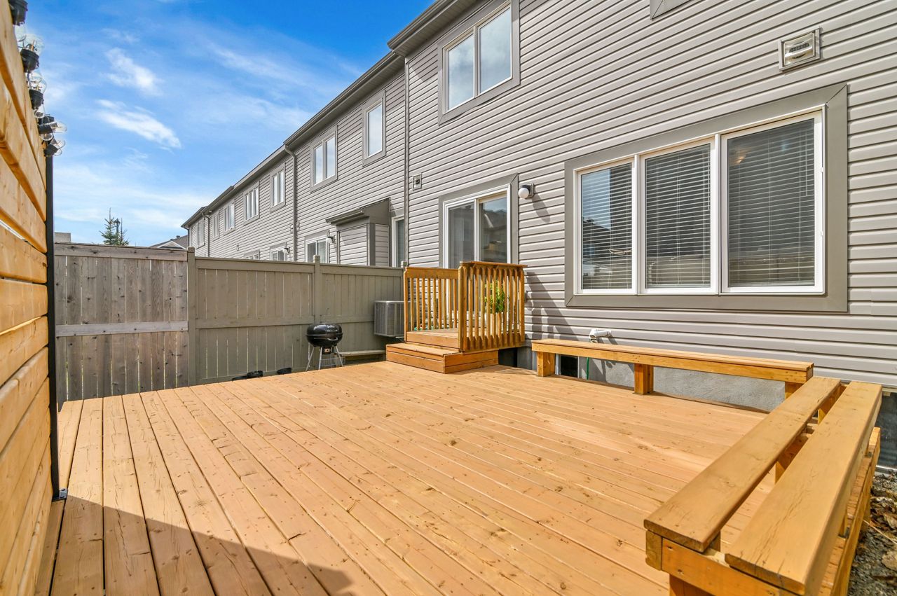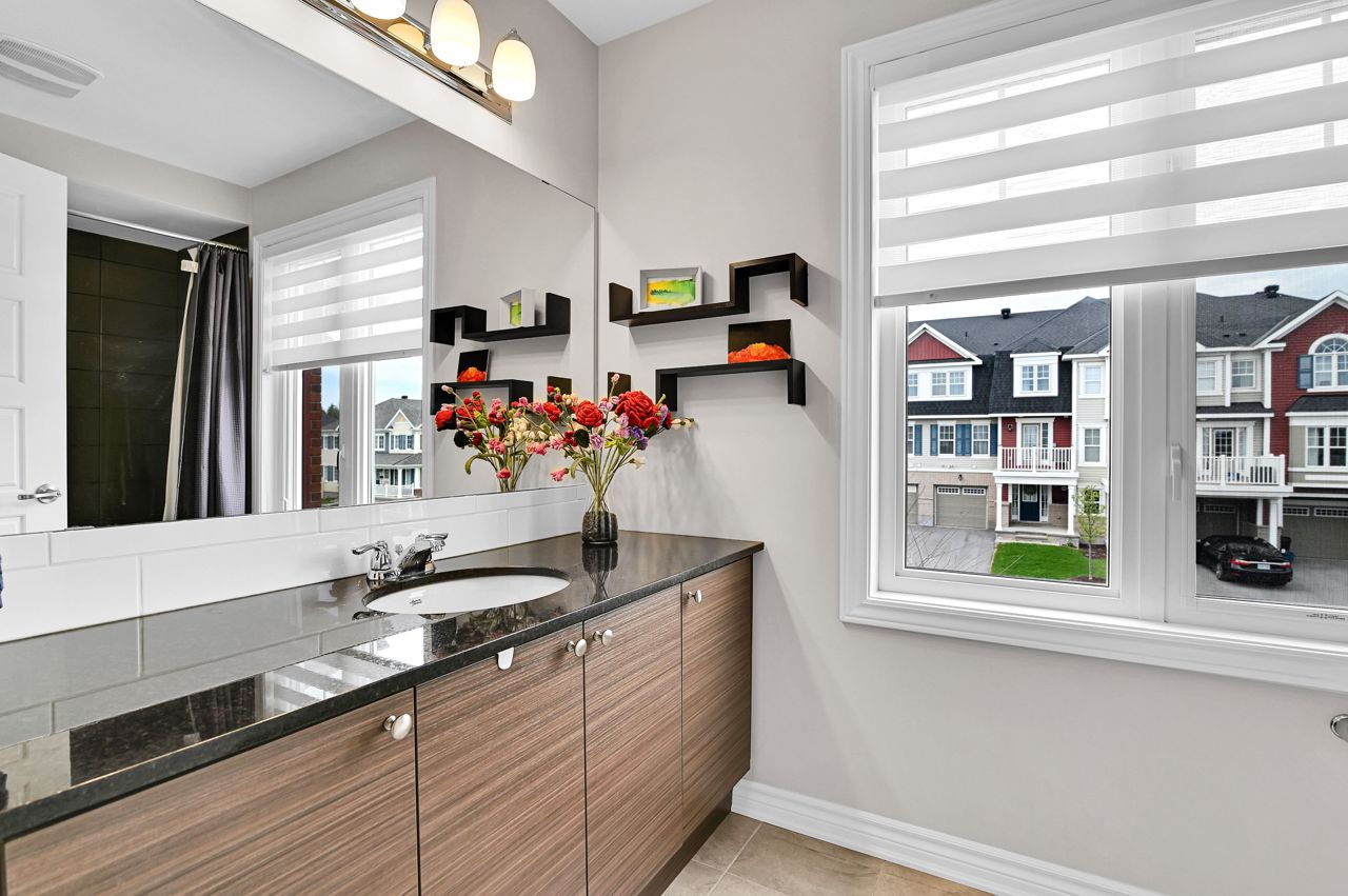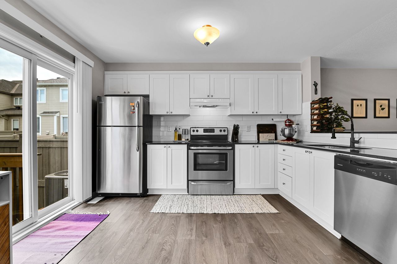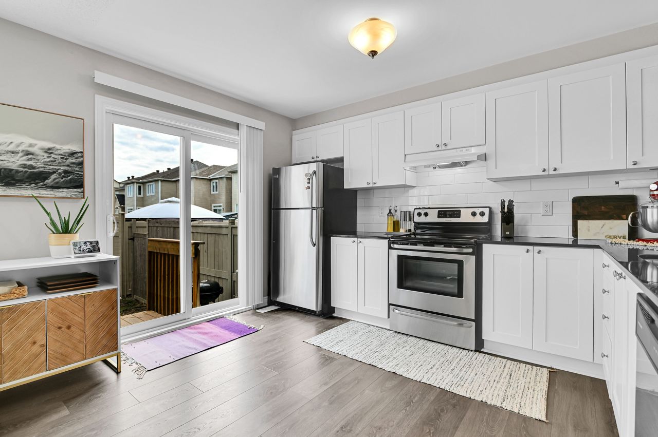 Welcome to this stunning 3-bedroom, 2.5-bathroom home located in the family-friendly community of Half Moon Bay in Barrhaven. This well-maintained property offers fantastic curb appeal, a functional layout, and an unbeatable location close to top-rated schools, parks, and everyday amenities. The main floor impresses with a bright and spacious layout featuring a powder room, a welcoming dining area, and a generous living room perfect for entertaining. The open-concept kitchen boasts granite countertops, an upgraded raised breakfast bar, and undermount sinks. Patio doors lead to a private deck added in 2021 along with a side fence and gate creating the perfect space for outdoor dining and relaxation. A new privacy fence was also installed in 2024 for added seclusion. Upstairs, the primary bedroom features a walk-in closet and a private ensuite complete with a sleek and upgraded glass-enclosed shower. Two additional well-sized bedrooms and a full bathroom complete the upper level. Beautiful laminate flooring extends throughout the home excluding the stairs, complemented by upgraded mirrors and interior doors. The unfinished basement offers a blank canvas for future customization (with bathroom rough-in already in place), whether you're planning a rec room, home gym, or extra storage. Additional upgrades include a repaved driveway. With a single garage and space for two additional vehicles in the driveway, this home offers parking for three. Pride of ownership is evident throughout. This home truly shows beautifully and is move-in ready! Don't forget to check out the 3D TOUR and FLOOR PLAN. Book your showing today, you won't be disappointed!