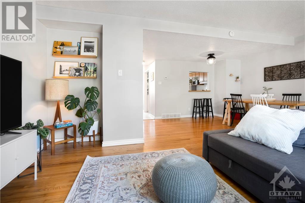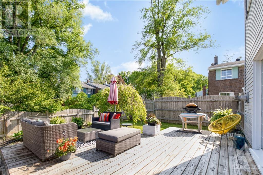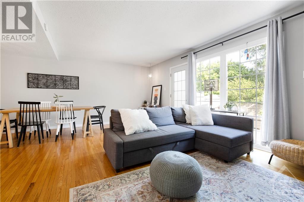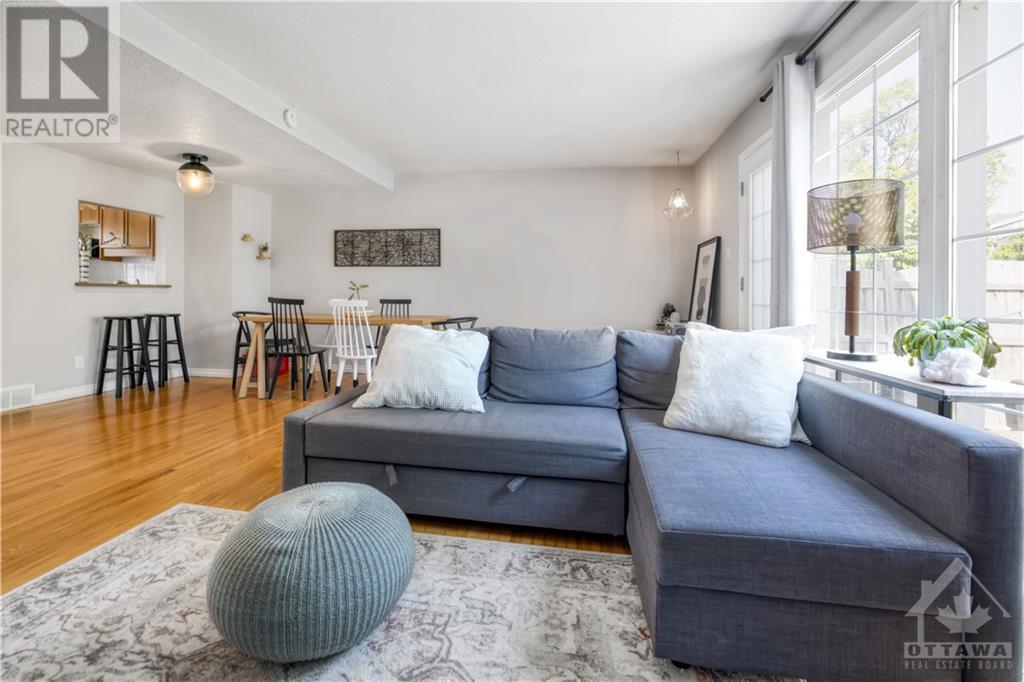 Beautifully maintained END UNIT townhome, with tons of natural light throughout. Tastefully decorated, this 3 bedroom, 1.5 bathroom home offers a fully fenced yard with a deck and a finished basement with great space for a family room or a home gym. Hardwood flooring throughout main living space, upper level & staircase. Living room features a cozy gas fireplace, oversized window and patio door leading to the backyard. Kitchen includes stainless steel appliances and custom sideboard cabinetry for additional storage and counter space. Powder room is conveniently located at the entrance, near the spacious foyer. Upstairs offers 3 great sized bedrooms, a large bathroom with a window and an oversized vanity. This is an incredible location - 15 minute walk to Mooney's Bay, 7 minute drive to the airport, 10 minute walk to the upcoming Walkley LRT station! Many schools and parks nearby. Two parking spots! (id:22211)