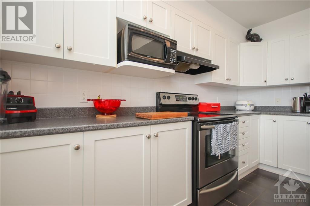 Move-in ready! This fabulous upper unit boasts 2 bed/1.5 bath in an excellent location. Open concept living/dining room features 9ft ceilings, beautiful hardwood flooring, cozy gas fireplace and patio door access to the balcony. Enjoy cooking and entertaining in your large and bright eat-in kitchen. Featuring stainless steel appliances, loads of cabinet and counter space, island with breakfast bar and a large pantry. The upper level offers two generous sized bedrooms with large windows and ample closet space. Laundry and additional storage conveniently located on the second floor. TWO PARKING SPOTS! Great location! Close to St-Laurent Shopping Mall, Gloucester Centre, Train Yards, many restaurants, La Cité Collégiale, Montfort Hospital, and less than 10 min drive to downtown. Furnace (2023), Roof (2021). (id:22211)