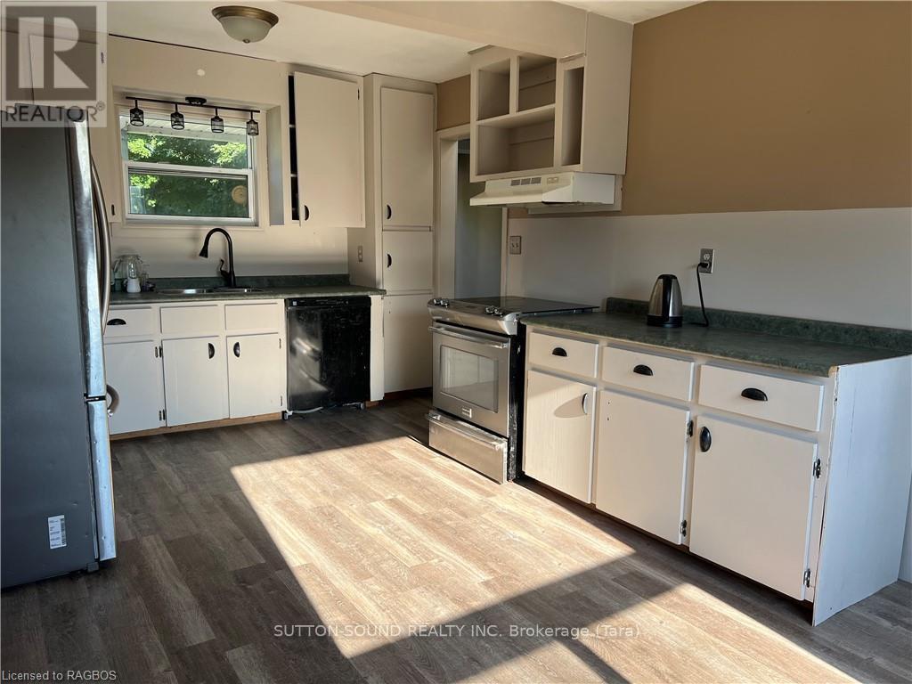 Calling all first time buyers or investors! This 2 bedroom home conveniently located on the east side of Owen Sound might be the perfect place. The house features a large eat in kitchen, bright open living room, main floor laundry, 4 pc bath, and 2 generous bedrooms. There is a natural gas furnace and a walk up from the basement directly to outside. The property is spacious (63ft x 199 ft) with some mature trees and perennials. The back yard is fully fenced and private. There is a private gravel driveway, back deck and storage shed. (id:22211)