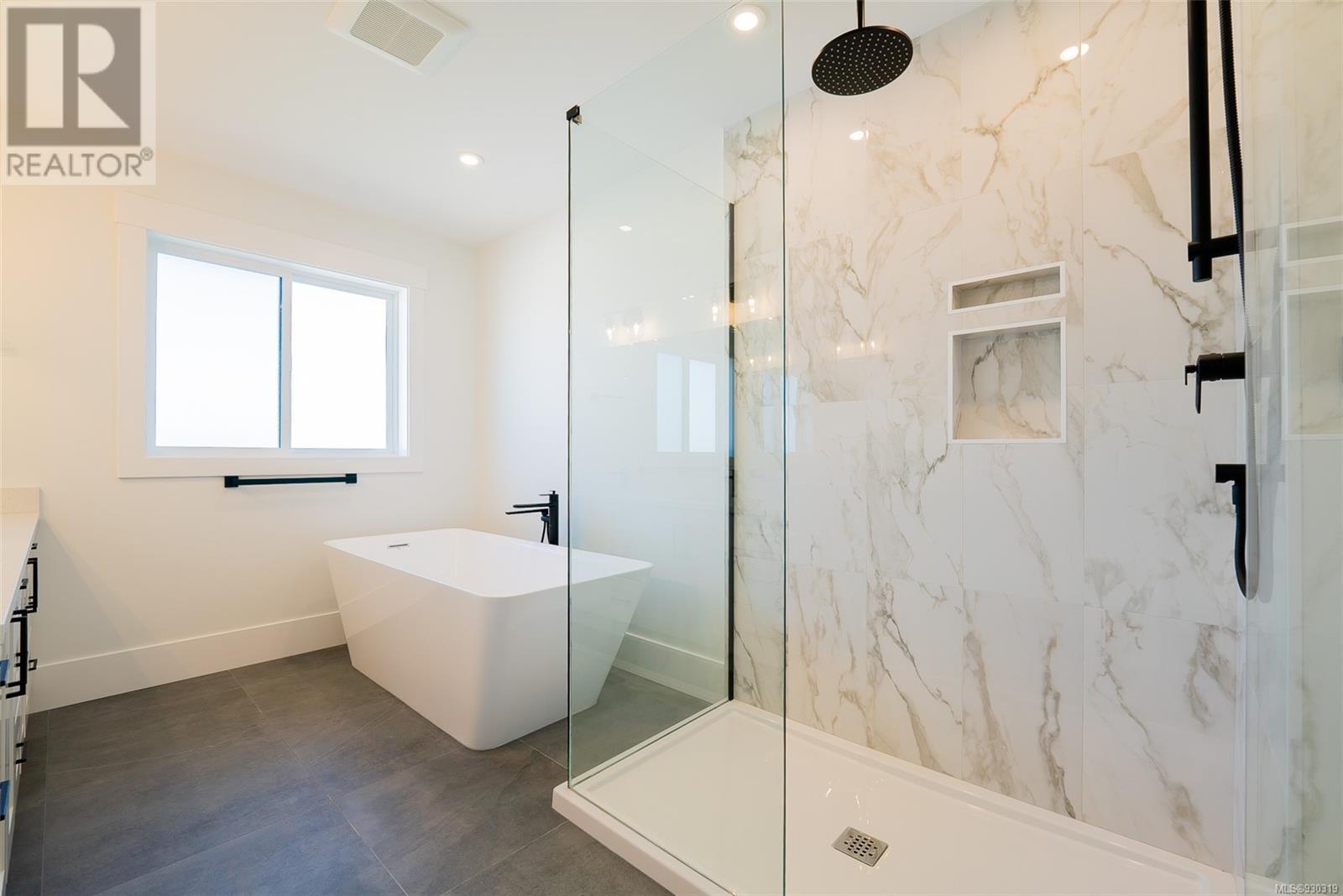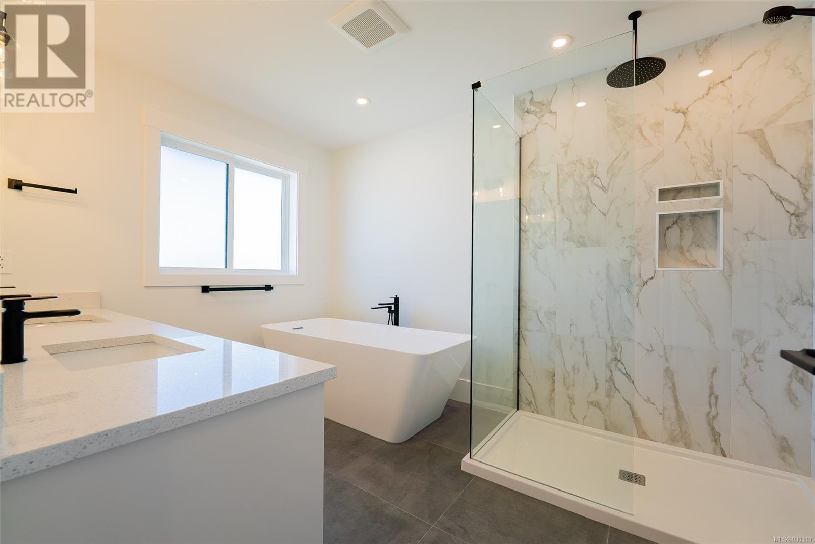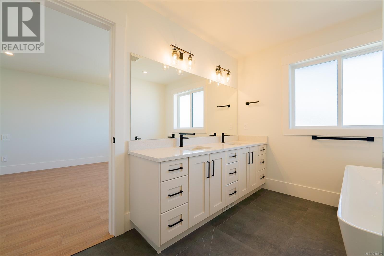 Gorgeous new construction 4 bedroom 3 full bathrooms family home with attached 24 ft deep shop and bonus rec room. This lot has enough parking for a boat or RV (with RV plug) plus a perfect spot for a hot tub (wired for it)! Situated minutes from the heart of Parksville, this quality built Harbour Point Home has a sought after layout with all of your living on the main level and 3 of the 4 bedrooms on the upper floor. Upstairs also includes 2 full bathrooms, full laundry room and a spacious rec room strategically placed above the garage. This home has instant curb appeal created from hardi-siding, black framed windows, stone accents, 2 separate garage doors in addition to full landscaping & fencing. The main floor feels spacious with 9 ft ceilings, an open concept living plan including a feature floor to ceiling rock faced fireplace. Your living is extended out to a covered rear patio with gas BBQ hookup. The private nook around the back corner is perfect for a hot tub, so the Builder has it wired, ready to go! Inside, a gourmet kitchen with large island/eating bar, tile backsplash and new quality appliances is ready for the chef or to entertain. Quartz adorns every counter in the home plus there are heated tiles! The primary bedroom boasts a big walk-in closet & luxurious ensuite bathroom showcasing a tiled shower with both rainhead & handheld faucets, a beautiful modern soaker tub, water closet for your toilet & double sinks with motion sensored undercabinet lighting. The elevated systems in this home include an efficient gas furnace, endless on-demand gas hot water, heated & lit crawl space, extra insulation both between floors & in the primary bedroom walls plus an upgraded TGI quiet floor system. Walkable to amenities & the best of Parksville but with an EV charger in the deep garage and close proximity to both highways, you'll appreciate the fast commuting! Call or text Team Invest West to book your private showing at 250-739-5678. Your new home awaits! (id:22211)