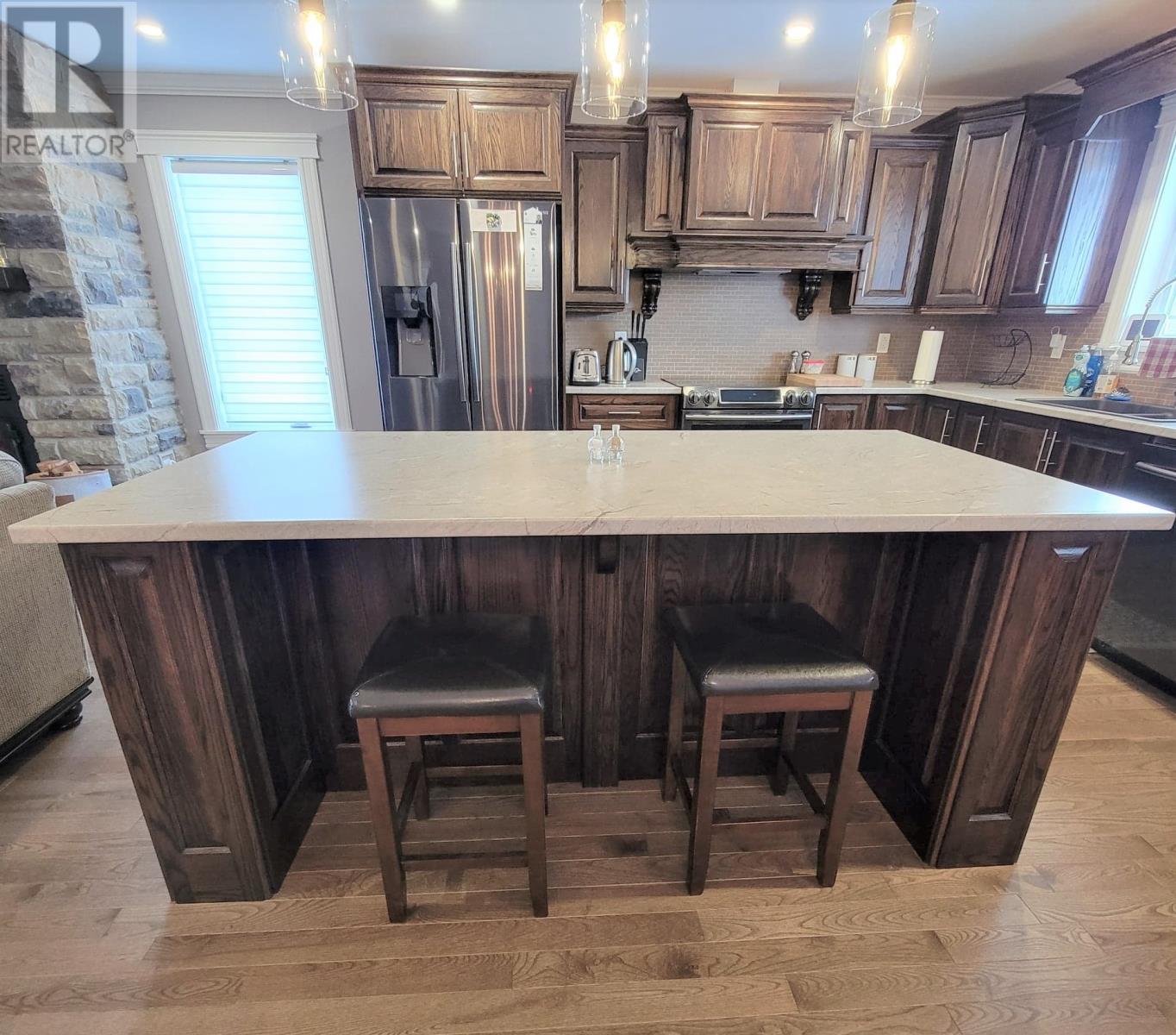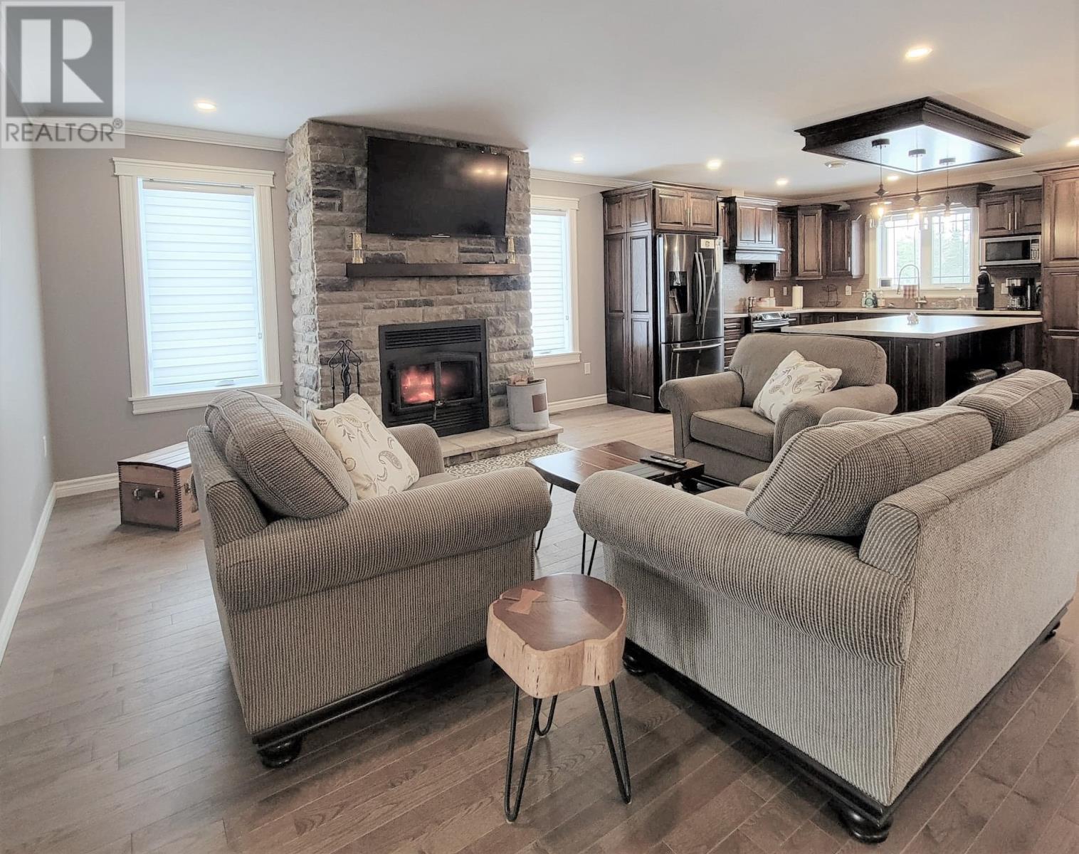 33 Harvey Wight Crescent is located in one of Pasadena's sought after Subdivision's. This 3 yr old, 3000sq ft, 3 bdrms, 3 bath, fully developed bungalow is looking for a new owner. Main floor features open concept main area with efficient wood burning fireplace with a vent system to heat your basement, custom kitchen with S/S appliances & island, dining area with access to a covered deck, large master bdrm with lighted tray ceiling(remote controlled for different colors) & 5pc ensuite with walk in closet, main bath and 2nd bdrm. Developed lower level features large family room, bar area, 3rd bdrm, full bath, hobby room, storage room, & walk out mud/utility room. If the 20x24 in-house garage is not enough, there is a 20x36 detached garage with a wood stove & wood storage area. The grounds are nicely landscaped with loads of paved parking, a firepit & a garden shed. Some extra features include hardwood floors, soft closing cabinets, built in bar fridge, duo heating system, main floor laundry, & composite decking front & rear. This location is great for the outdoor enthusiast as you can leave from your back yard to snowmobile, hike, or side by side and hook up to the trails and the groom trails in the winter months . You are within walking distance from the Local High School ,Recreation Center , Play Ground & other amenities in town. Don't miss out on this one!! (id:22211)