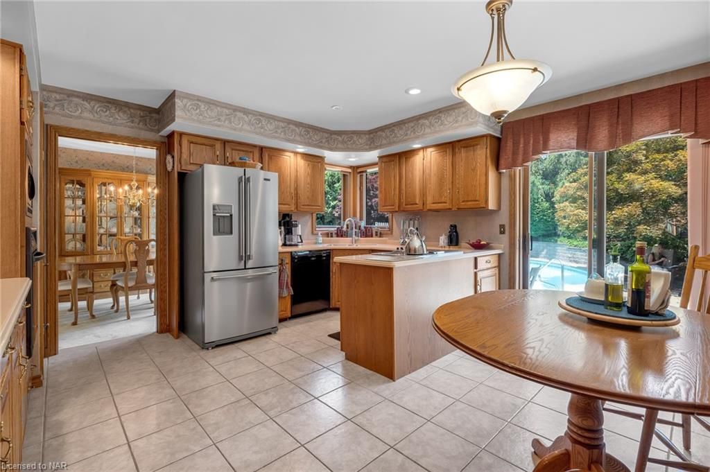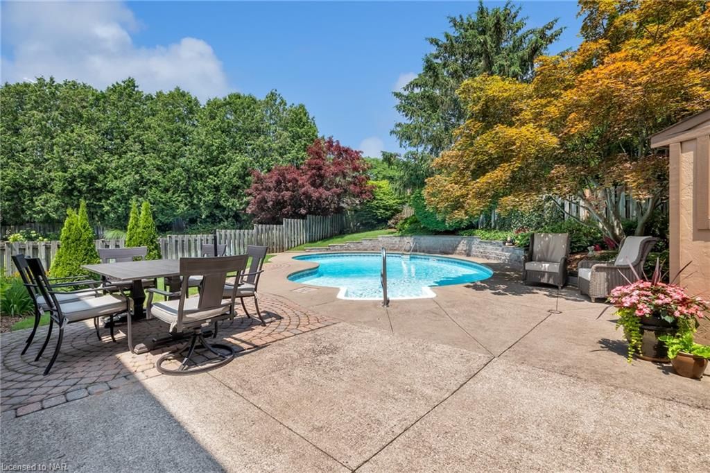 Welcome to 15 Kathy Court! This 4 bedroom, 4 bathroom 2 Storey home with an oasis of a backyard is the one you have been waiting for! Nestled in a quiet court setting and surrounded by mature trees, this home offers an unbelievable amount of serenity. Step inside to find a large formal Living room, formal dining room with a view of the gorgeous backyard, a spacious eat in kitchen with oak cabinets, a 2 piece bathroom, main floor mud/laundry room and an incredibly warm and inviting family room complete with gas fireplace and rich wood built-in cabinetry. The second floor offers a large primary bedroom with it's own private ensuite bathroom, 3 additional bedrooms, another full 4 piece bathroom and hardwood flooring throughout. The home's basement has been finished to include a large rec room with bar, a 2 piece bathroom and plenty of storage/workshop space. Open the sliding door from the kitchen and step into the backyard to find a stunning in ground pool surrounded by lush green lawns(with inground sprinkler system!) and landscaping - this is the yard you will never want to leave! Front windows replaced in 2023.