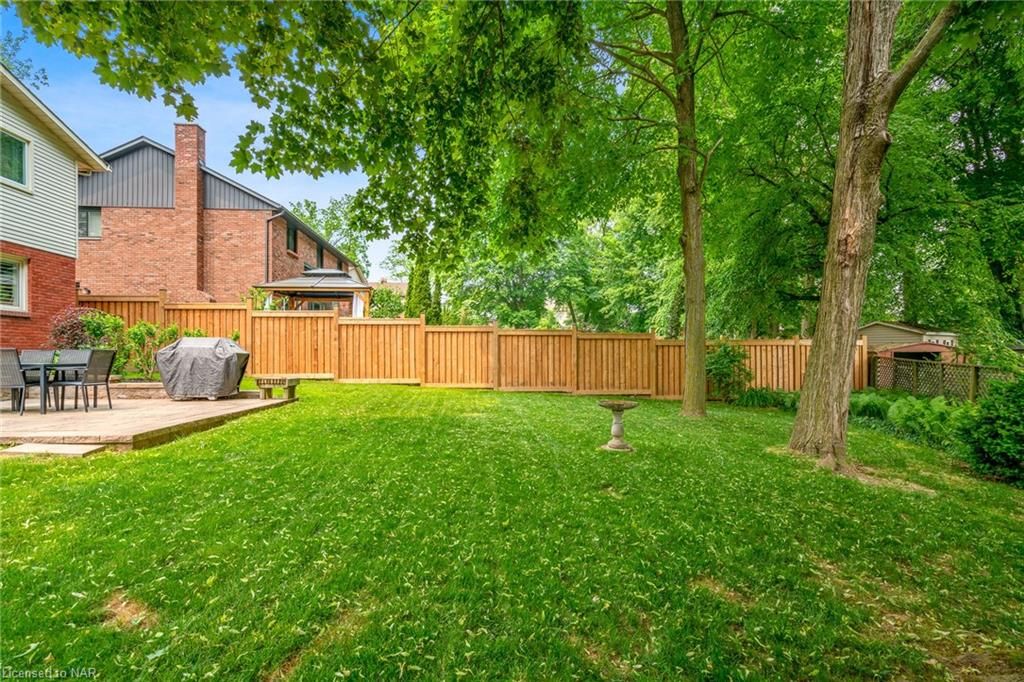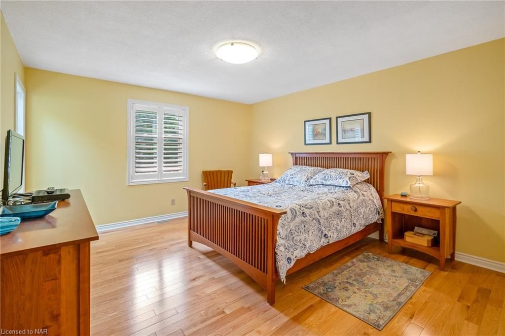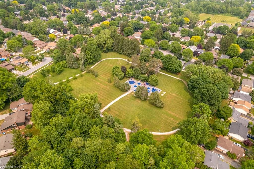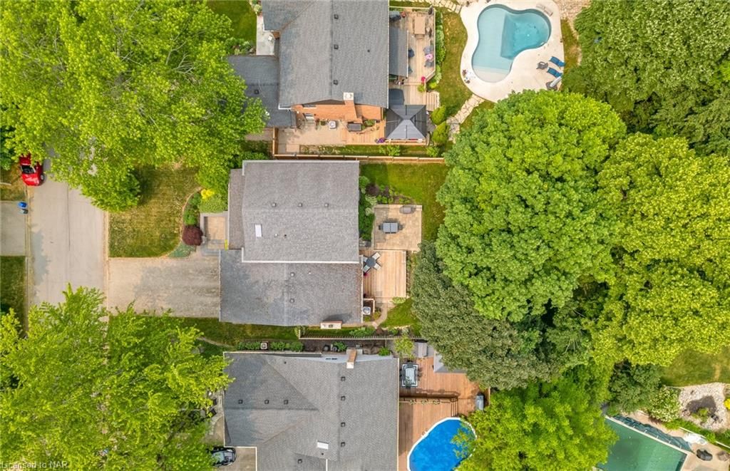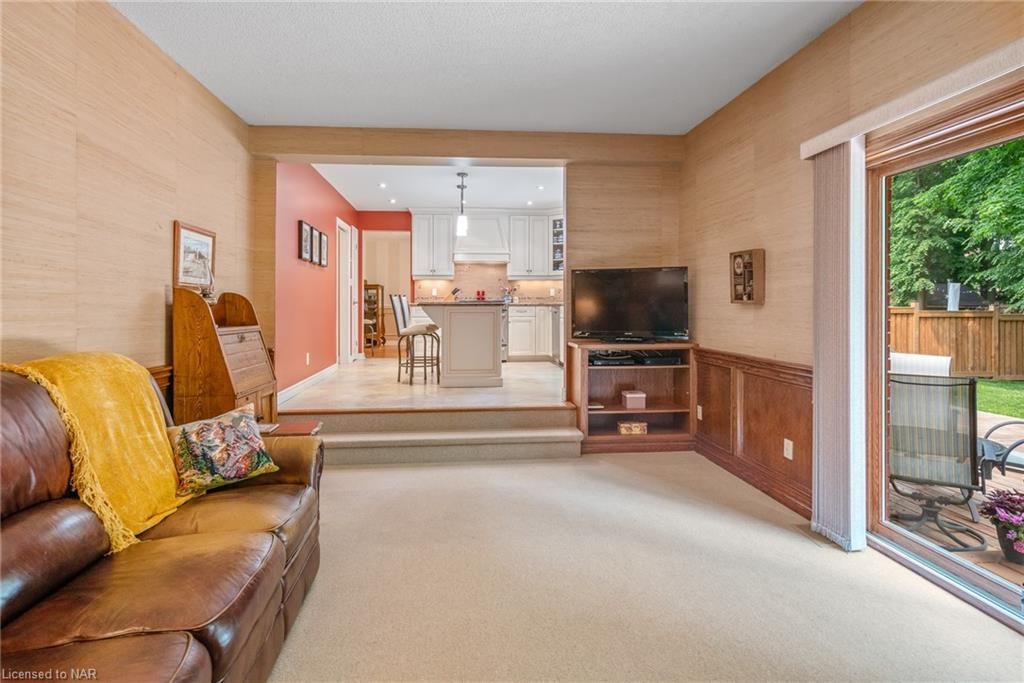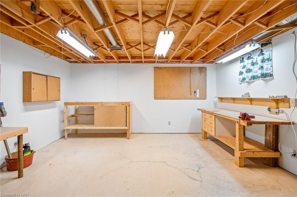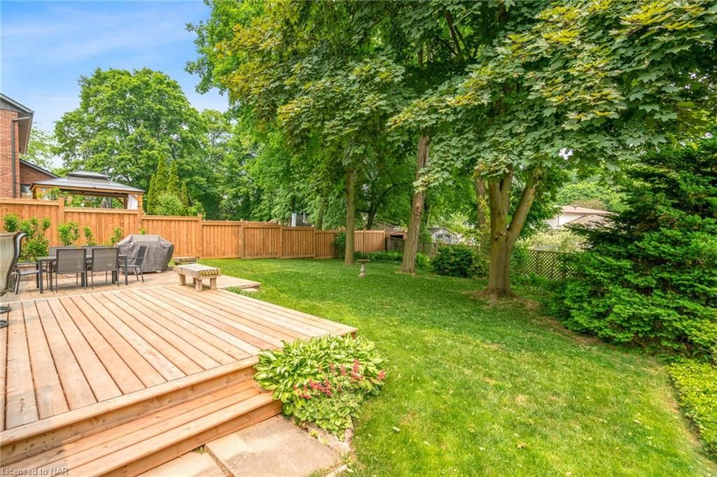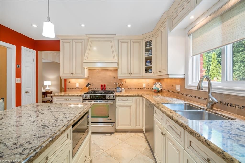 Located on a quiet street surrounded by mature trees in the wonderful community of Fonthill. Entering the home you get a sense of how well this home has been cared for. The gleaming hardwood floors in the living and dining room are in excellent shape. Kitchen cabinets finished in white with distress design are complemented by quartz countertops and tiled backsplash. The island has room for a little breakfast bar and serves as the prep station for cooking on the stainless-steel gas stove. Off the kitchen is a cozy sunken living room with wood fireplace and sliding door to the backyard. The upstairs boasts 3 large bedrooms with a 4 piece bath. The primary bedroom has its own 3 piece ensuite. Basement contains 1 bed, a sitting area, workshop with benches and a large furnace/storage area with shelving. Upgrades in the last 10-12 years include flooring, kitchen, ensuite, furnace, A/C and gutter guards. All the windows and shingles have also been replaced in the past 15 years.