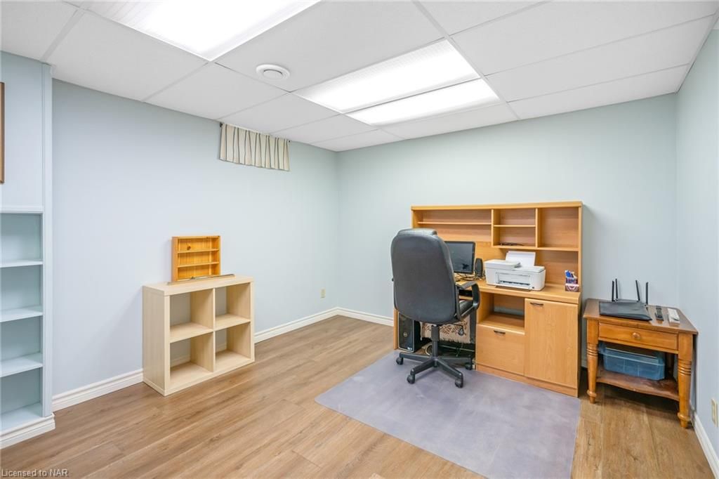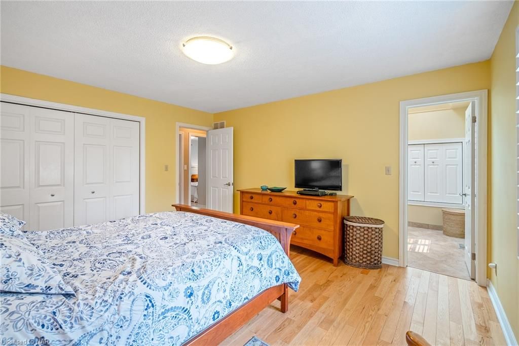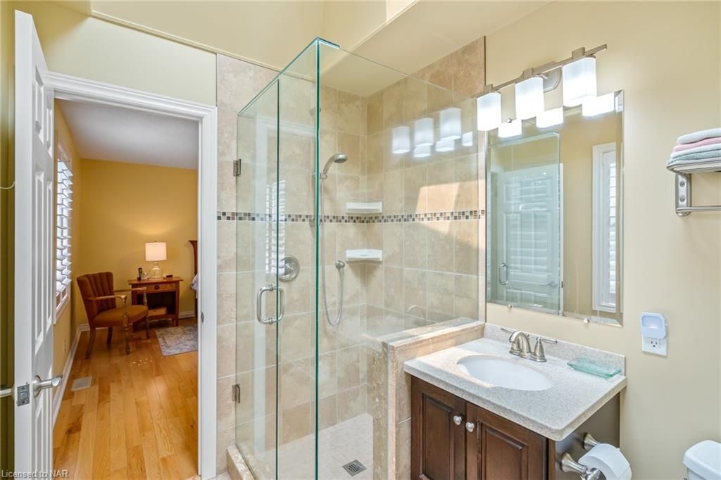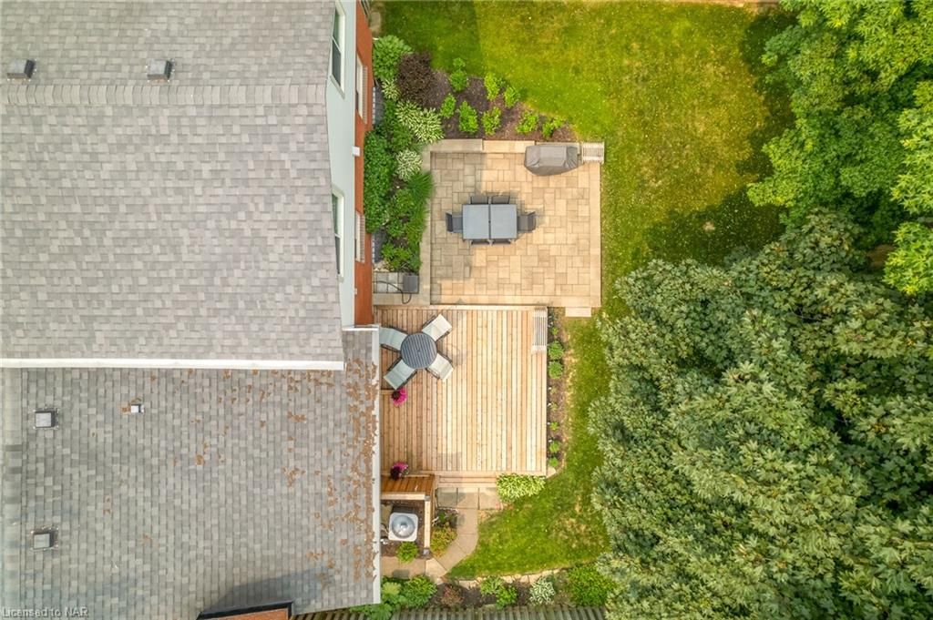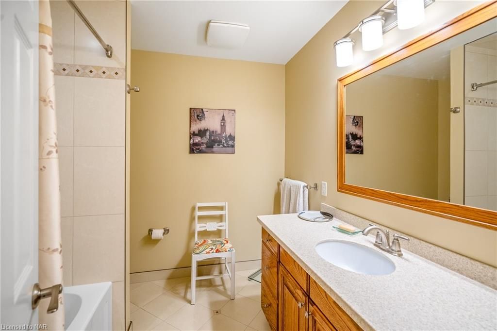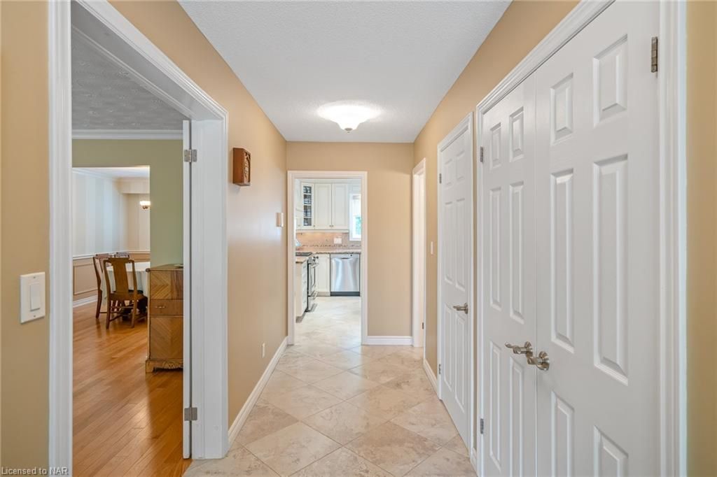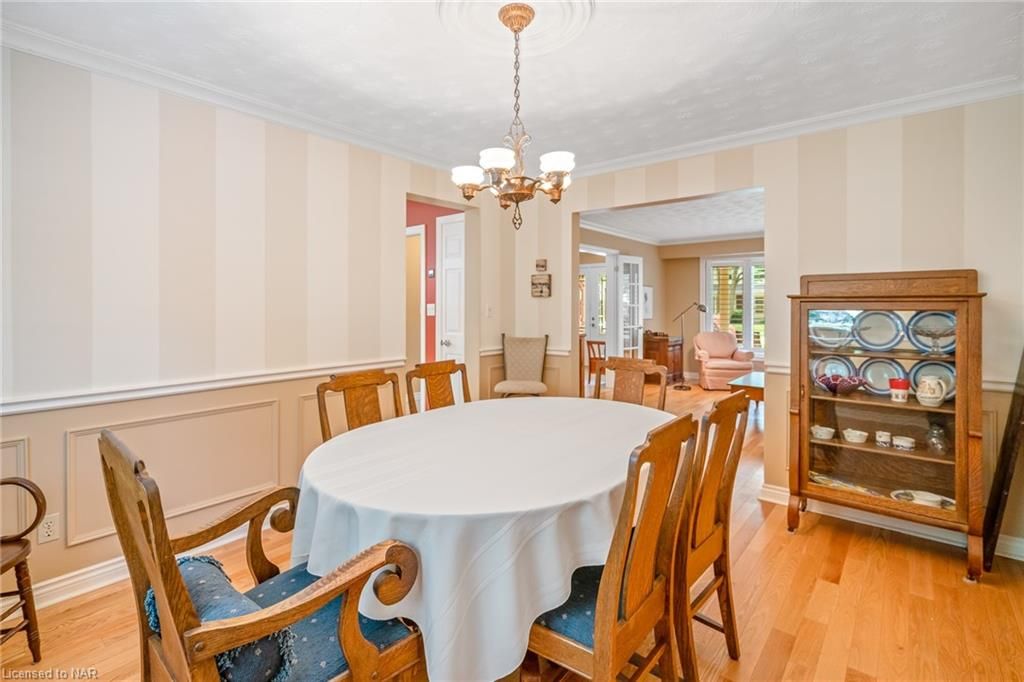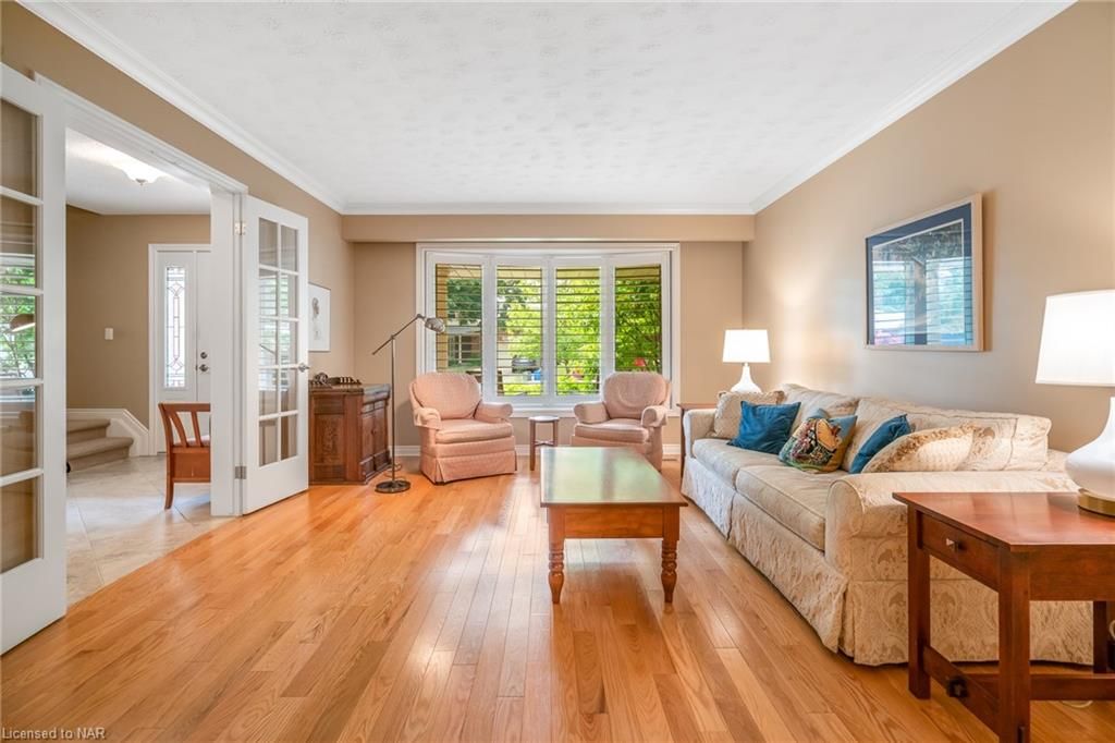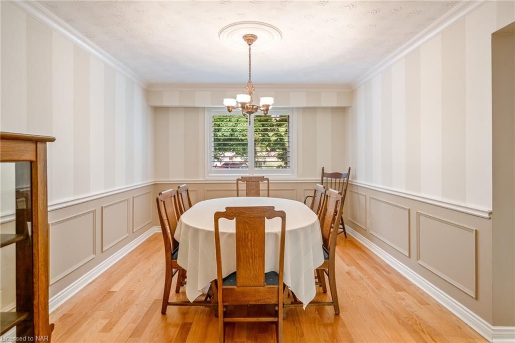 Located on a quiet street surrounded by mature trees in the wonderful community of Fonthill. Entering the home you get a sense of how well this home has been cared for. The gleaming hardwood floors in the living and dining room are in excellent shape. Kitchen cabinets finished in white with distress design are complemented by quartz countertops and tiled backsplash. The island has room for a little breakfast bar and serves as the prep station for cooking on the stainless-steel gas stove. Off the kitchen is a cozy sunken living room with wood fireplace and sliding door to the backyard. The upstairs boasts 3 large bedrooms with a 4 piece bath. The primary bedroom has its own 3 piece ensuite. Basement contains 1 bed, a sitting area, workshop with benches and a large furnace/storage area with shelving. Upgrades in the last 10-12 years include flooring, kitchen, ensuite, furnace, A/C and gutter guards. All the windows and shingles have also been replaced in the past 15 years.