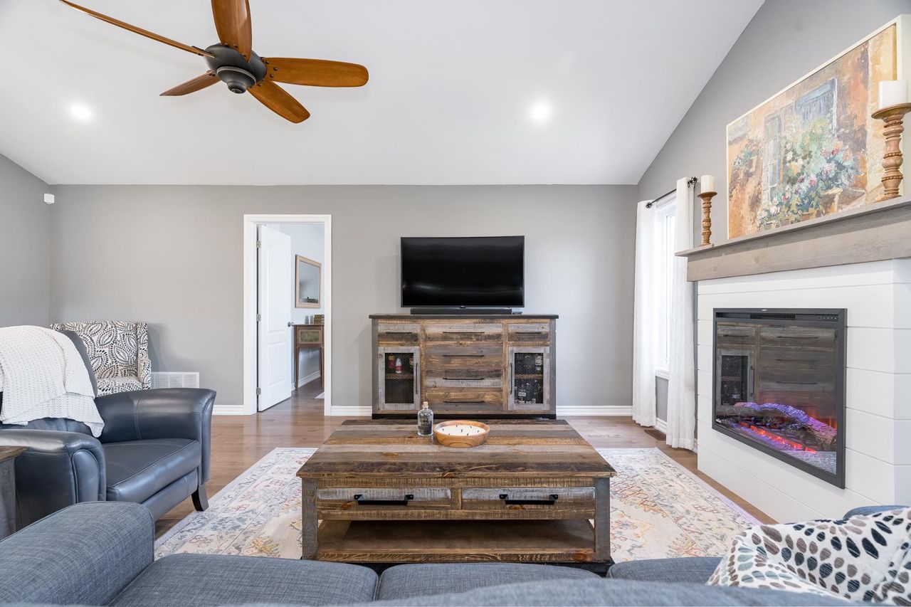 Hardwood Floor Cathedral Ceiling Electric Fireplace