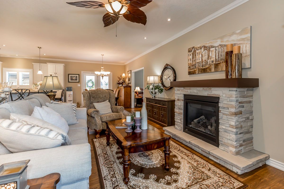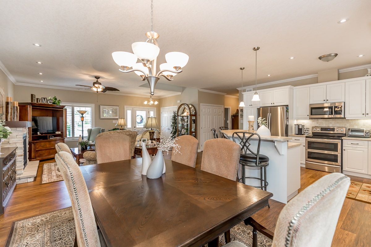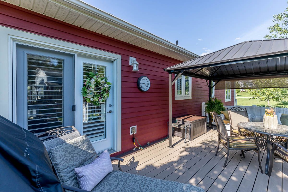 Adult Community - Land lease with Parkbridge. This amazing two-bed, two-bath home has everything you need on one level. Open concept, great room, with centrally located gas fireplace, upgraded kitchen with double pantry, center island, under counter lighting, all allowing for amazing entertaining. Extra features included, spacious master with walk-in closet, with a 3 piece ensuite, main floor laundry, attached garage with inside entry, main floor den and office, F/A gas furnace, and A/C. Underground sprinkler system, walk-out to back deck with gazebo and ample living space, and beautiful perennial gardens. This is a must see! Maintenance free living at its best. Monthly maintenance fee is $704.70. Includes snow removal, lawn care, and window cleaning x2.Leased Land Fee: $704.70