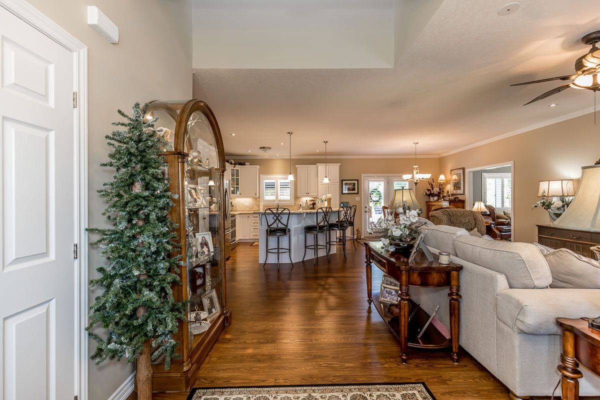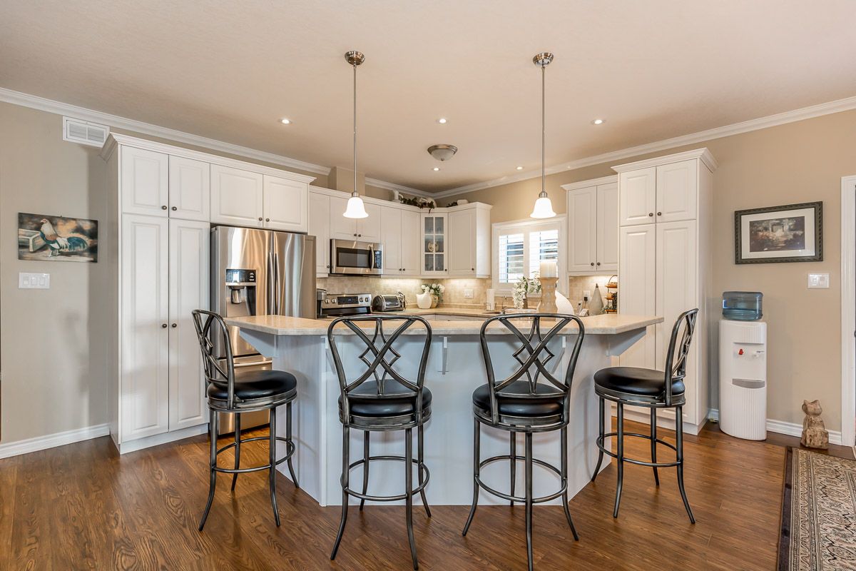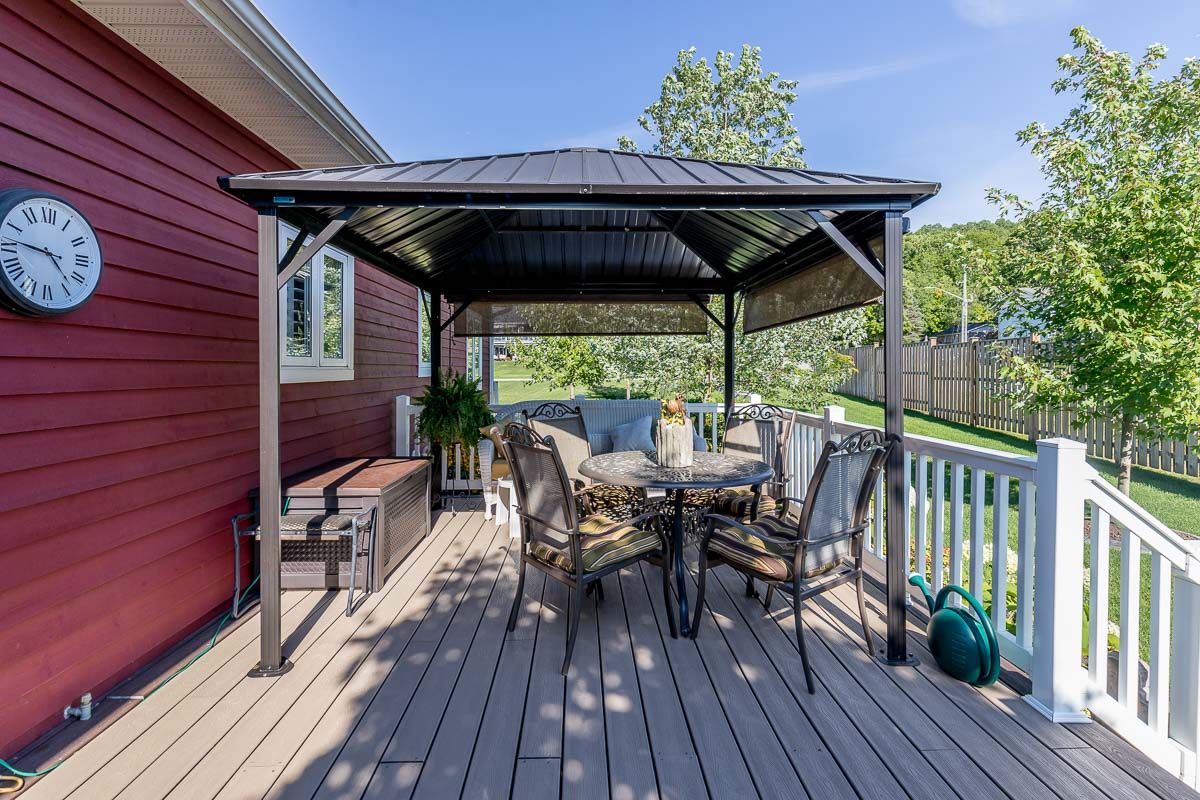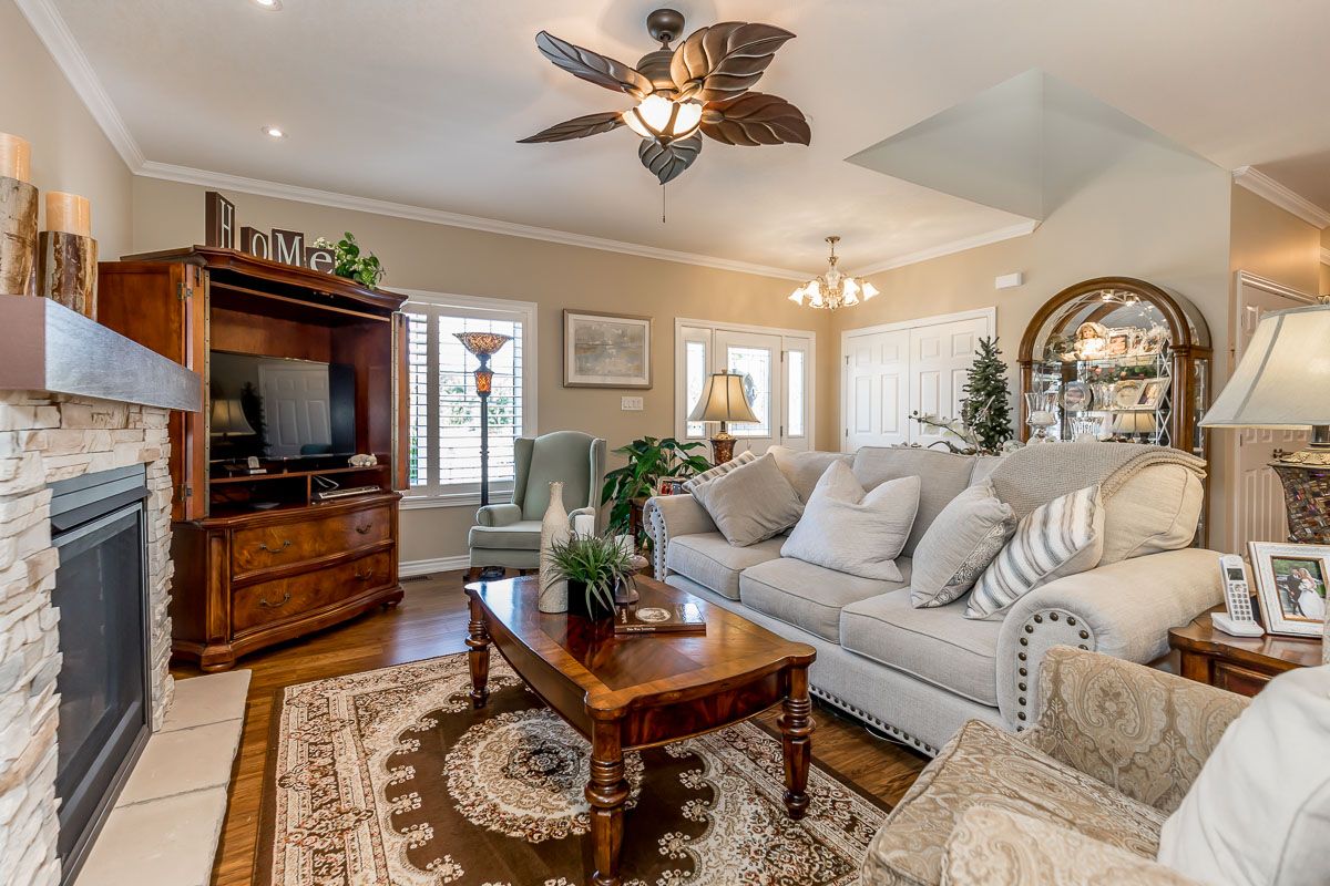 Adult Community - Land lease with Parkbridge. This amazing two-bed, two-bath home has everything you need on one level. Open concept, great room, with centrally located gas fireplace, upgraded kitchen with double pantry, center island, under counter lighting, all allowing for amazing entertaining. Extra features included, spacious master with walk-in closet, with a 3 piece ensuite, main floor laundry, attached garage with inside entry, main floor den and office, F/A gas furnace, and A/C. Underground sprinkler system, walk-out to back deck with gazebo and ample living space, and beautiful perennial gardens. This is a must see! Maintenance free living at its best. Monthly maintenance fee is $704.70. Includes snow removal, lawn care, and window cleaning x2.Leased Land Fee: $704.70