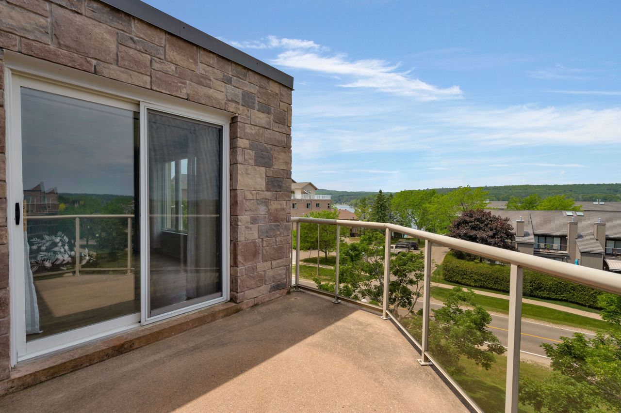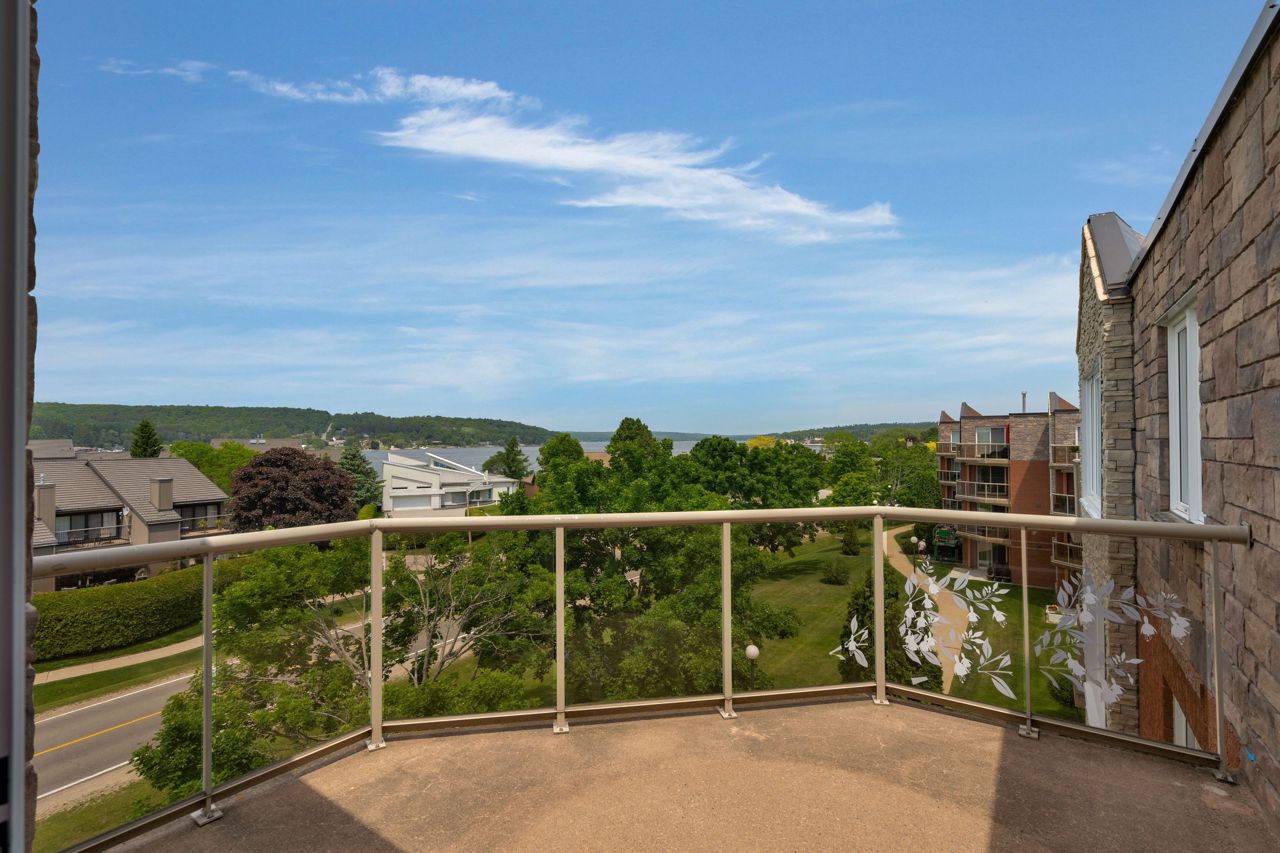 Enjoy this top floor condo with stunning panoramic views of beautiful Georgian Bay. This 2 bedroom 2 bath unit provides an open floor plan with spacious living! Perfect for year round or seasonal residents with maintenance free condo living. Large primary bedroom complete with en-suite, kitchen with all appliances and windows to view Penetang Bay. Inclusive with condo purchase comes rooftop patio, laundry facilities in suite and secured locked door building entry. Close to the waterfront trail, marina and downtown amenities- This unit is ready to be enjoyed this summer season, so don't miss out!