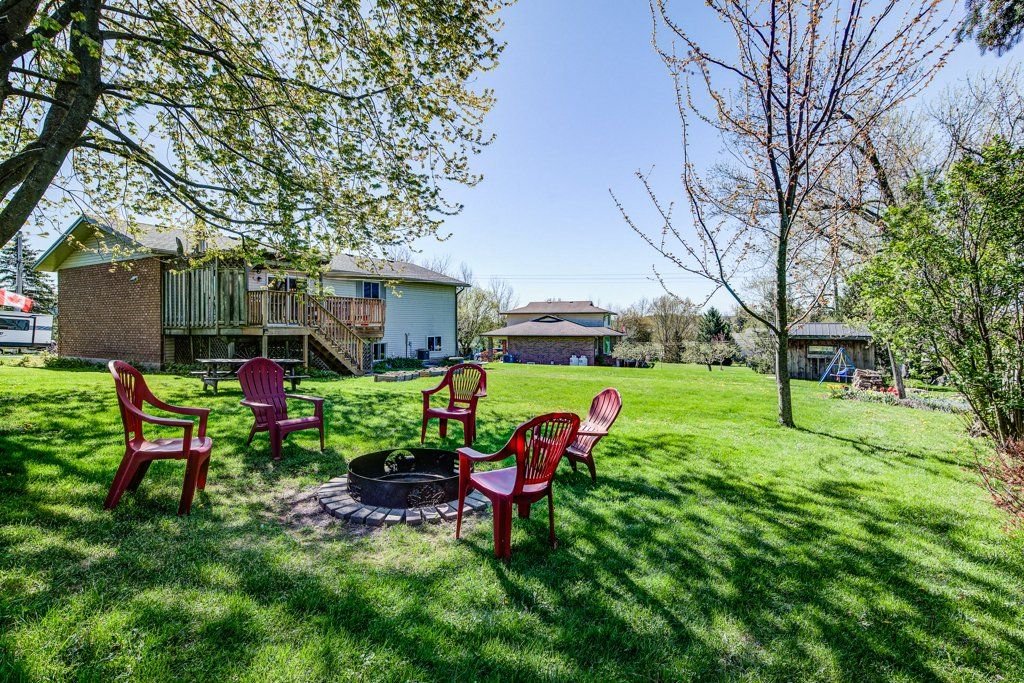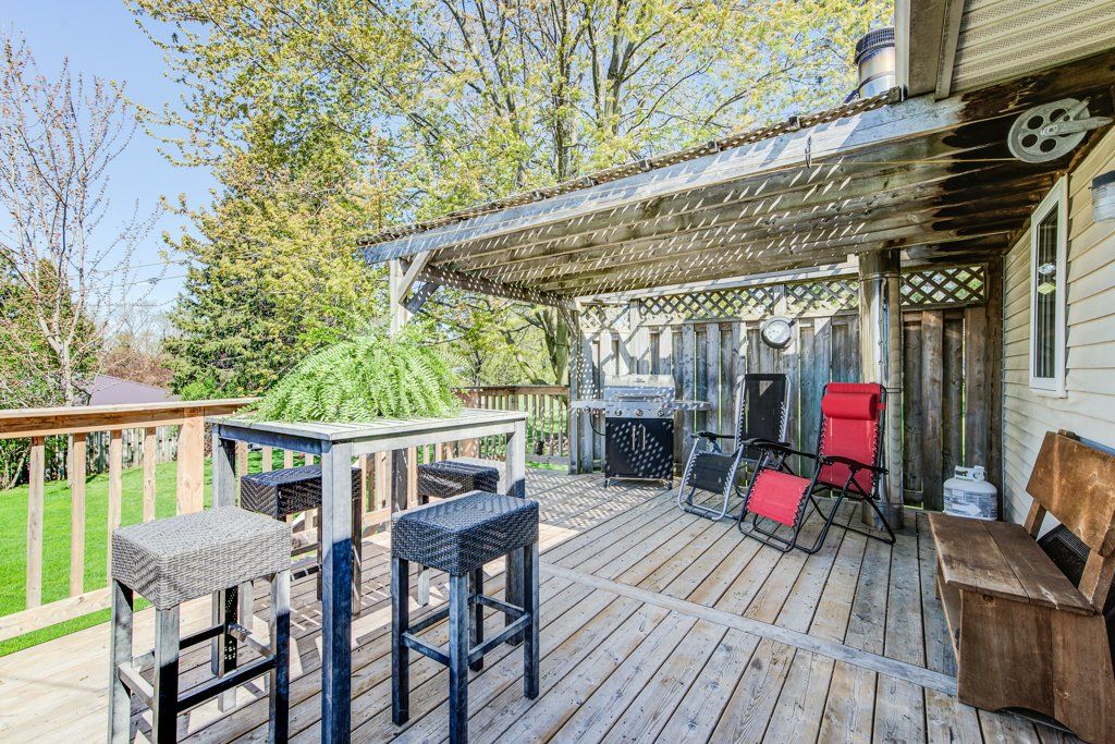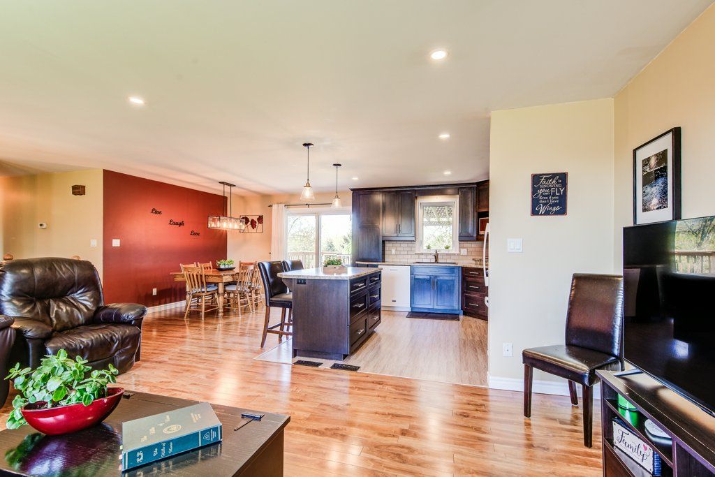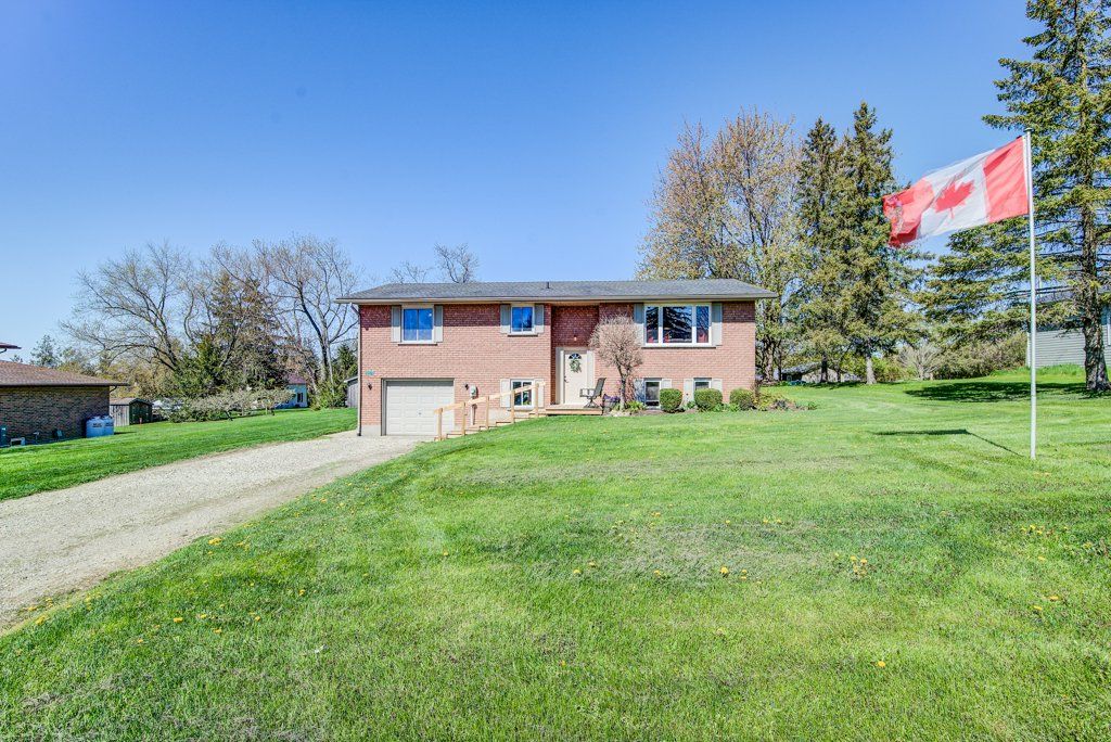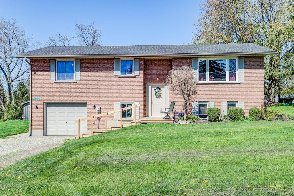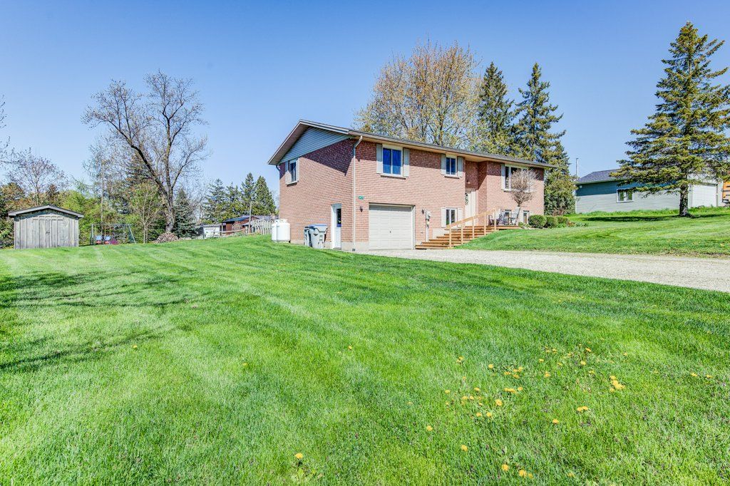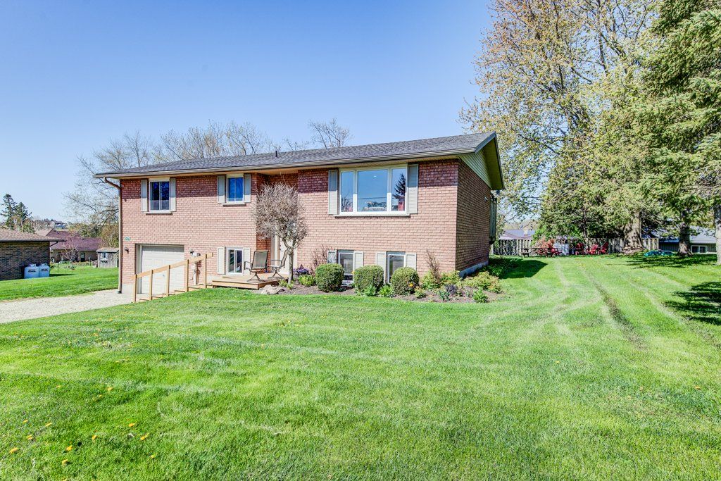 Country living at it finest, this charming raised bungalow sits at the end of a quiet cul-de-sac and offers the perfect blend of tranquility, space, and modern comfort, just outside the Waterloo Region. Situated on over a quarter-acre with an impressive 115 ft of frontage, this detached home delivers a serene rural vibe. At the front, you'll be greeted by a newly built front porch and stairs, talk about curb appeal. Step inside to a bright, open-concept layout featuring an updated kitchen, sleek pot lights, and a fully renovated main bathroom. Natural light pours in through the large picture window in the living area, creating a warm and inviting atmosphere. Step outside to the elevated rear deck, ideal for summer BBQs, then gather around the firepit for cozy family evenings under the stars. The expansive yard is perfect for outdoor activities and includes a large shed for added storage. Whether you're looking to unwind in nature or host the ultimate backyard gathering, this home offers it all in a peaceful country setting. Book your showing now before it's gone! Iron Filter (2021), Dishwasher (2018), Kitchen Reno (2018), Dryer (2017), Furnace & A/C (2014), Roof (2010), Septic Pumped (2020).