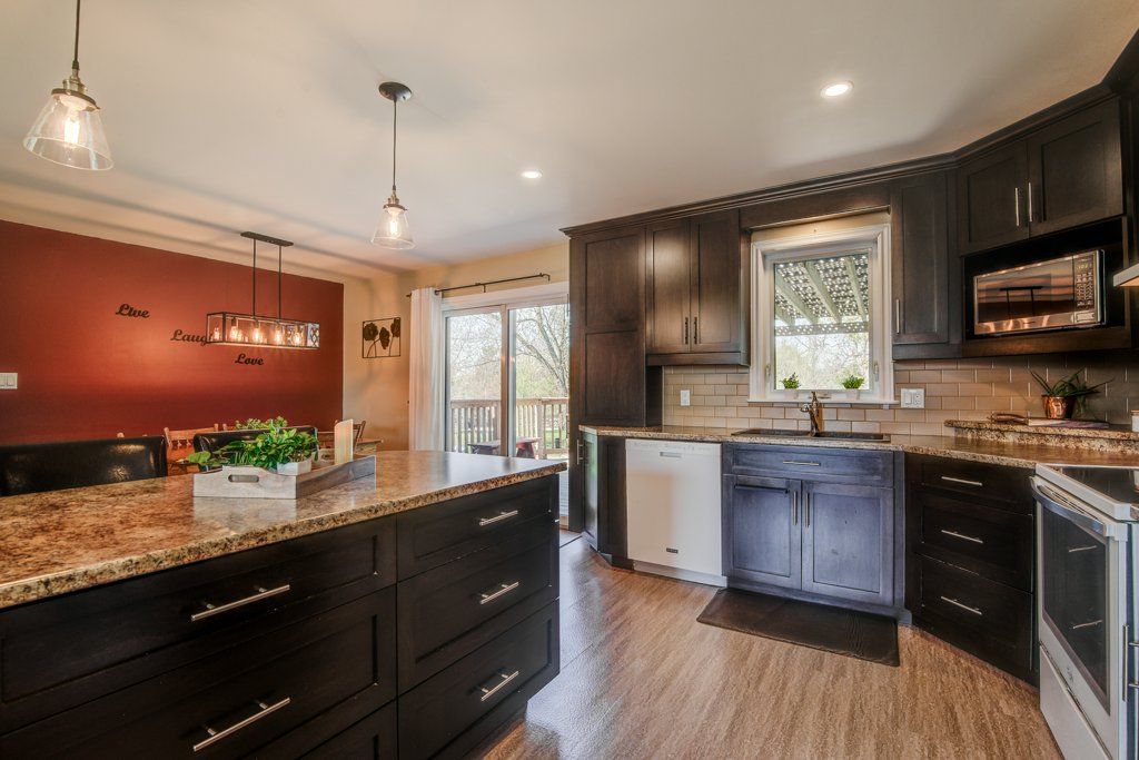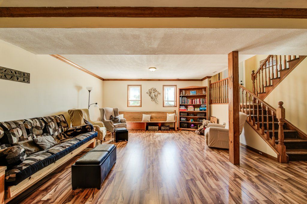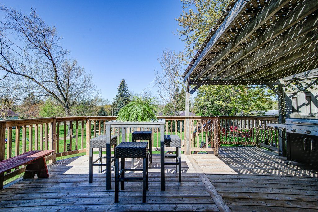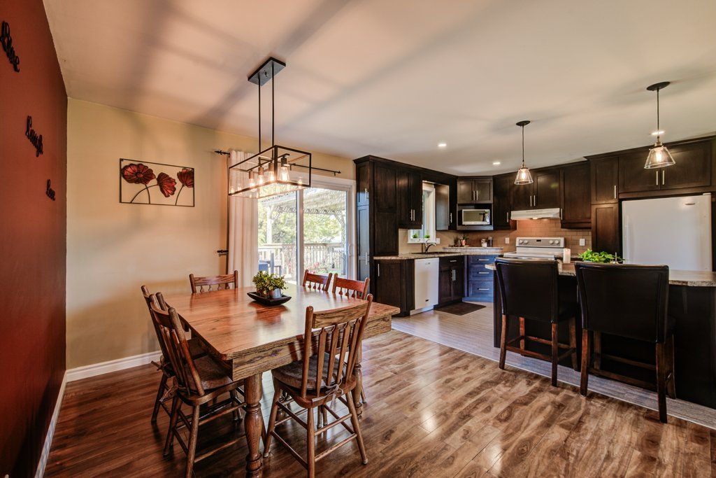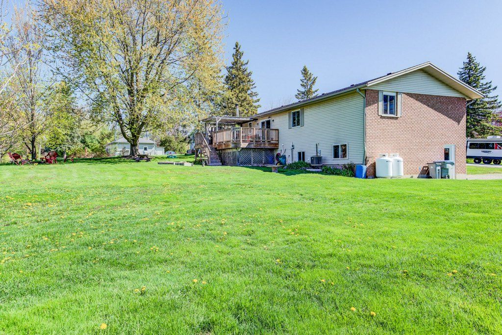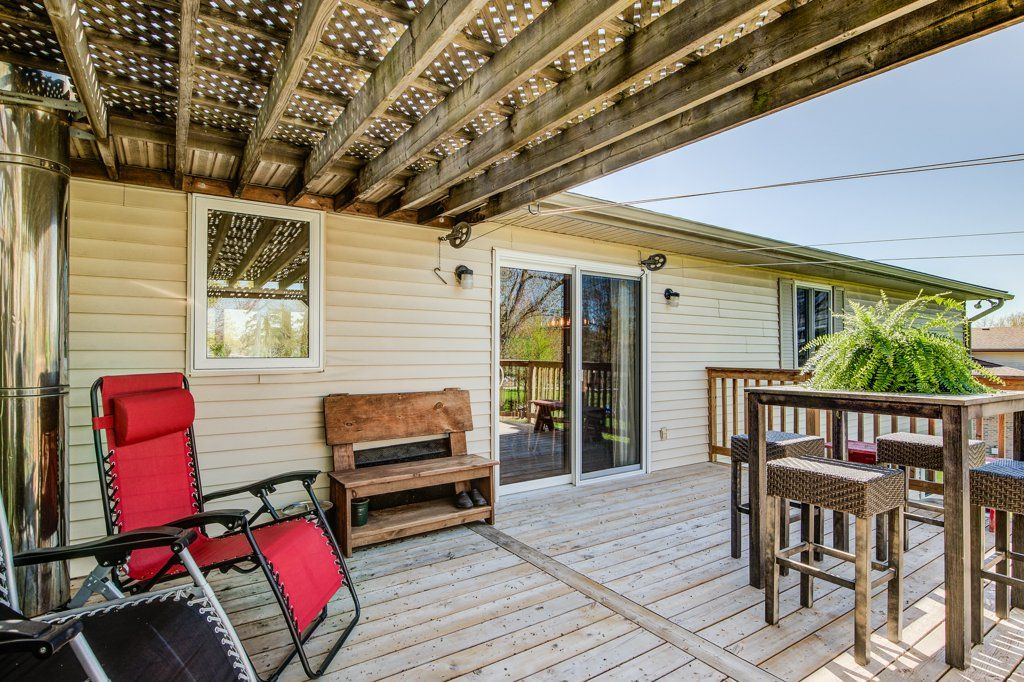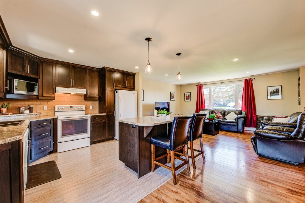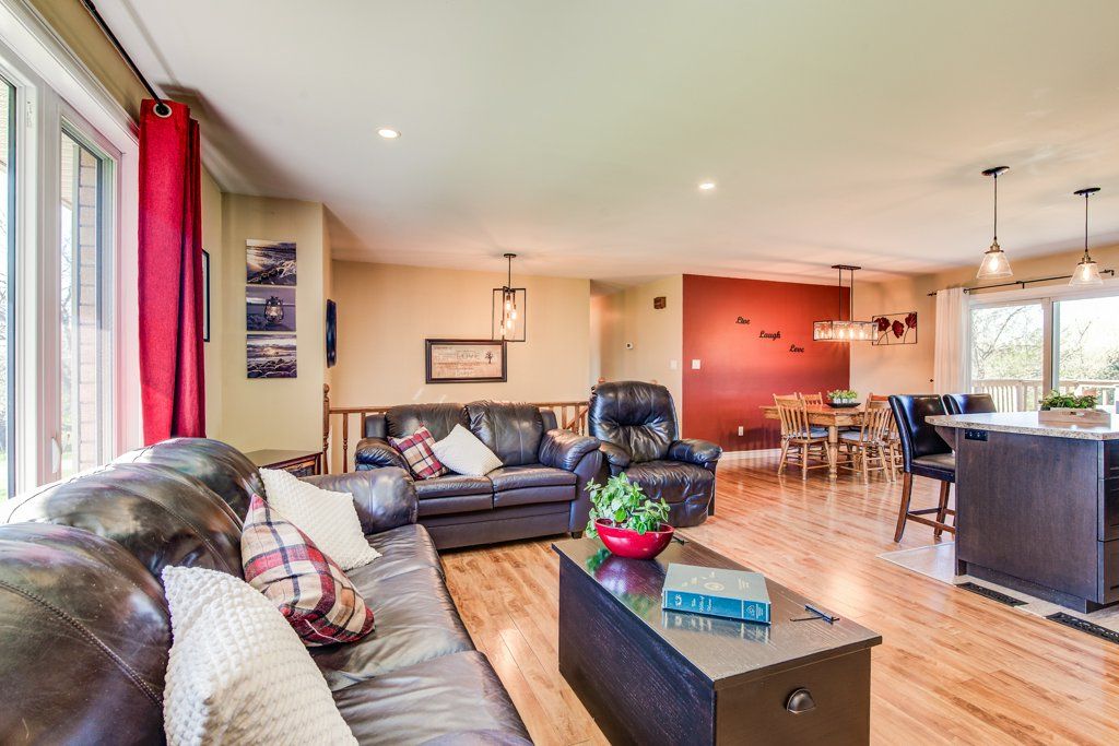 Country living at it finest, this charming raised bungalow sits at the end of a quiet cul-de-sac and offers the perfect blend of tranquility, space, and modern comfort, just outside the Waterloo Region. Situated on over a quarter-acre with an impressive 115 ft of frontage, this detached home delivers a serene rural vibe. At the front, you'll be greeted by a newly built front porch and stairs, talk about curb appeal. Step inside to a bright, open-concept layout featuring an updated kitchen, sleek pot lights, and a fully renovated main bathroom. Natural light pours in through the large picture window in the living area, creating a warm and inviting atmosphere. Step outside to the elevated rear deck, ideal for summer BBQs, then gather around the firepit for cozy family evenings under the stars. The expansive yard is perfect for outdoor activities and includes a large shed for added storage. Whether you're looking to unwind in nature or host the ultimate backyard gathering, this home offers it all in a peaceful country setting. Book your showing now before it's gone! Iron Filter (2021), Dishwasher (2018), Kitchen Reno (2018), Dryer (2017), Furnace & A/C (2014), Roof (2010), Septic Pumped (2020).