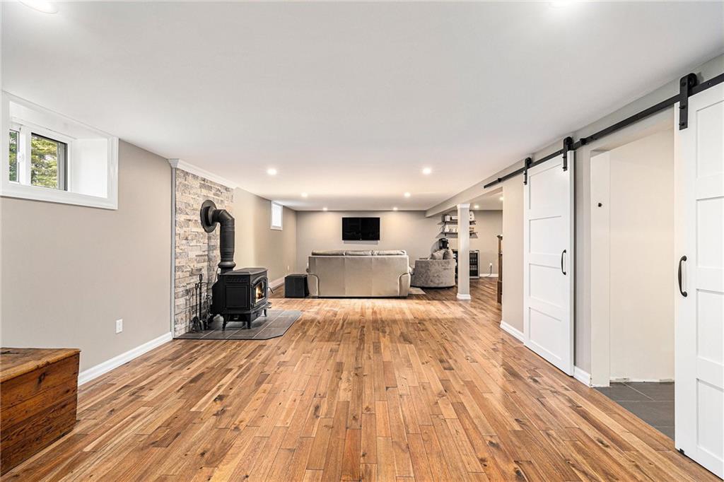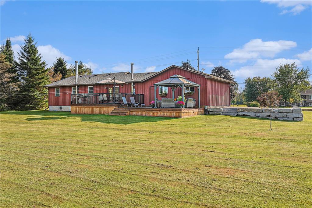 Welcome to 126 Code Road. This meticulously cared for 3 bedroom (+Den), 2 bathroom ranch style home is a rare gem in a quiet and peaceful setting. Step inside off the stunning timber frame porch into your brand new custom kitchen feat. wooden cabinetry, gleaming backsplash, quartz countertops and top of the line Frigidaire appliances. Large family room with garden doors leading to expansive rear decking. The primary bedroom offers a generous sized walk-in closet, 2 additional bedrooms, 4pc bathroom w/ convenient main floor laundry. Make your way down the custom staircase to the lower level. You will instantly be impressed with the hardwoods floors, cozy woodstove, large family rm, bar area (perfect for holiday entertaining) office w/ gorgeous stone accent wall, 3pc bathroom, and large home gym with walk-in closet. This turn-key home is everything you've been dreaming of. Enjoy evenings on the back patio. Private, highly efficient. School bus, curb-side pick up. Only 30 min. to Kanata.