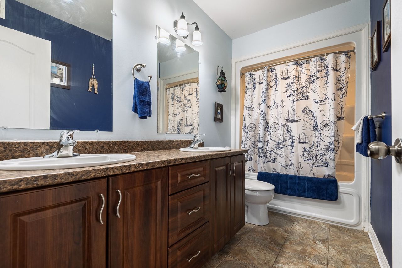 Welcome to this bright and welcoming split-entry home, ideally situated close to schools, parks, shopping, and more. With charming curb appeal, the home features a brick facade, mature perennial gardens, and a transom window above the front door that fills the entryway with natural light. Inside, the upper level offers a spacious open-concept layout thats perfect for both everyday living and entertaining. The living room flows seamlessly into the kitchen and dining area, where youll find a centre island, ample cabinetry, and sliding doors that lead out to the back deckan ideal spot for summer barbecues or morning coffee. The main floor also includes two well-sized bedrooms and a full bathroom with a double vanity for added convenience. The lower level features two additional bedrooms, a second full bathroom with a shower, and a cozy family room spaceperfect for teens, guests, or a home office setup. Step outside to enjoy the fully fenced backyard, complete with a storage shed for tools and a garden shed for your green thumb projects. The attached garage provides extra storage or parking, and the home is equipped with central air conditioning (installed in 2021) to keep you cool all summer long. Ideally located, this home is a fantastic opportunity for families, first-time buyers, or anyone looking for a great balance of space, comfort, and convenience..