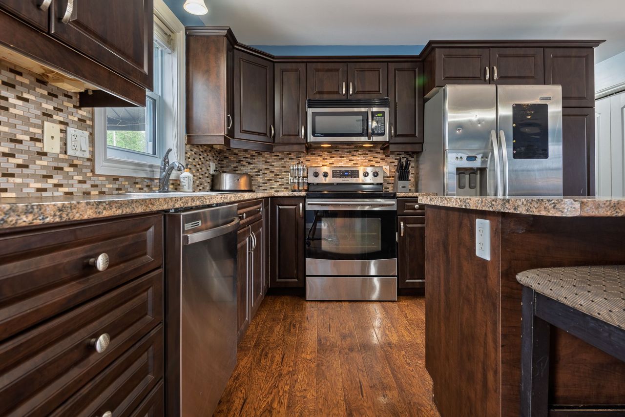 欢迎来到这座明亮而温馨的分层式住宅,地理位置优越,靠近学校、公园、商店等。这座住宅具有迷人的路边吸引力,拥有砖立面、成熟的多年生花园以及门前上方 transom 窗,为入口大厅带来充足的自然光线。室内,上层采用宽敞的开放式布局,非常适合日常居住和娱乐。起居室与厨房和餐厅区域无缝衔接,设有中央岛屿、充足的橱柜以及可通往后阳台的推拉门,是夏季烧烤或享用清晨咖啡的理想场所。主层还包括两个大小适中的卧室和一个配有双洗手池的全浴室,方便使用。下层设有额外的两个卧室、一个配有淋浴的第二个全浴室以及一个舒适的家庭活动室,非常适合青少年、客人或设置家庭办公室。走出去,您将可以欣赏到完全围栏的后院,其中包括一个储物棚用于存放工具,还有一个花园棚用于您的园艺项目。连接的 гараж 提供额外的存储空间或停车位,该住宅还配备了中央空调(于 2021 年安装),让您在整个夏天都保持凉爽。地理位置优越,这座住宅是家庭、首次购房者或任何寻求空间、舒适和便利性完美平衡的人的绝佳机会。