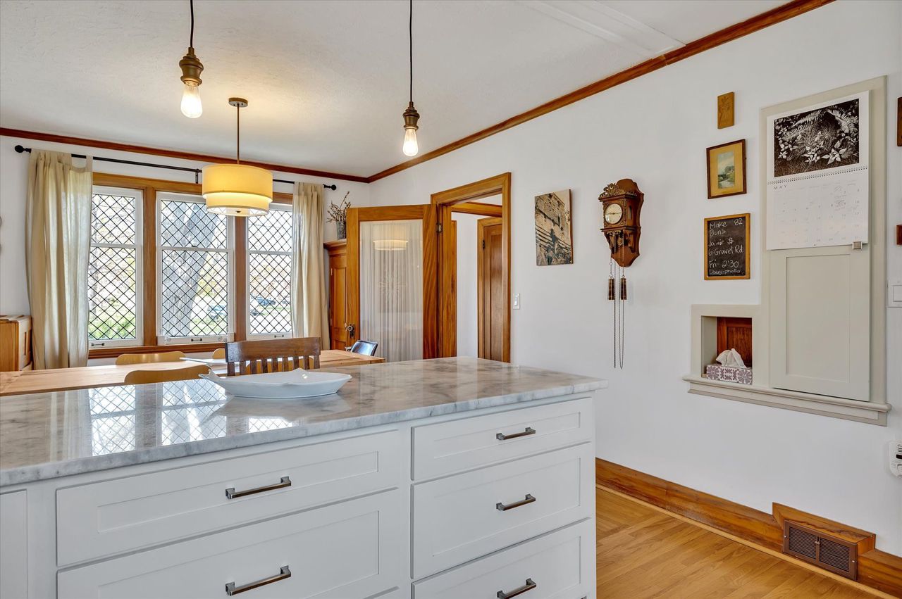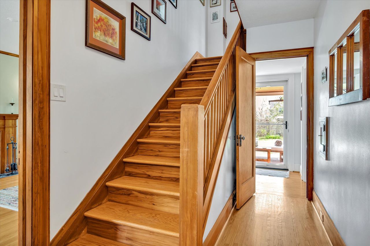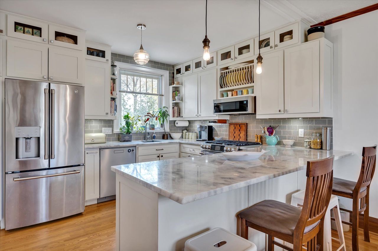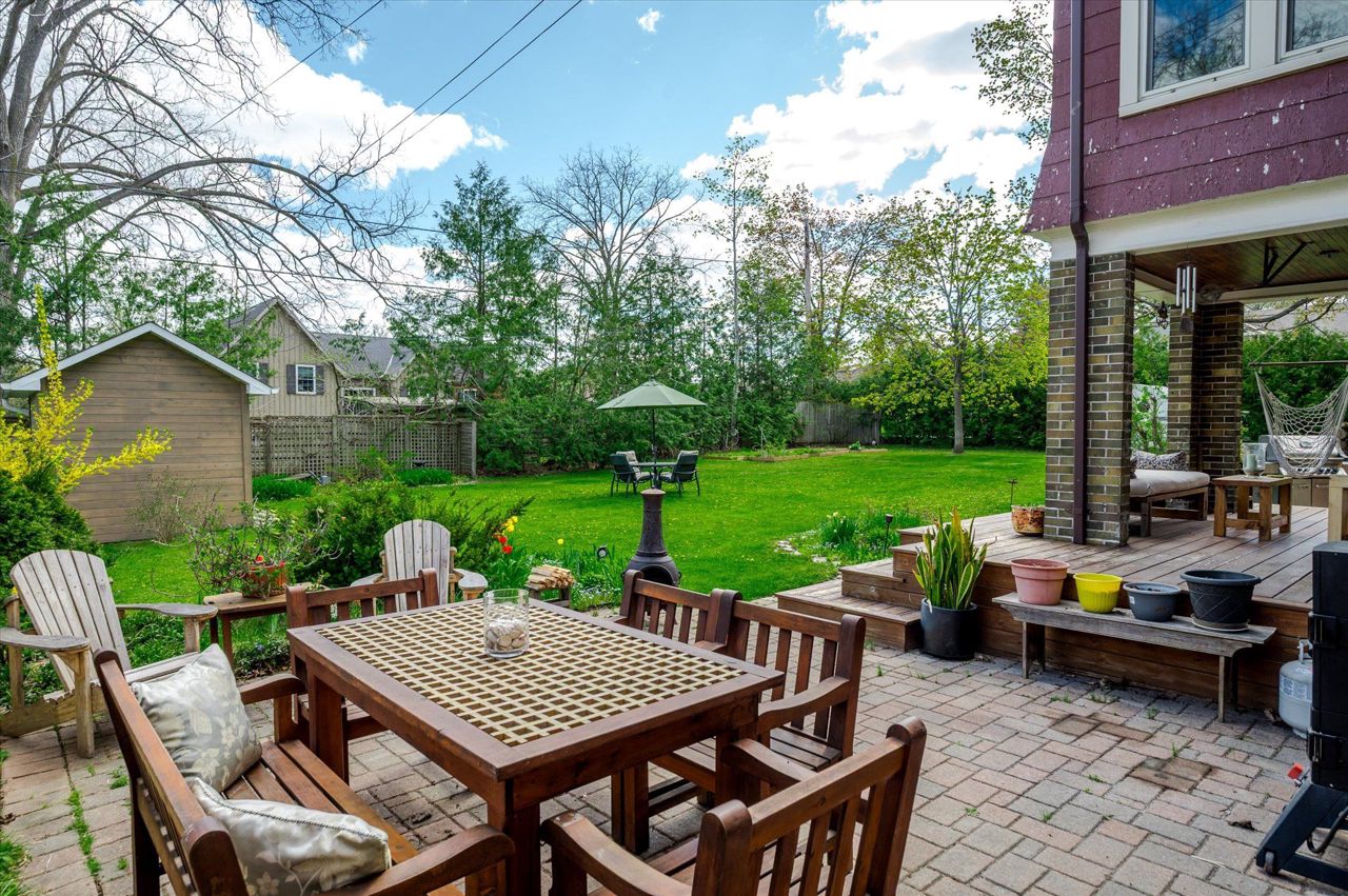 THIS HOUSE IS A MUST SEE ! OLD WORLD CHARM AND CHARACTER ENHANCED WITH SUBSTANTIAL UPDATING MAKES THIS A TRULY UNIQUE HOME. THIS 3 BERDROOM PLUS SUN ROOM /OFFICE, CENTRE HALL PLAN, BOASTS BEAUTIFUL HARDWOOD FLOORING ON MAIN AND UPPER LEVELS. NATURAL TRIM AND GORGEOUS STAIRCASE ATTEST TO CRAFTSMANSHIP FROM YESTERYEAR. TASTEFULLY UPDATED KITCHEN (202O) WITH BREAKFAST BAR AND GRANITE COUNTERTOPS OPENS TO THE SPACIOUS EATING AREA WITH LEADED GLASS WINDOWS, THE FORMAL LIVING ROOM FEATURES WOOD BURNING FIREPLACE, CUSTOM BOOK CASE WITH BENCH SEAT AND LEADED GLASS WINDOWS AS WELL. TASTEFUL PRIMARY WITH AMPLE SPACE FOR LARGE BEDROOM SUITE, COZY 3 SIDED SUNROOM OVERLOOKS THE REAR YARD AND MAKES FOR A WONDERFUL GET-A-WAY ROOM IDEAL FOR READING OR ENJOYING SOME SOLITUDE. THE LOWER LEVEL OFFERS A COZY REC ROOM WITH WET BAR, 2 PC BATH AND WORKSHOP/LAUNDRY. COVERED DECK JUST OFF THE KITCHEN AND LOWER PATIO MAKE THE BACK YARD OASIS A SOUGHT AFTER LOCATION TO UNWIND. NEWER 200 AMP BREAKER PANEL WITH ALL KNOB AND TUBE REMOVED IN 2019, ROOF RESHINGLED IN 2022, SINGLE CAR GARAGE WITH TRI-FOLD DOOR AT REAR ALLOWING EASY ACCESS TO YARD.