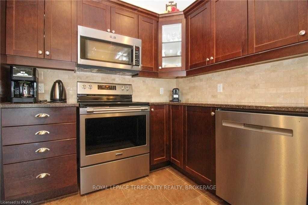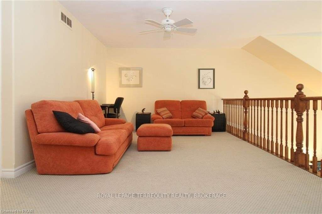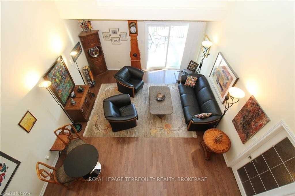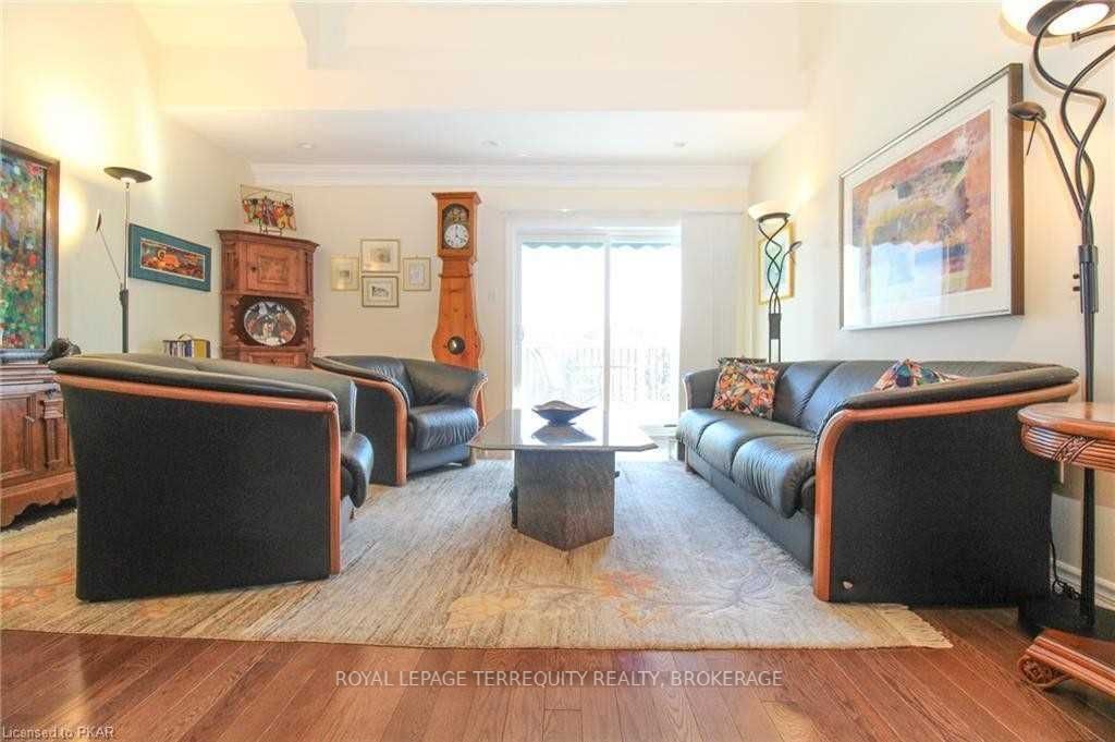 Rare opportunity to own one of 5 loft condos on a tranquil pond in the heart of Peterborough. Prized location overlooks Harper Park’s 148-acres of serene natural habitat, lush greenery & wildlife! Birder’s paradise, you can relish bird songs & watch deer while enjoying south-facing pastoral views over pond, fountains & gazebo. Over 2,400 sq ft spans 3 levels, including private loft with bedroom, lounge & private bath, ensuring guests will feel comfortable.Open-concept! Vaulted ceiling. Hardwood. Large deck to enjoy surroundings. Chef’s kitchen: stainless & quartz. Main level master, 3 piece en-suite & walk-in closet. Flex room for dining, bedroom or den. Lower family room opens to terrace.