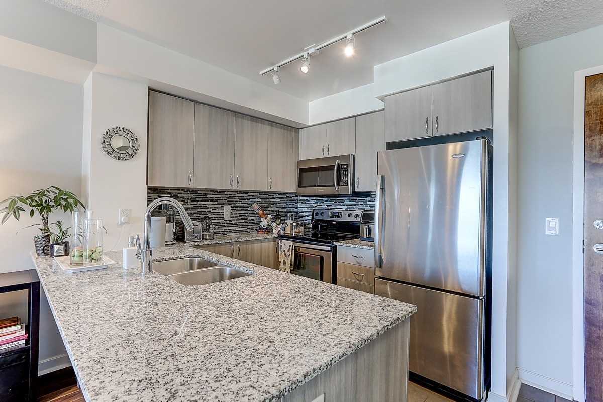 Gorgeous 618 Sf 1 Bed + 1 Den Condo, In One Of Pickering's Best Condo Buildings San Francisco By The Bay! Ideal Location With 1 Parking & 1 Locker, Living By The Shores Of Lake Ontario! Short Walk To Go Station And Lake Ontario. Modern Kitchen With Open Concept Breakfast Bar, Walk Out To Balcony! Granite Counters With Mosaic Backsplash. 24Hr Concierge, Full Amenities, Sauna, Pool, Exercise Room & Party Room. Minutes To 401/407, Go Station, Pickering Town Centre, Restaurants &More! Great For End-Users & Investors. Absolutely Move-In Ready Condition!