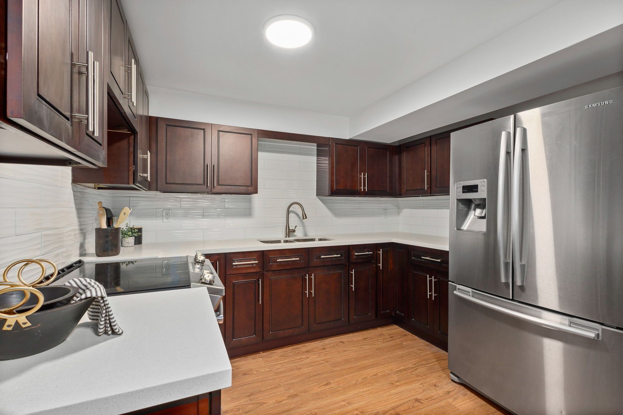 walkout basement with an in-law suite. The kitchen features quartz countertops, a herringbone