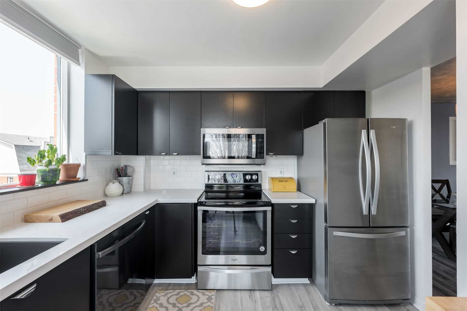 Welcome To This Rarely Offered 2 Br Corner Suite Situated In Downtown Pickering. Modern Finishes Throughout: Quartz Counters, Ceramic Subway Tiles, Mdf Cabinets, Luxury Vinyl, Graphite Sink, Custom Barn Doors, Live Edge Counter, Concrete Ceilings, & Much More! In Close Proximity To 401, Go, Ptc, Transit, Shopping, Rec, Durham Live. Steps To Proposed City Center (Art/Youth/Senior Centre, Hotel, Retail) Great Time To Invest & Live In This Growing Community! Included: Refrigerator(2018), Stove(2018), Dishwasher(2020), Microwave(2020), Stacked Steamed Washer & Dryer(2019), All Electrical Fixtures. Exclude: Window Coverings
