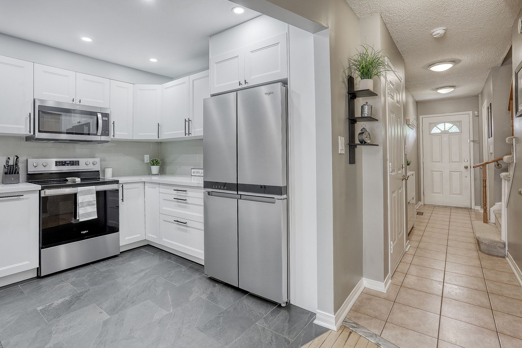 This Beautifully Maintained 3 Bedroom/3 Bathroom Townhome Is Waiting For You! All Areas Of The Home Show Care & Pride Of Ownership. Featuring A Fully Renovated Kitchen With Stunning Quartz Countertops Along With Stainless Steel Appliances (2022). Bright, Spacious Master Bedroom With 4 Piece Ensuite. Finished Basement With a Kegerator station and a Cold Room. Recently Replaced Furnace (2020). Fully Fenced Backyard with a wide deck and stone floor Perfect For Entertaining. Playground right in front of the townhome! Excellent location Near Hwy 401, Go Station, Transit & Shopping.Don't miss the virtual tour and floor plans attached. Home Inspection Report and Status Certificate Available Upon Request.