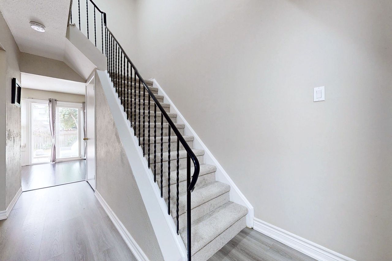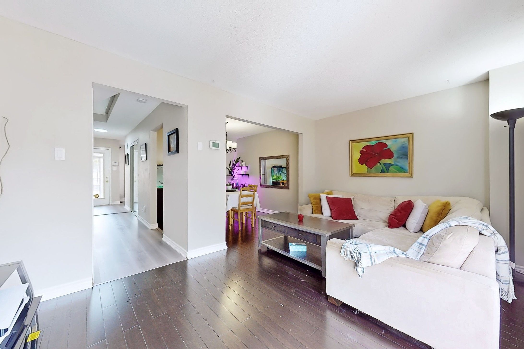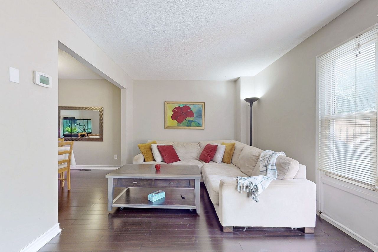 Great opportunity to move into the Liverpool City Centre Area close to Pickering Town Centre, Schools, Parks, Shopping, Restaurants, Cinema, GO Transit & 401. This 1318 sq.ft 3 Bedroom Link Detached Home has been freshly painted throughout, brand new carpets on the 2nd floor and stairwell. New vinyl flooring, updated kitchen counter, sink, faucet and backsplash in the Spacious Eat In Kitchen. Both Bathroom Vanities, Faucets, Toilets & Flooring have been newly replaced. Large Bedrooms. High Efficient Gas Furnace, Air Conditioner replaced in 2018. Bamboo Hardwood Floors in the Living & Dining Rooms. Newly landscaped front & rear yards with Interlock rear patio and front entrance. Private 6 foot fencing. Unspoiled basement awaits your finishing touches.Great starter home in move in condition.
