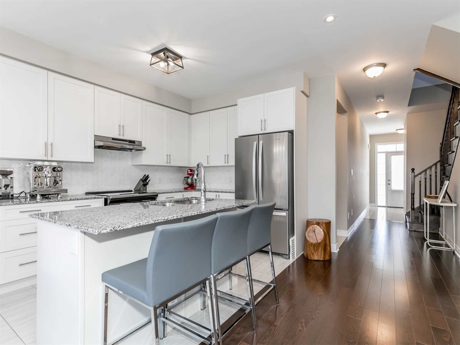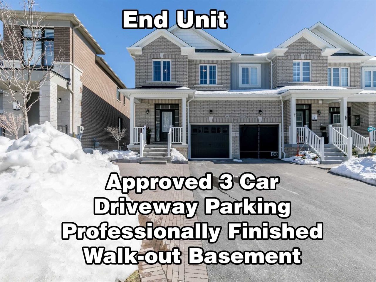 Meticulous, Contemporary Freehold Townhome End Unit With Newly Finished Stylish W/O Basement Located On Street With Single Family Homes. Amazing Driveway Expansion To Park 3 Cars On Driveway Approved By Minor Variance. Sun-Filled Walk-Out Basement Offers Kitchen With Quartz Countertops, Family Rm, 3 Pc Bath & Bedroom. Basement Upgrades Include B/I Surround Sound & Speakers, Laundry Facilities And Regular Double Door Entry Instead Of Sliding Doors. Smooth Ceilings Throughout Home. Just Minutes To Hwy 401, 407, Go Station, Seaton Hiking Trail, Pickering Golf Club, Pickering Town Centre, Smart Centre, Shops And All Amenities.All Electric Light Fixtures, All Window Coverings, Central Air, Central Vac, 1 Garage Door Opener, 2 Washers, 2 Dryers, 2 Dishwashers, 2 Fridge, 2 Stoves, Bi Microwave. Bbq Hook-Up, Upgraded To Walk-In Shower In Mstr.