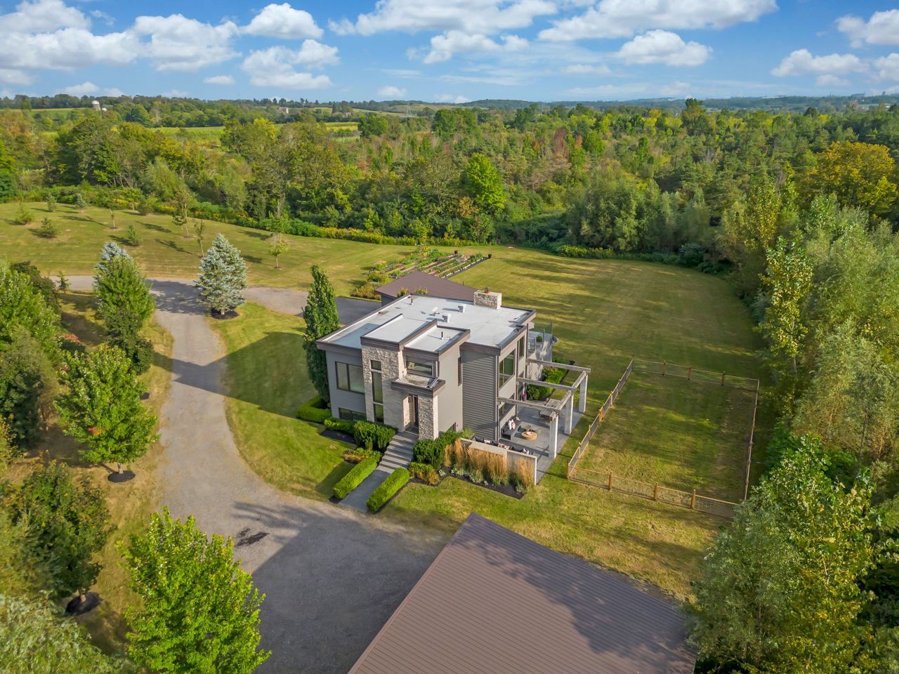 A Truly Secluded & Tranquil 10 Acre Property Boasting Sweeping Lawns, Aged Forests & Mesmerizing Countryside Views.Indulge In Private Sanctuary, Designed With The Blend Of Raw Elements With Contemporary & Warm Organic Touches.Stunning Open Main Floor One-Of-A Kind Chef's Kitchen With Bertazzoni Italian Propane Cooktop & Oven, Pot Filler, Bertazzoni Exhaust Hood & Fisher & Paykel Fridge, Black Marble Forest Counters, Centre Island & Backsplash With Solid Black Walnut Inlays.Bright Dining Area & Great Room With Wood Burning Fireplace With Natural Stone.Walk Out To Elevated South Facing Rare Brazilian Ipe Wood Deck Ideal For Outdoor Dining.Main Floor Primary Features Lavish 4-Pc Ensuite Bath, Lower Walkout Level W/ 2 Additional Beds, Full Bath, Spacious Open Rec Room & Separate Laundry Space.Abundant Natural Light Throughout W/ Lg Custom Windows, Detailed Hickory Wood Fl.Patio W/ Striking Exposed Concrete Pillars,Outdoor Fireplace a Secondary Seating Space Perfectly Suited for Gatherings.High Potential Heated & A/C 2 Car Garage With 3-Piece Bath Ideal For In Law Suite, Studio, Gym.Doug Fir Timber Framed Carport, Ample Storage Under Deck & Separate Outdoor Infrared Sauna. Prime Location Mins To 407 & 30 Mins To Downtown T.O.