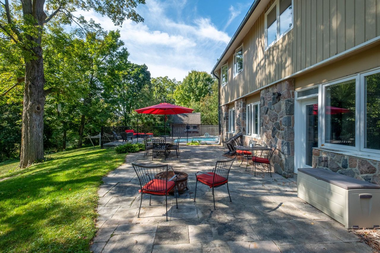 OPEN HOUSE 2-4 MONDAY OCT 9. Sunny South Exposursure 4052 s/f home shaded with Tall maples in Idyllic Hamlet of Whitevale. Features 9' ceilings ground floor & generous room sizes Throughout. Front entry from circular drive opens to Two levels of bright open living space. Living room w/ fireplace, dining room w/French Doors. Open chef's kitchen is equipped with soft close cabinets & multiple pot drawers, storage & large adjoining laundry/pantry. Office w/2pc & a primary bedroom w/4pc ensuite on main level. Upper floor features a Library with panelling salvaged from Chorley Park. A grand family room w/fireplace o/l pool & grounds. Plus Two primary BDRS, and 4th bedroom on Upper Level. Three Walk outs to stone patio, hot tub & separately fenced pool. Mud room with Direct Access to Double garage. An attached building with separate road entry is perfect for home retail use. HMR3 Zoning allows shop, Food/Bakery outlet, crafts etc. Gorgeous fenced private lot. Seaton Hiking trail steps away.Clay tile roof, Copper downspouts on house, Hot tub, inground pool & equipment, pool table. Garden shed, large auxiliary parking for motor home etc. Hot tub & pool heater working fine but "as is". High speed Fibre internet