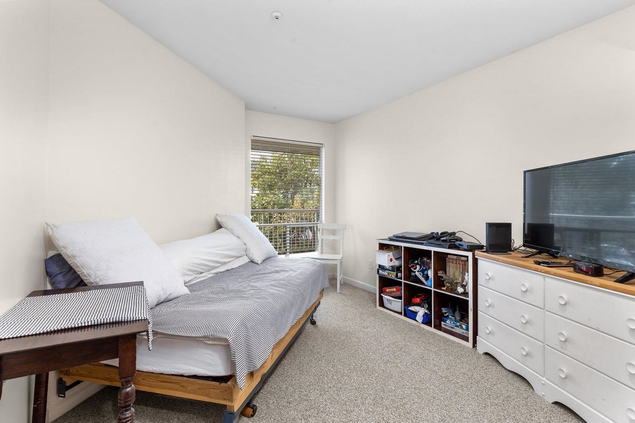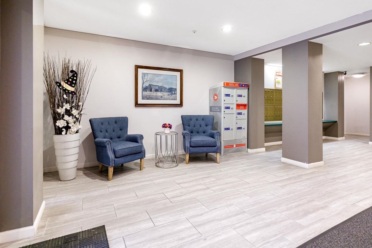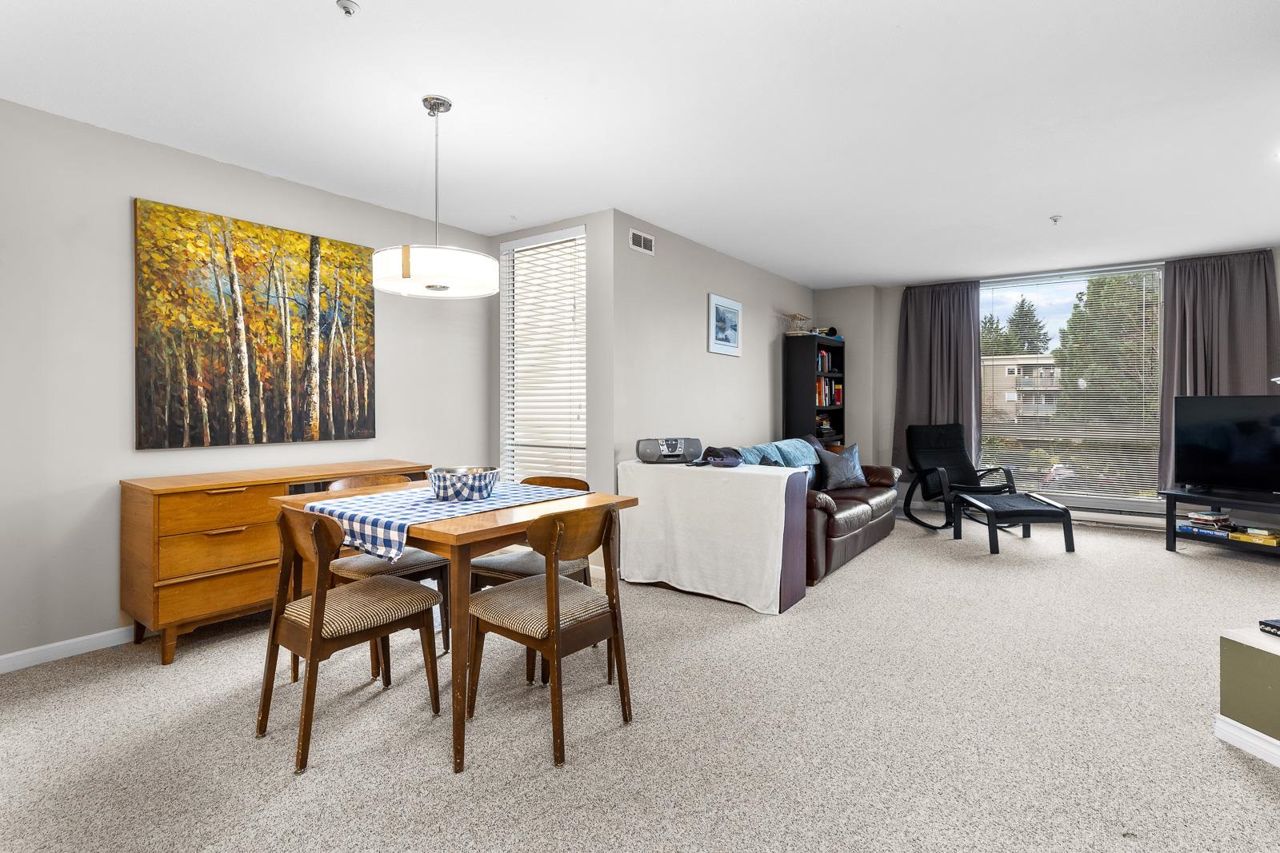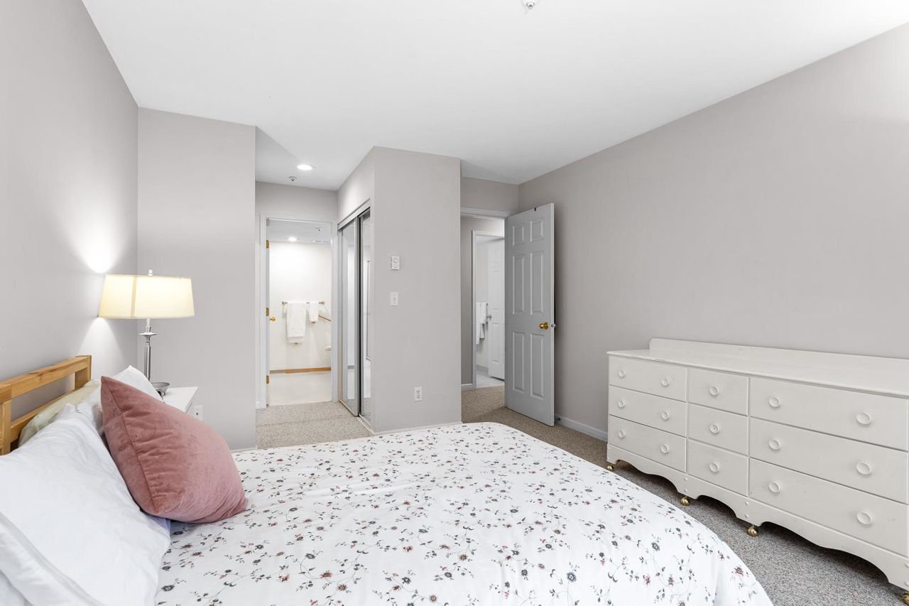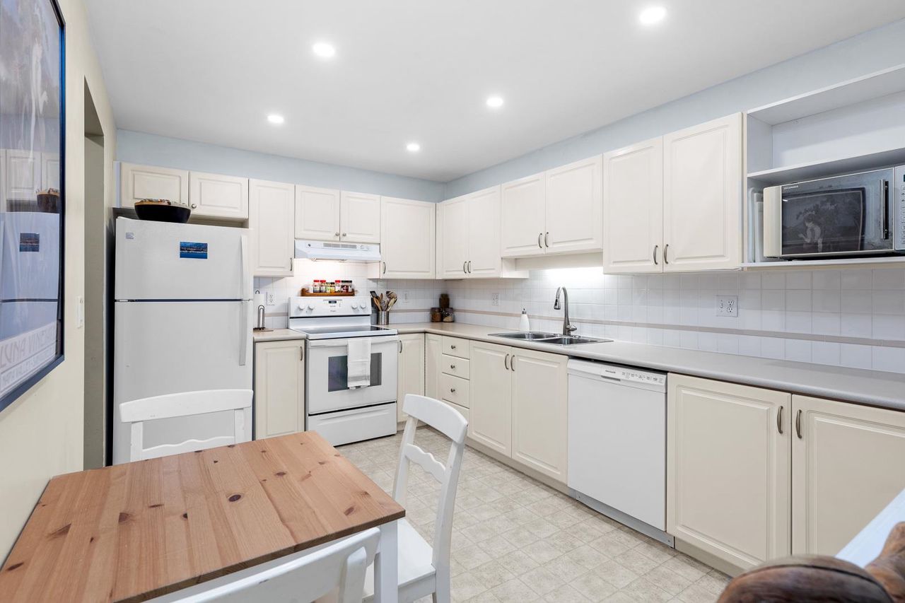 Nestled in the Heart of Pitt Meadows, this is Edgewood Manor. A 2 bed 2 bath with over 1100 sq/ft of living space. Bright & spacious kitchen with white cabinetry, LED potlights & white tile backsplash. The open concept allows you to entertain with separate dining & living areas. Living room boasts fresh carpet throughout with oversize windows & access to large west-facing deck. Warm up in the winter months with your white-tiled gas fireplace. Primary bedroom is King bed compatible with 4-pce walk-in ensuite, including separate bath & shower. Second bed & bath with side by side laundry complete this amazing condo. Walkability is amazing with its proximity to schools, shopping & trails. This is one you won't want to miss! Book your private showing today.