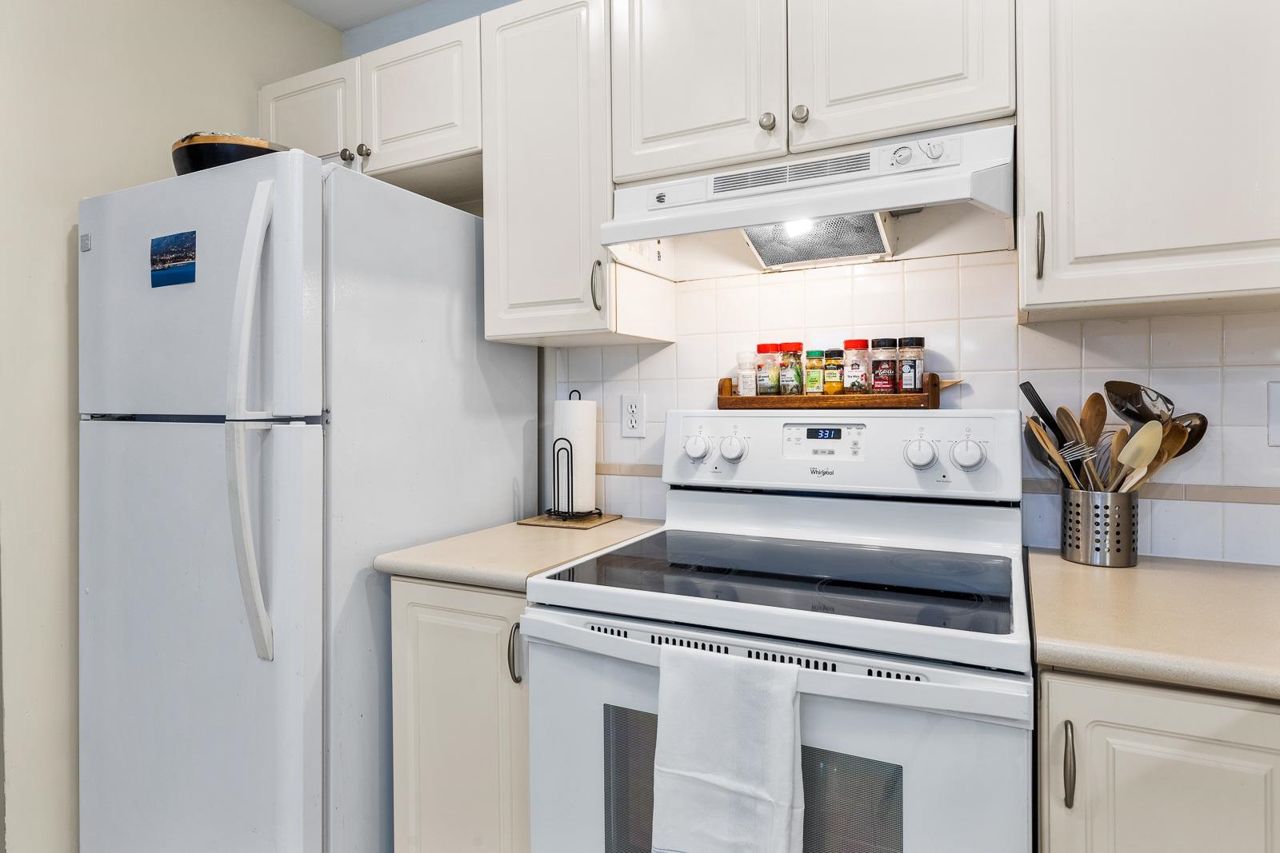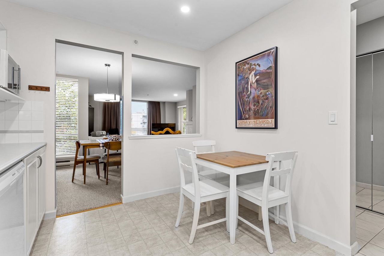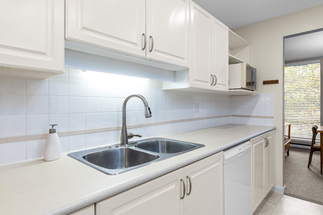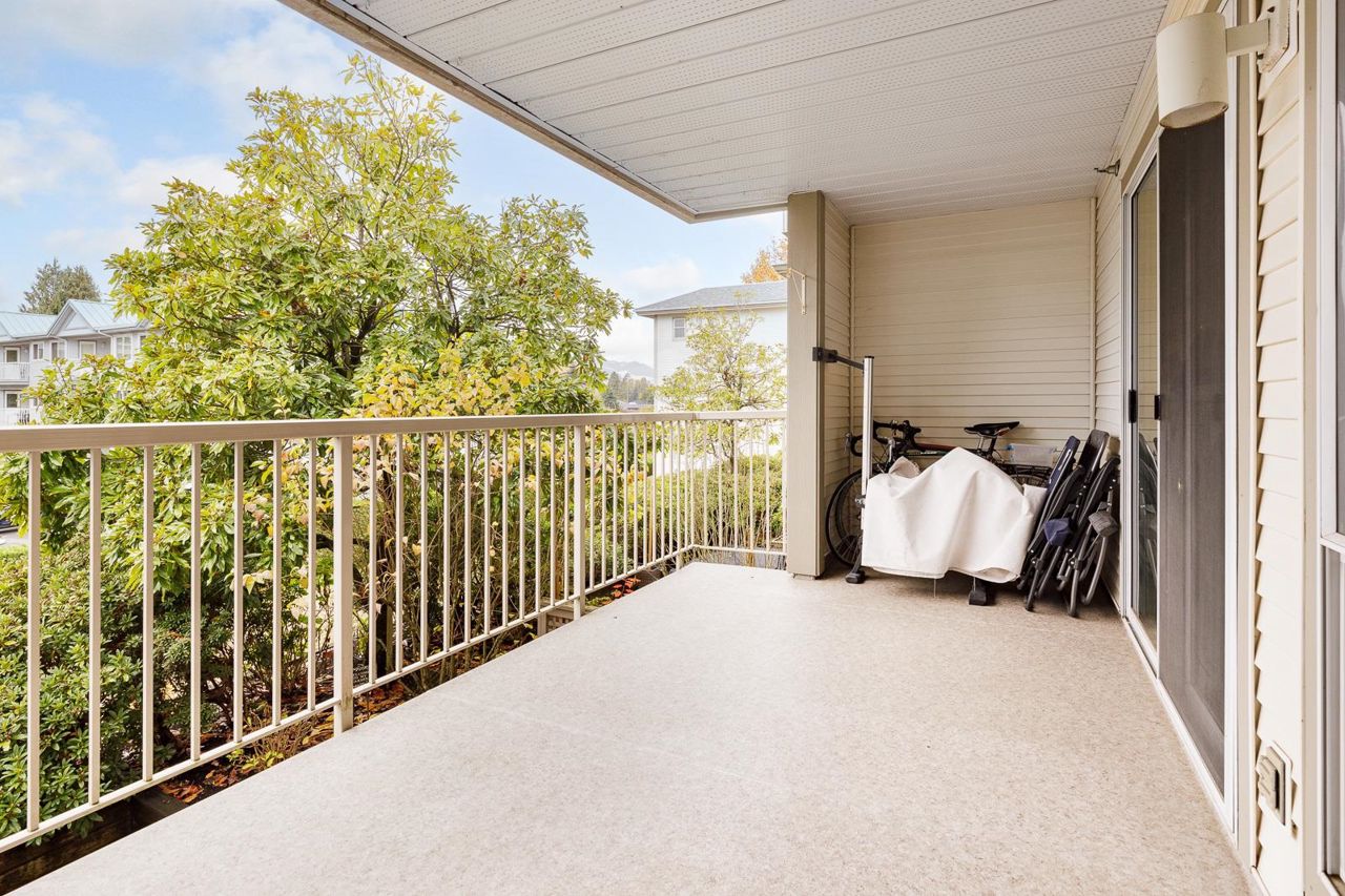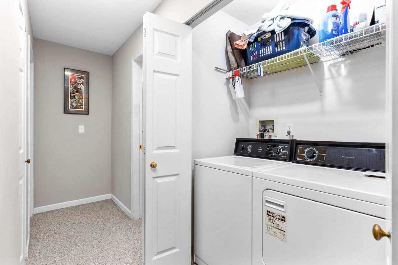 Nestled in the Heart of Pitt Meadows, this is Edgewood Manor. A 2 bed 2 bath with over 1100 sq/ft of living space. Bright & spacious kitchen with white cabinetry, LED potlights & white tile backsplash. The open concept allows you to entertain with separate dining & living areas. Living room boasts fresh carpet throughout with oversize windows & access to large west-facing deck. Warm up in the winter months with your white-tiled gas fireplace. Primary bedroom is King bed compatible with 4-pce walk-in ensuite, including separate bath & shower. Second bed & bath with side by side laundry complete this amazing condo. Walkability is amazing with its proximity to schools, shopping & trails. This is one you won't want to miss! Book your private showing today.
